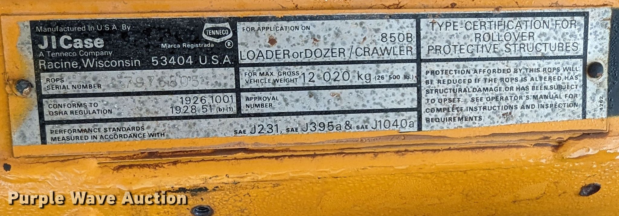 Purple Wave is selling a used Crawler Dozer in Oklahoma. This item is a 1980 Case 850B dozer with the following: Hours: 698 on meter, Serial: 7079108