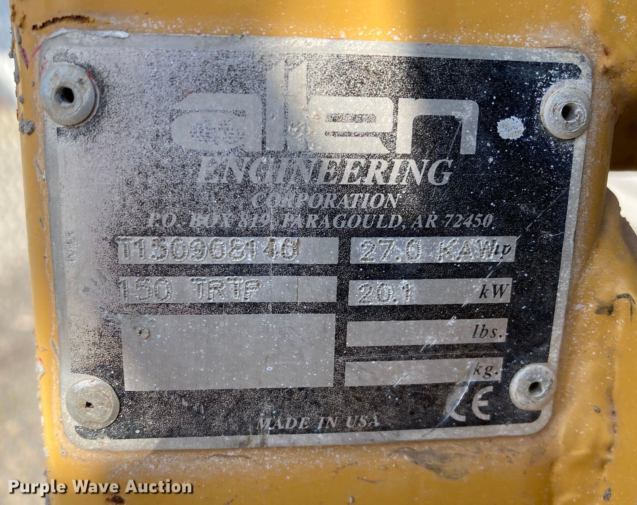 Purple Wave is selling a used Paver or Screed in Kansas. This item is a Allen 150TRTP screed with the following: Serial: T150908140
