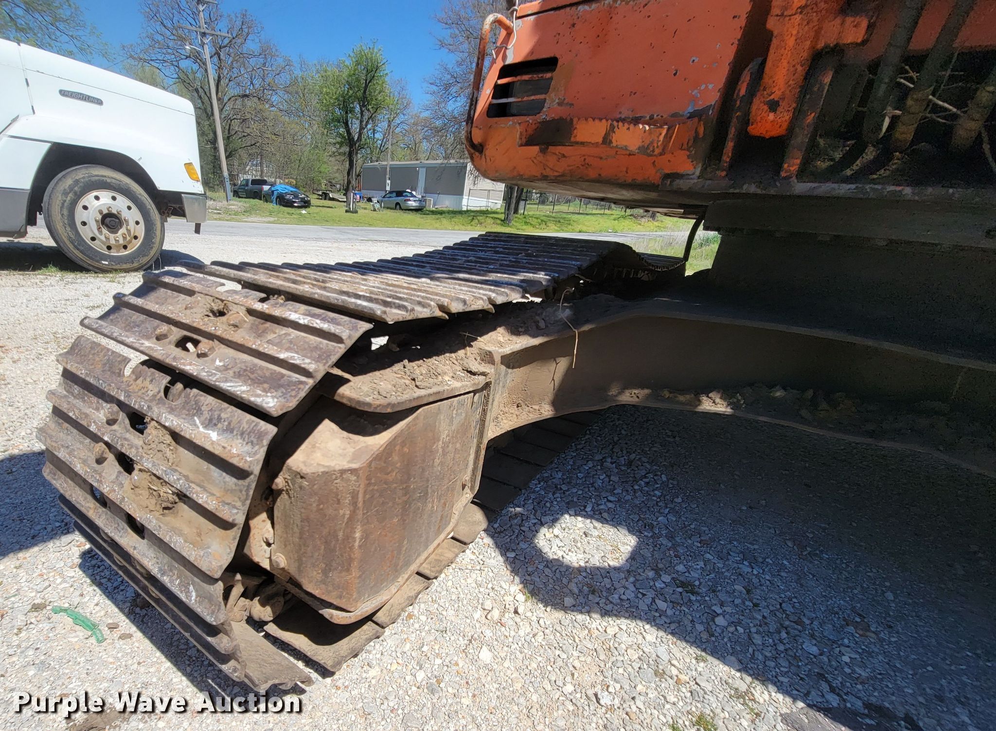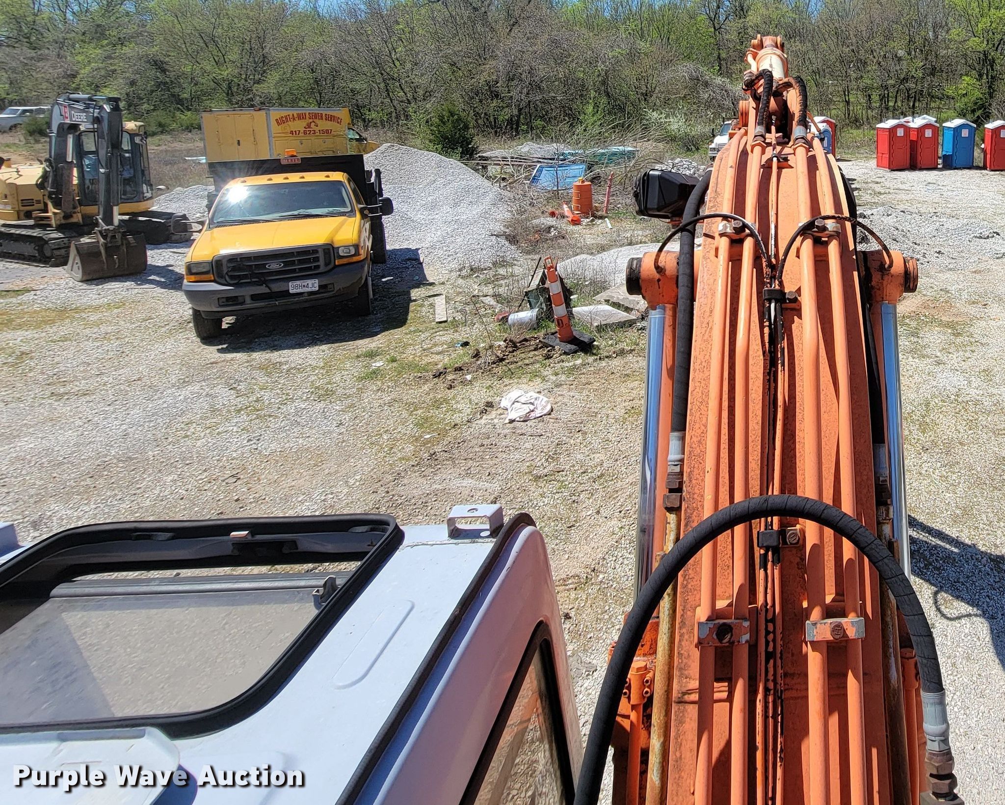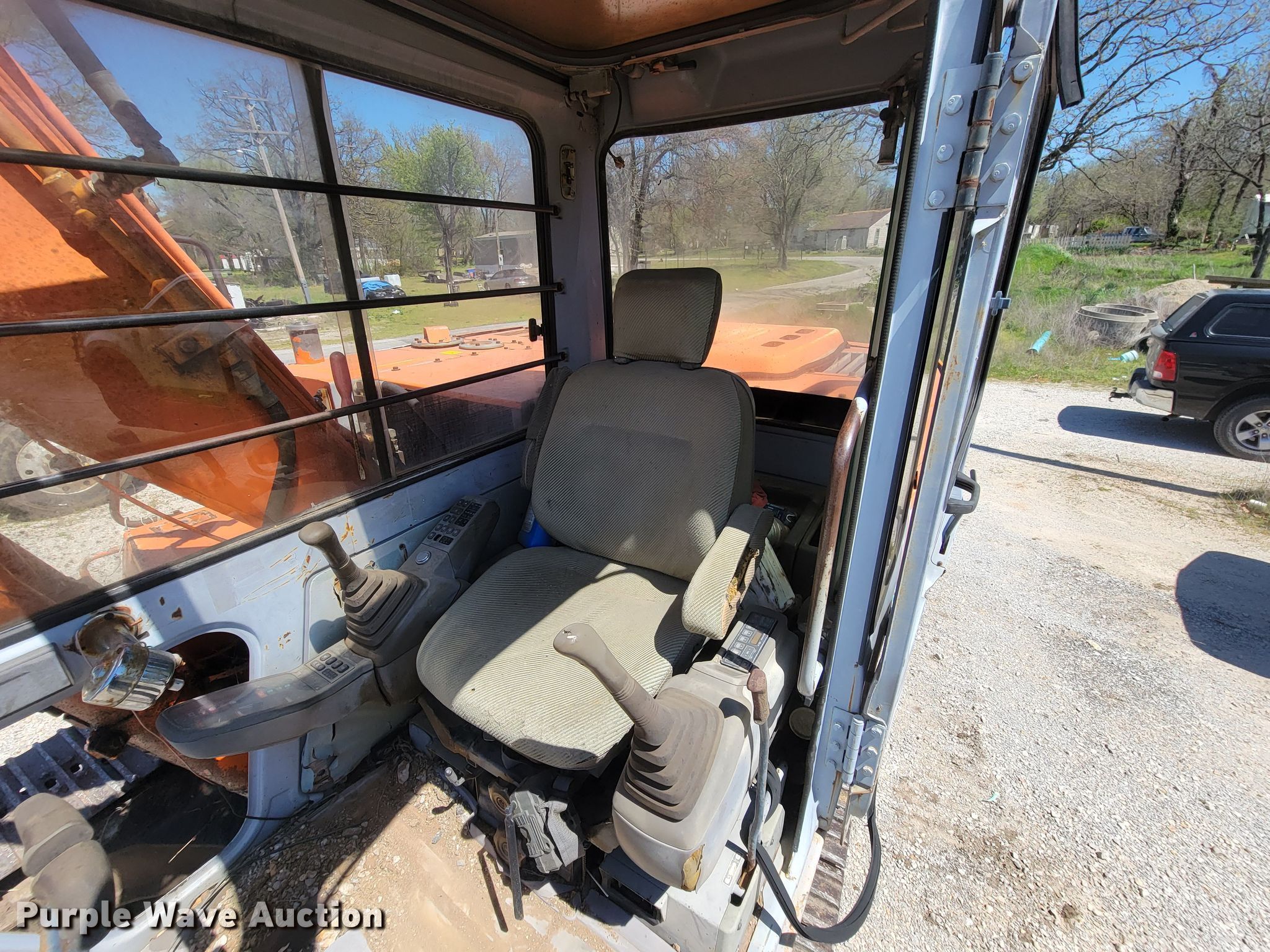 1993 Hitachi EX100-2 excavator. Hours: 8,024 on meter, Serial: 12L31890. Engine Cylinders: 4, Fuel type: Diesel. Transmission Hydrostatic, Two speed travel. Operators station EROPS. Features Boom Standard, Stick Stick length: 6', Bucket Width: 35", Cutting edge: Bolt-on, Teeth: 5. Tracks Width: 20", Steel, Grouser pads: Triple. Right-Away Sewer Service. 676 E Easter Rd. Joplin, MO 64801
