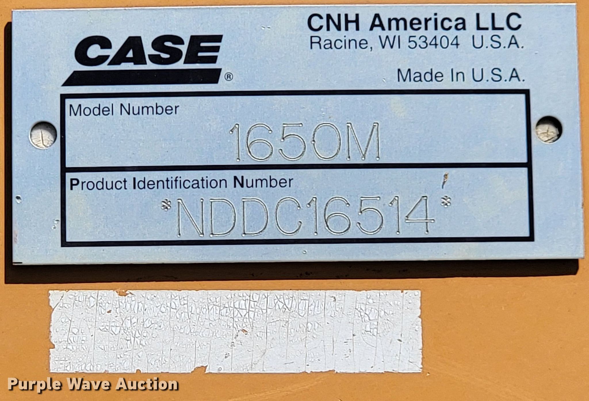 2014 Case 1650M XLT dozer. Hours: 2,734 on meter, Serial: NDDC16514. Engine Case F4HFE6132A, Displacement: 6.7L, Cylinders: 6, Fuel type: Diesel. Transmission Hydrostatic. Operators station OROPS, AC, Heat, Electronic Monitoring System panel, Steering: Joystick. Features Dozer blade Type: 6-way, Straight, Width: 129" W. Tracks Width: 22", Grouser pads: Single, Track guards. 820 S Main St. Yates Center, KS 66783