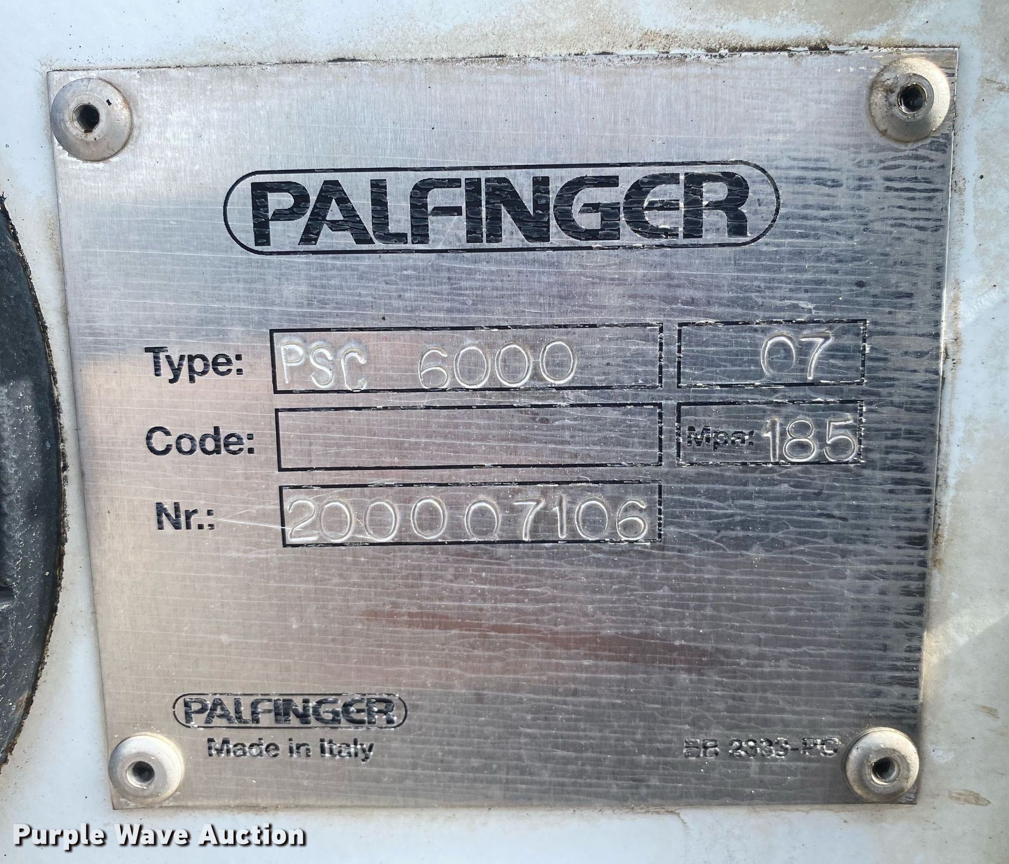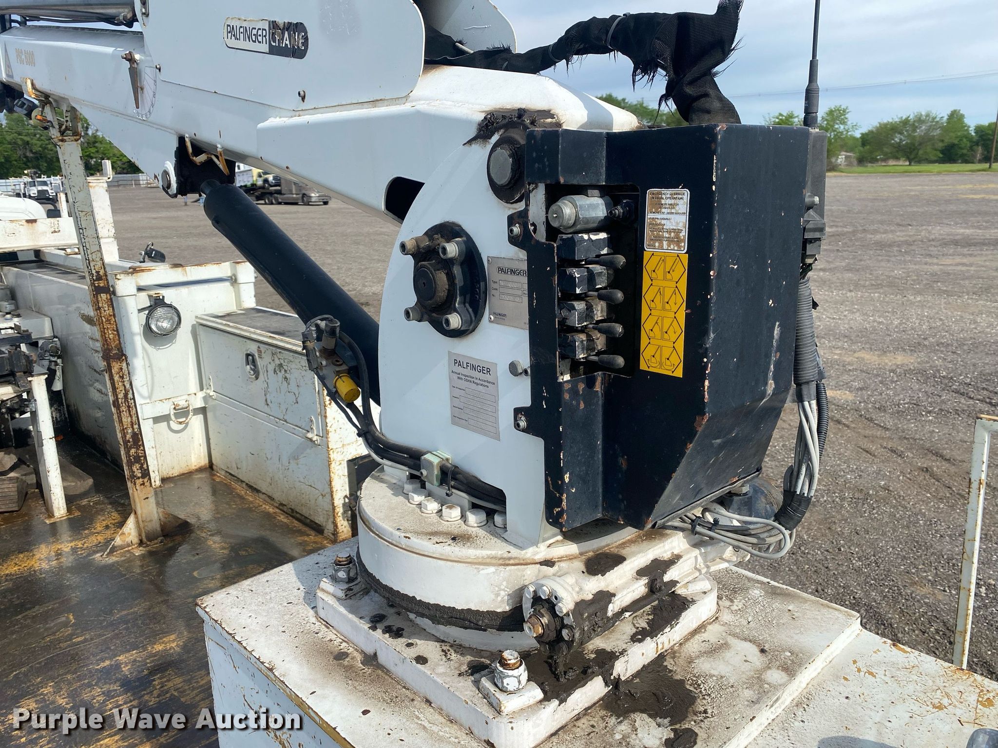 2009 International 7500 utility / service truck. Miles: 163,045 on odometer, Hours: 18,886 on meter, VIN: 1HTWNAZTX9J055113. Engine Displacement: 9.3L, Cylinders: 6, Fuel type: Diesel. Transmission Manual, Speed: 10. Chassis Axles: Tandem, Suspension: Air, Brakes: Air, PTO, GVWR: 56,000 lbs. Interior AC, Heat, Cruise control. Features Bed 21' L x 96" W, Crane Palfinger PSC6000, Maximum boom length: 21' Maximum lift capacity: 3,300 lbs, High rail system. Tires Front: 315/80R22.5, Rear: 11R22.5. Notes Windshield chipped or cracked. Oklahoma title. Title distribution may be delayed up to 14 days from verification of funds. 15107 North 137th East Avenue. Collinsville, OK 74021
