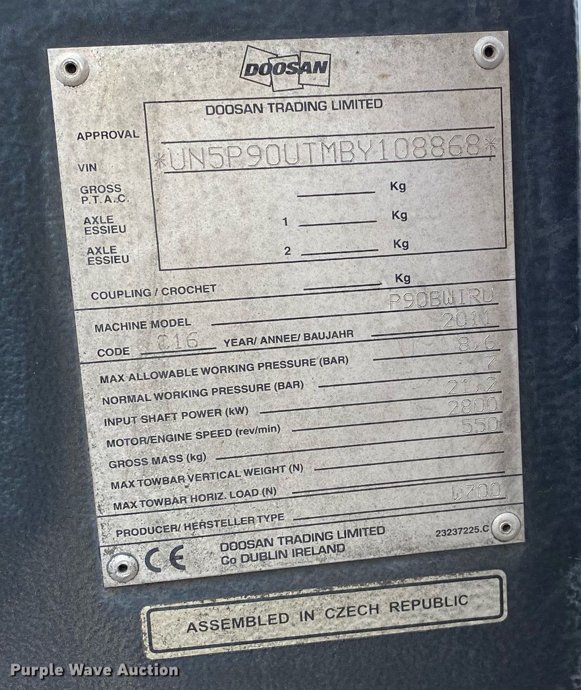 Purple Wave is selling a used Air Compressor in Oklahoma. This item is a 2011 Ingersoll Rand P90 air compressor with the following: Hours: 176 on meter, VIN: UN5POUTMBY108868