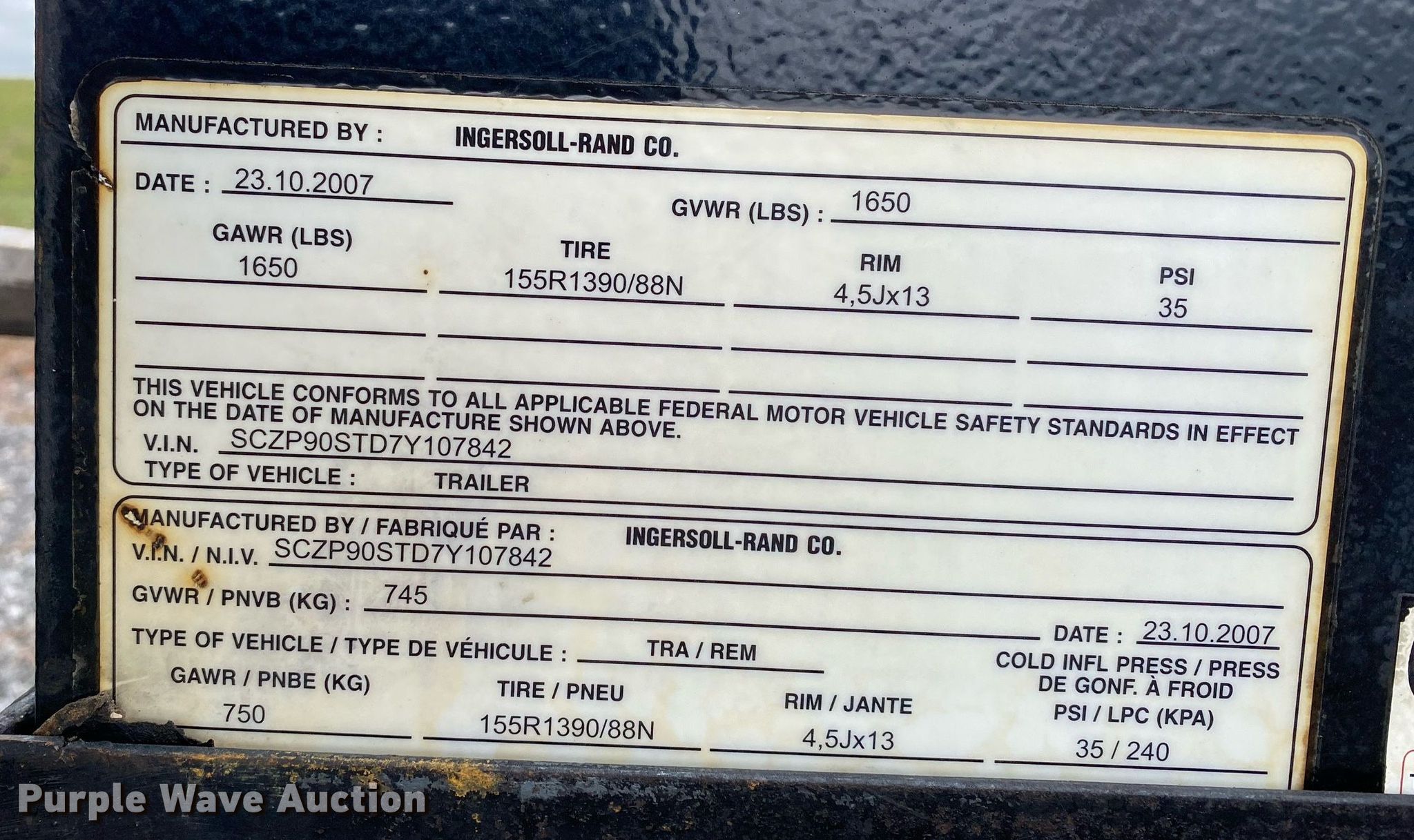 Purple Wave is selling a used Air Compressor in Oklahoma. This item is a 2007 Ingersoll Rand P90 air compressor with the following: Hours: 552 on meter, VIN: SCZP90STD7Y107842