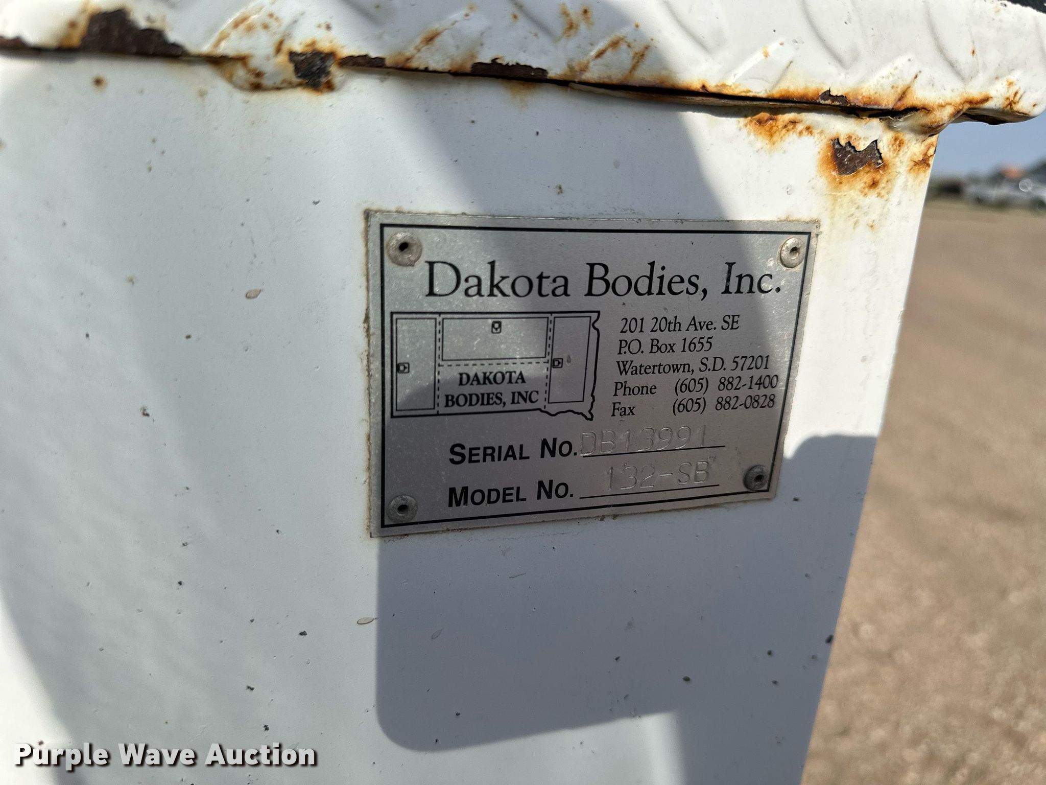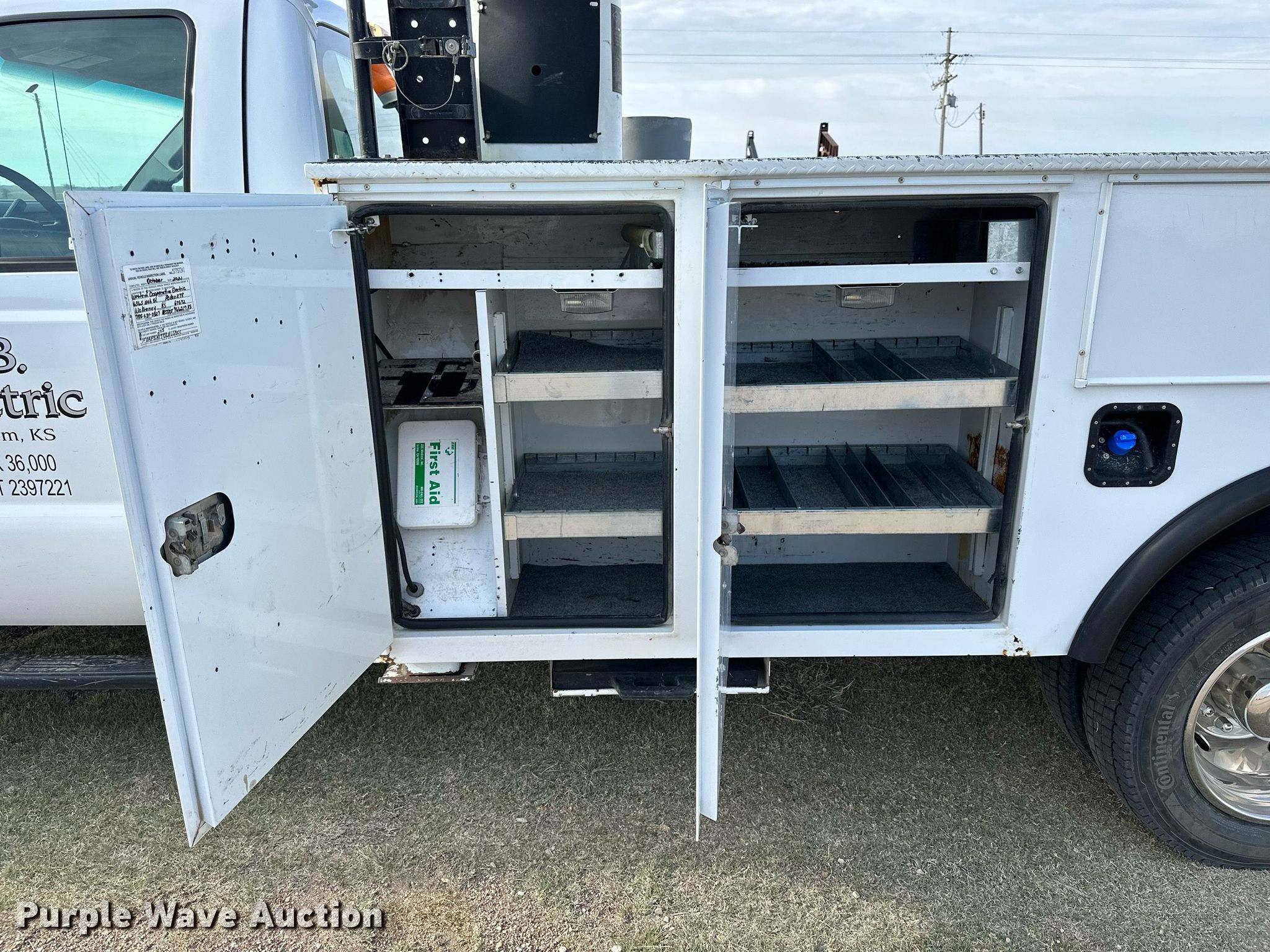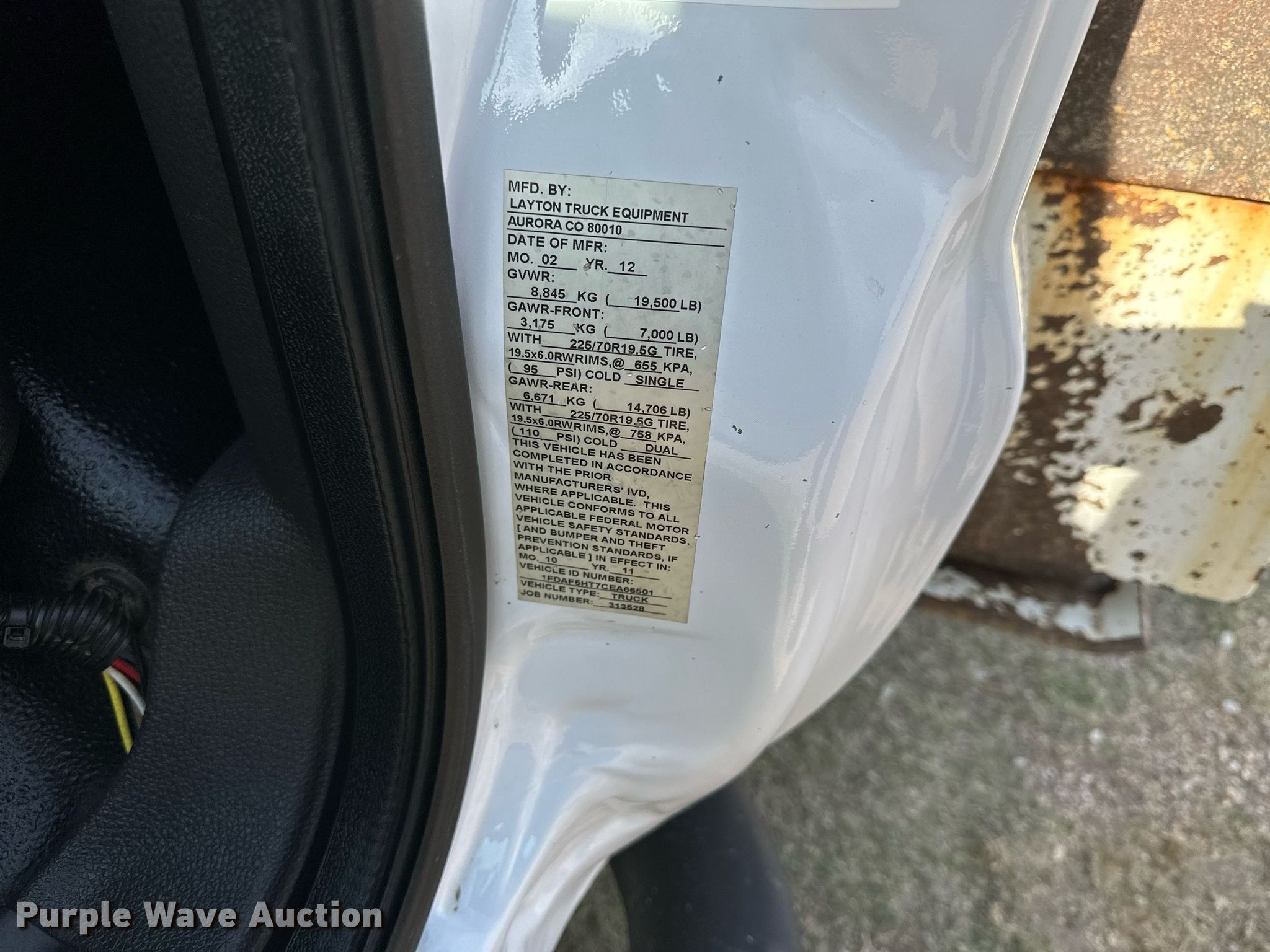 2012 Ford F550 Super Duty bucket truck. Miles: 146,637 on odometer, VIN: 1FDAF5HT7CEA66501. Engine Displacement: 6.7L, Cylinders: 8, Fuel type: Diesel. Transmission Automatic. Chassis Four wheel drive, Axles: Single, Suspension: Spring, Brakes: Hydraulic, PTO, GVWR: 19,500 lbs, Wheelbase: 165". Interior AC, Heat, Cruise control, Auxiliary controls. Features Bed Dakota Bodies 132-SB, Serial: DB13991, 13' L x 94" W, Boom 2011 Versalift VST-40SI, Serial: LD110015, Maximum lift capacity: 450 lbs, Maximum lift height: 40', Boom type: Insulated, Man basket, Boom controls Platform/ basket.. Tires Size: 225/70R19.5. Notes DEF deleted. Kansas title. Title distribution may be delayed up to 14 days from verification of funds. R.B. Electric. Gorham, KS 67640