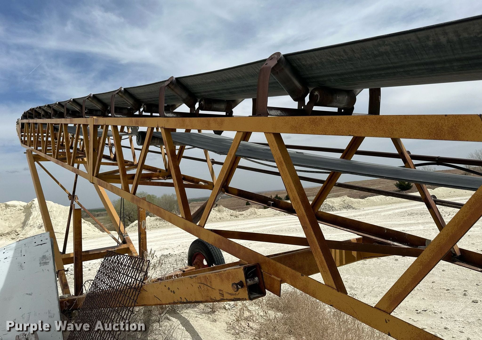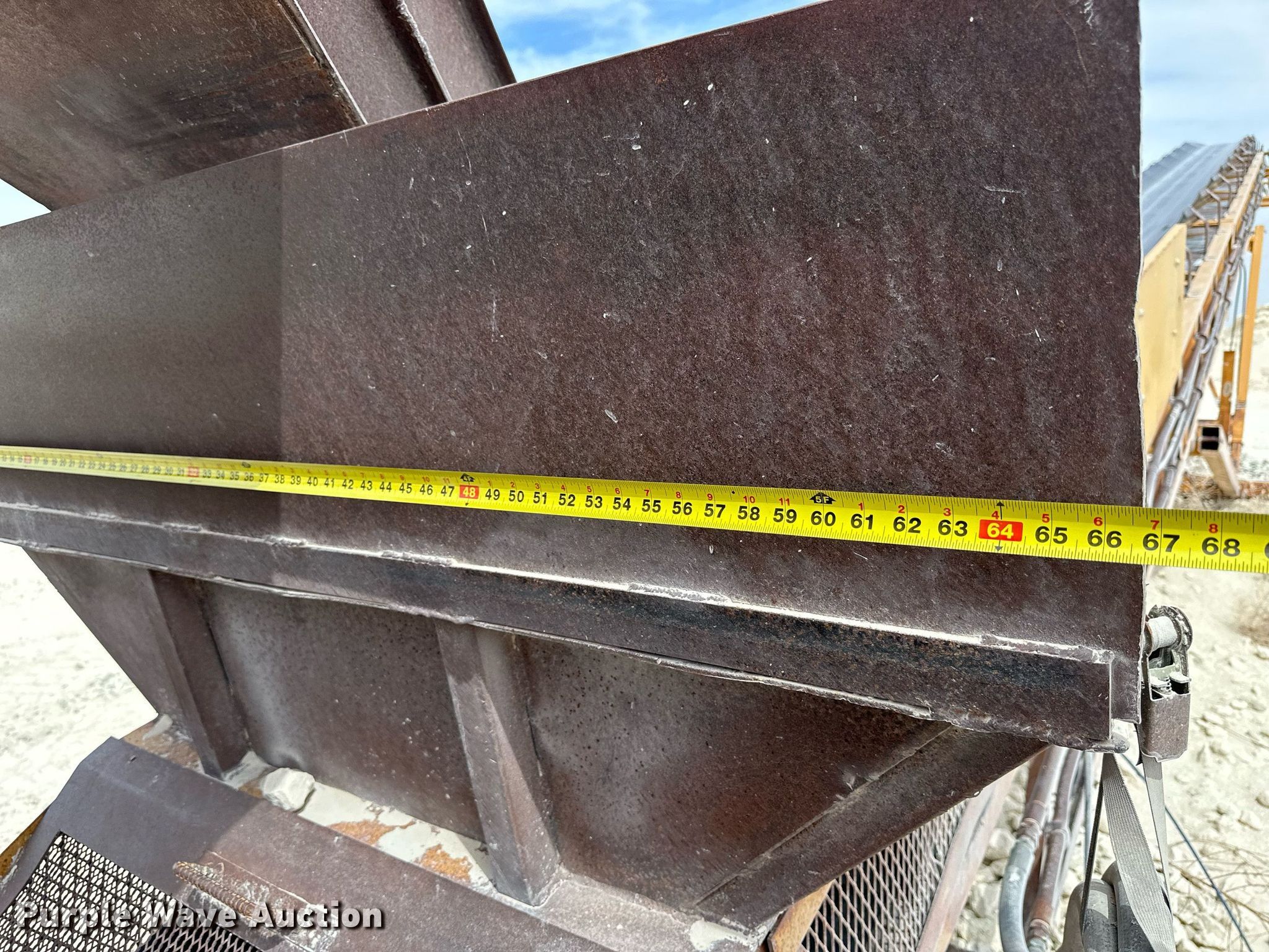 Purple Wave is selling a used Conveyor in Kansas. This item is a Conveyor with the following: Length: 64', Width: 66", Input hopper, Length: 64", Width: 66", Hydraulic operation