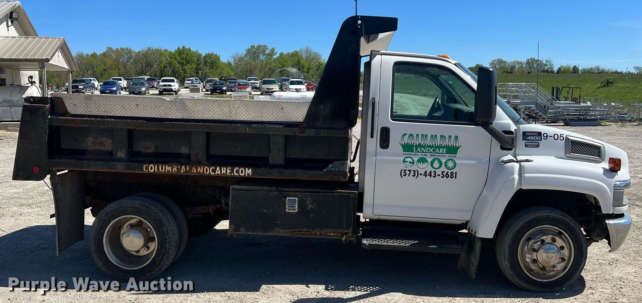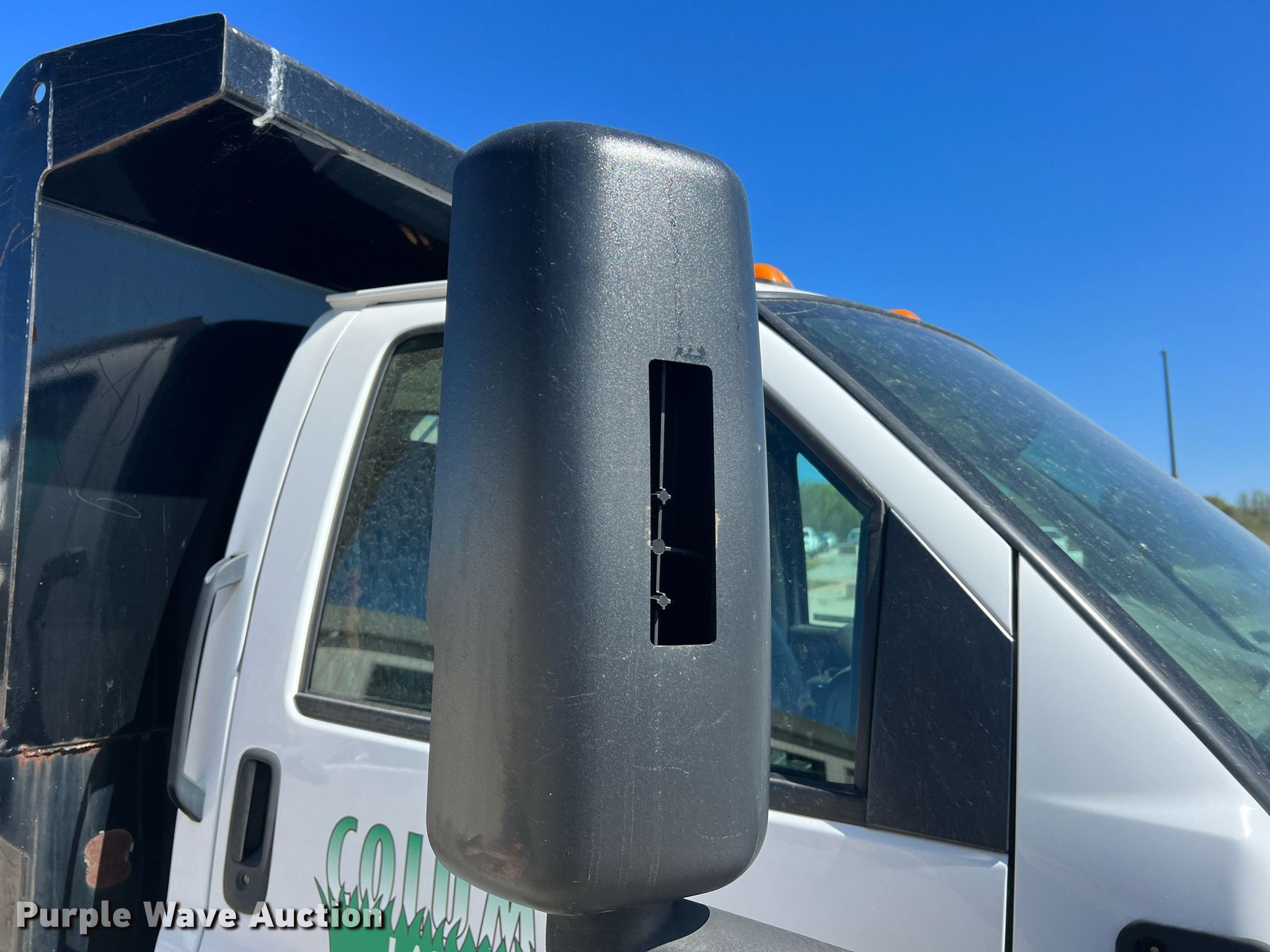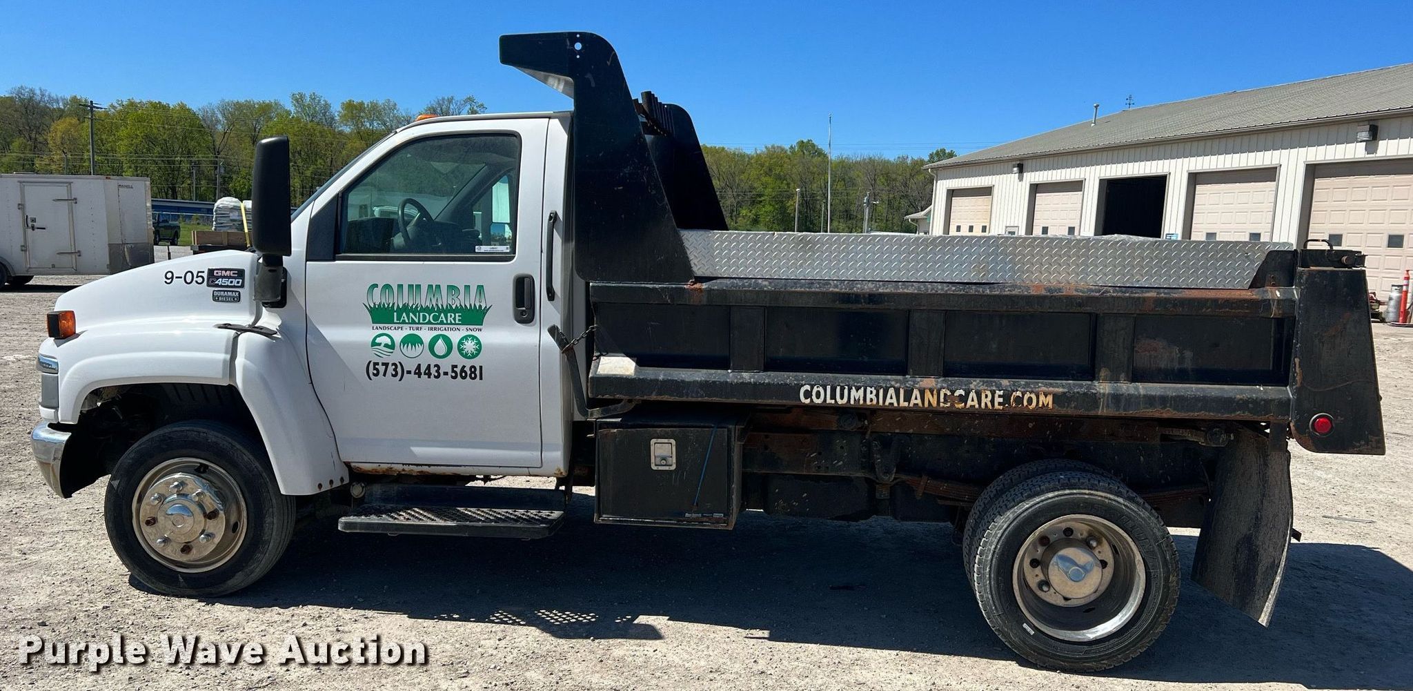 2005 GMC C4500 dump truck. Miles: 101,248 on odometer, VIN: 1GDE4C1225F519918, Unit #: 9-05. Engine Displacement: 6.6L, Cylinders: 8, Fuel type: Diesel. Transmission Automatic. Chassis Axles: Single, Suspension: Spring, Brakes: Hydraulic, PTO. Interior AC, Heat, Heated mirrors, Cruise control, Brake controller. Features Dump bed 10' 4" L x 96" W, Side height: 20", Side board height: 7", Bed type: Steel, Ram: Single , End gate: Manual. Tires Size: 225/70R19.5. Notes Spreader control box and wiring harness not included, Dash warning indicator: ABS, Brake. Missouri title. Title distribution may be delayed up to 14 days from verification of funds. Columbia Landcare, LLC.. 7105 West Henderson Road. Columbia, MO 65202