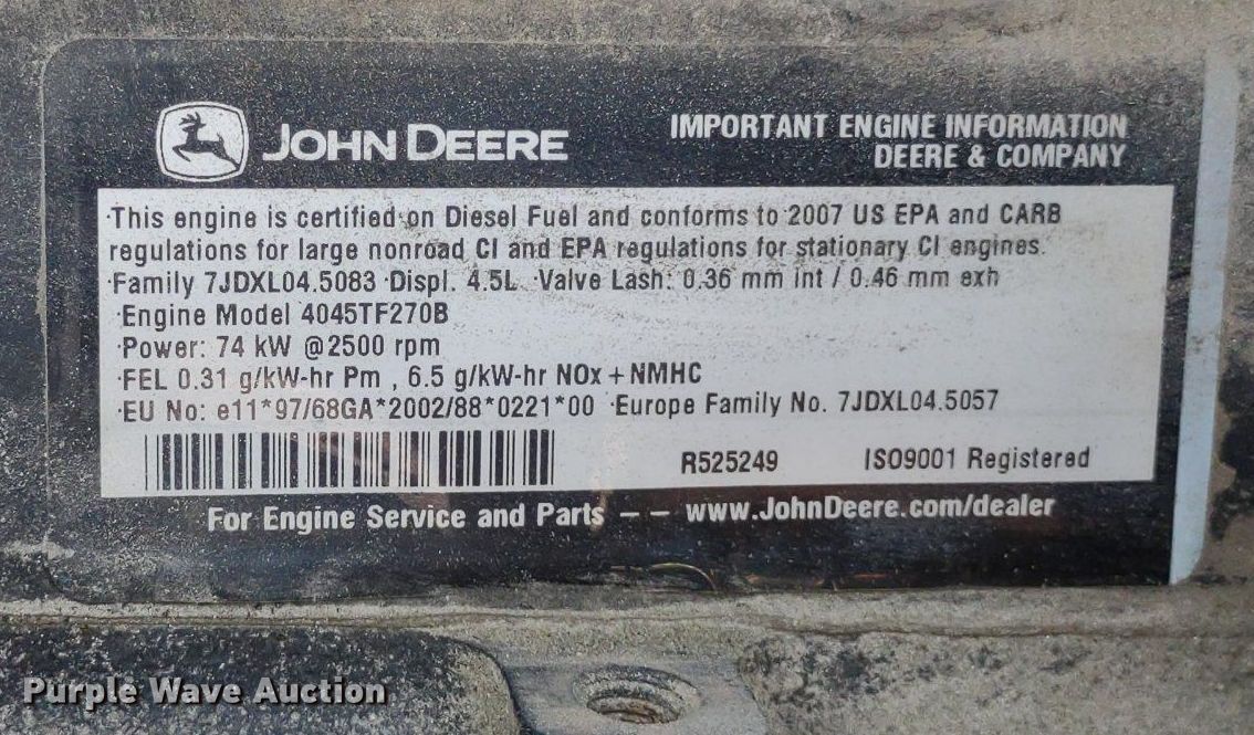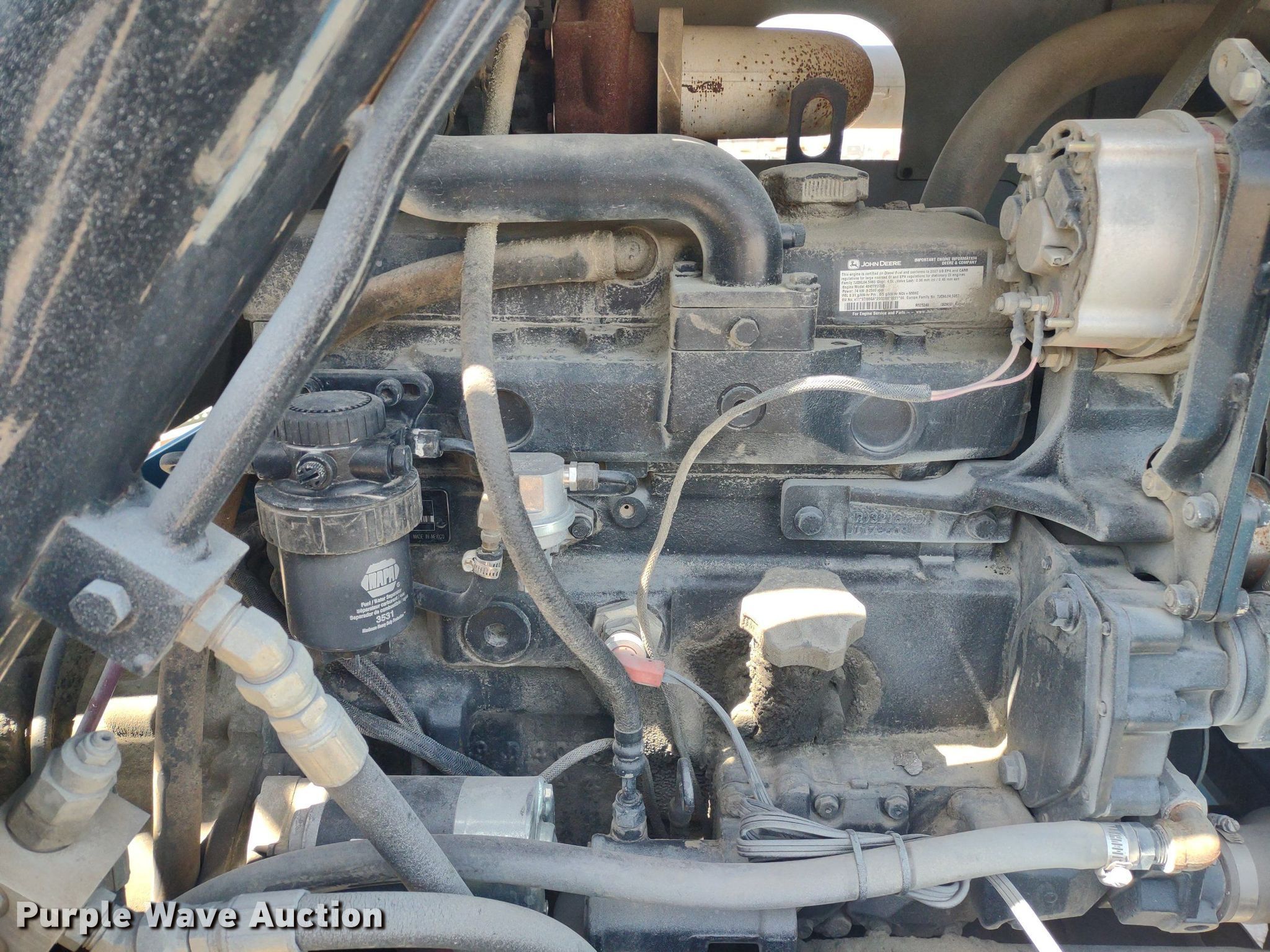 2007 Genie GTH-844 telehandler. Hours: 6,613 on meter, Serial: GTH0807A-11263. Engine John Deere 4045TF270, Displacement: 4.5L, Cylinders: 4, Fuel type: Diesel. Transmission Powershift, Four wheel drive. Operators station Canopy, Steering: Crab, Four wheel. Features Maximum lift capacity: 8,000 lbs, Maximum lift height: 44', Boom stages: 3, Fork length: 72", Tilt carriage, Hydraulic leveling. Tires Size: 13.00-24. Notes Possible transmission issues, No battery, Non-operational unit. Insco Industries. 15434 Andrews Road. Kansas City, MO 64147