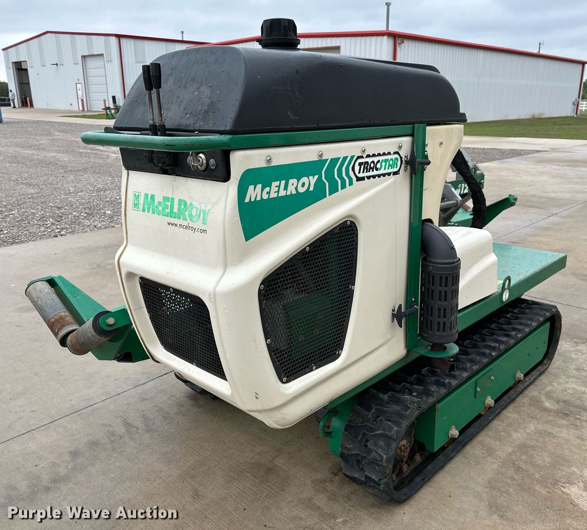 McElroy TracStar 412/618 pipe fusion machine. Hours: Unknown, Serial: C60944. Engine Kubota D722, Serial: 4FW8880, Cylinders: 3, Fuel type: Diesel. Transmission Hydrostatic. Features McElroy Pitbull 412 Hydraulic Clamp HF, Three jaw carriage. Tracks Width: 7", Rubber. Rainmaker Sales, Inc. 7251 US 177. Shawnee, OK 74804