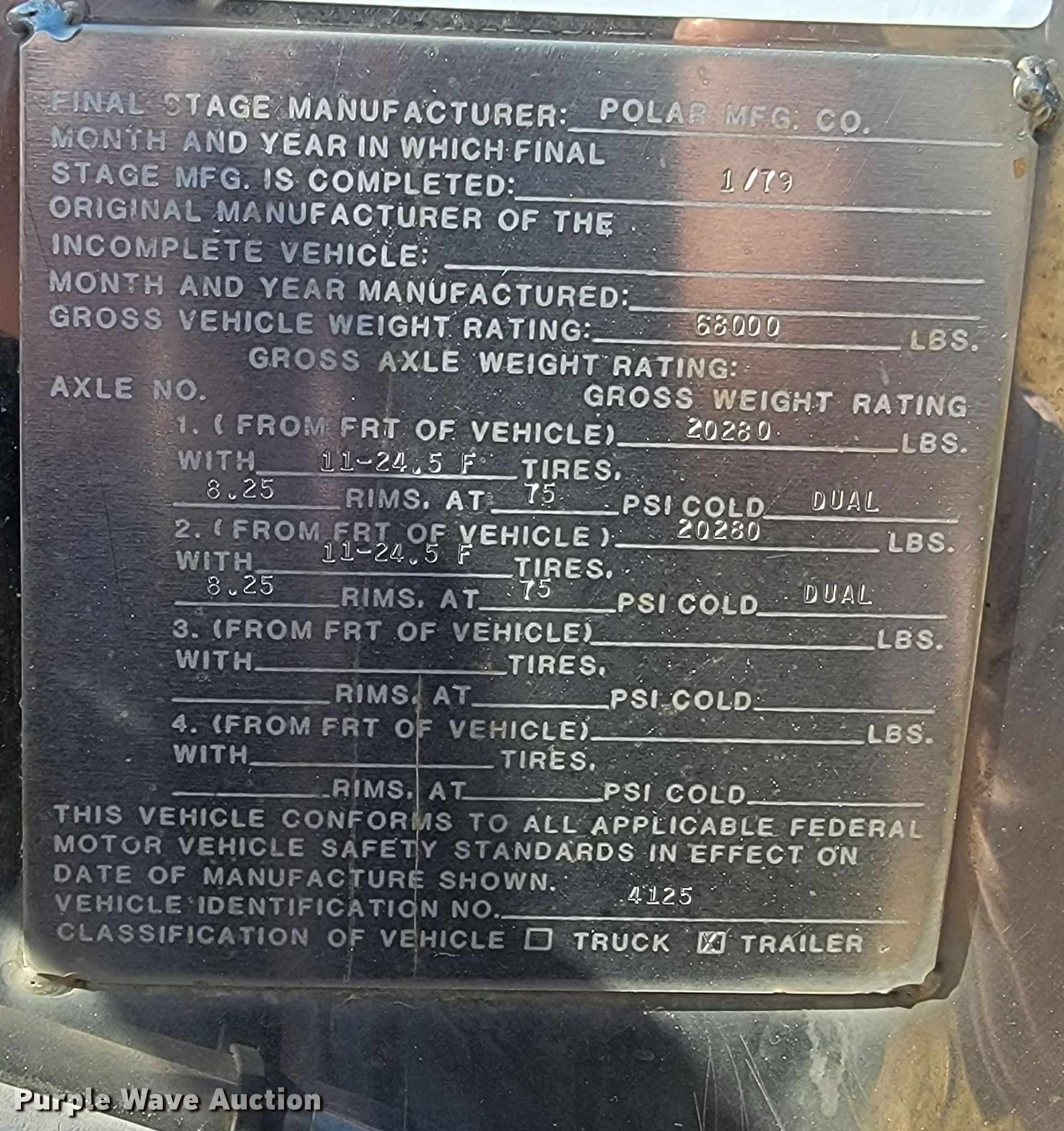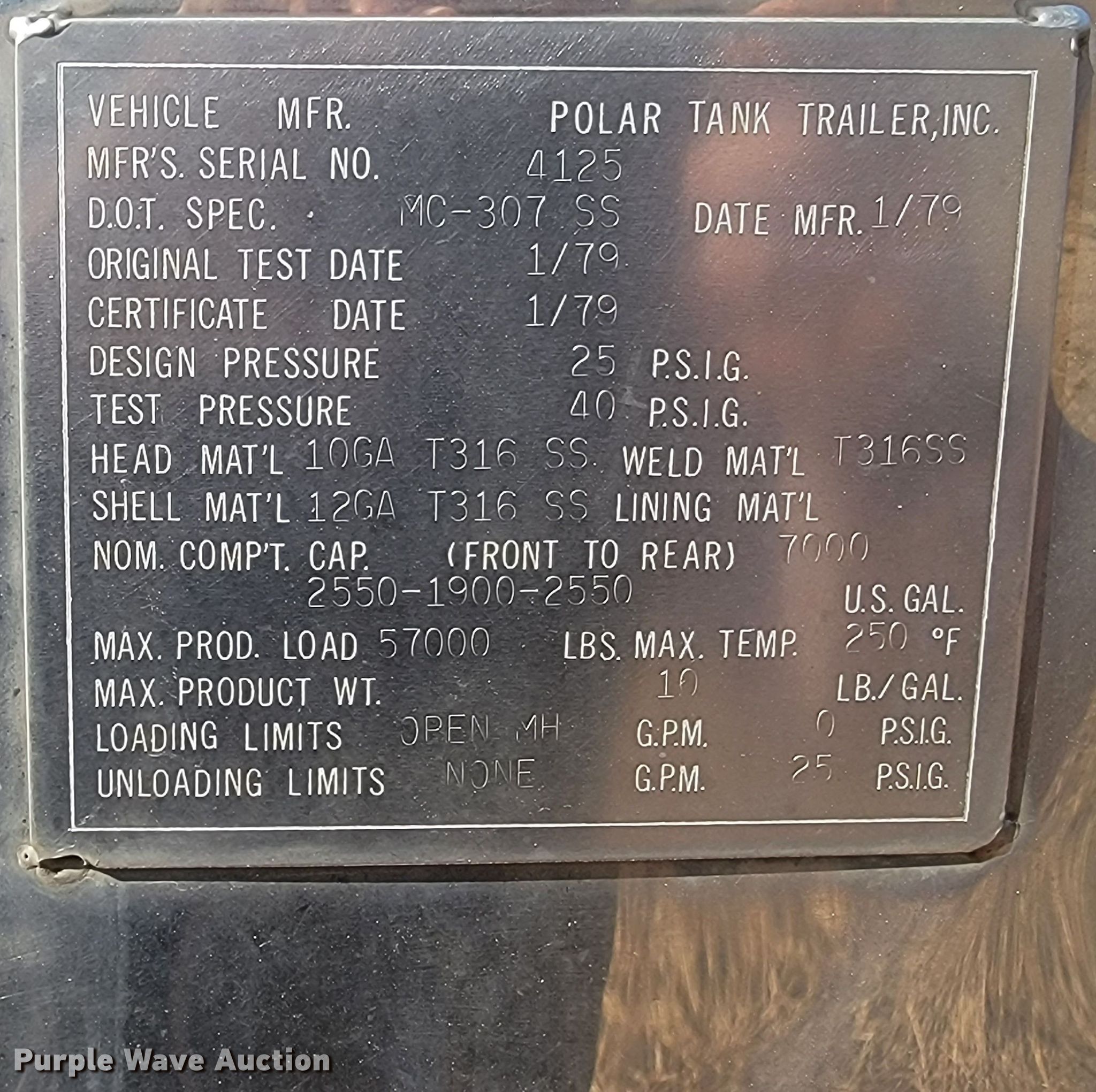 Purple Wave is selling a used Tank Trailer in South Dakota. This item is a 1979 Polar Tank Trailer tank trailer with the following: VIN: 4125