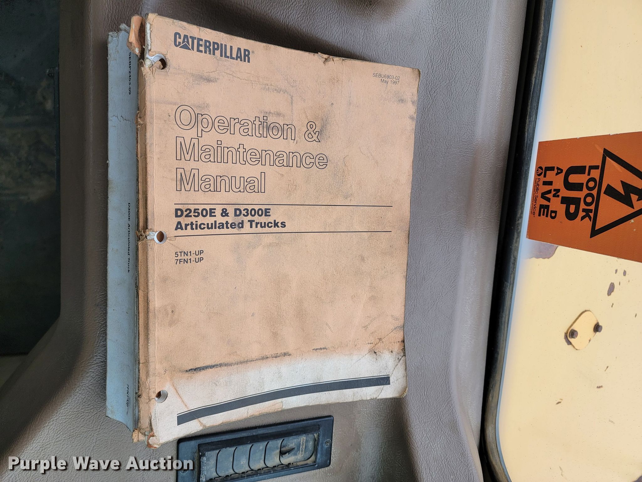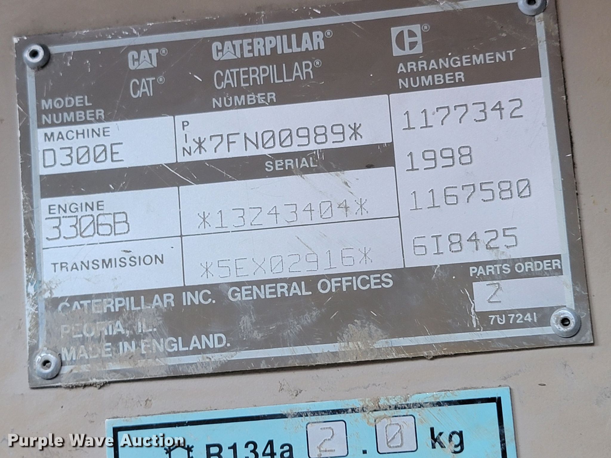 1998 Caterpillar D300E haul truck. Hours: 12,226 on meter, Serial: 7FN00989. Engine Caterpillar 3306, Displacement: 10.5L, Cylinders: 6, Fuel type: Diesel. Transmission Automatic. Chassis Six wheel drive. Interior AC, Heat. Features Dump bed Capacity: 30 tons. Tires Size: 23.5R25. Reker Construction. 22119 State Hwy 91. Adrian, MN 56110
