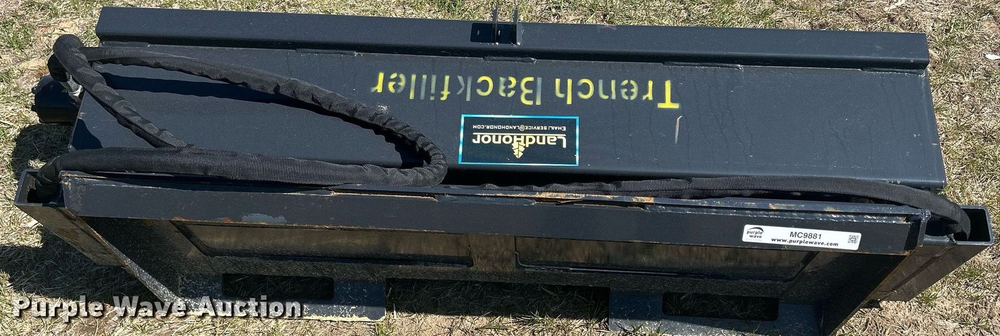 Purple Wave is selling a used Skid Steer Attach. in Iowa. This item is a 54" Land Honor skid steer trench backfiller with the following: Unused