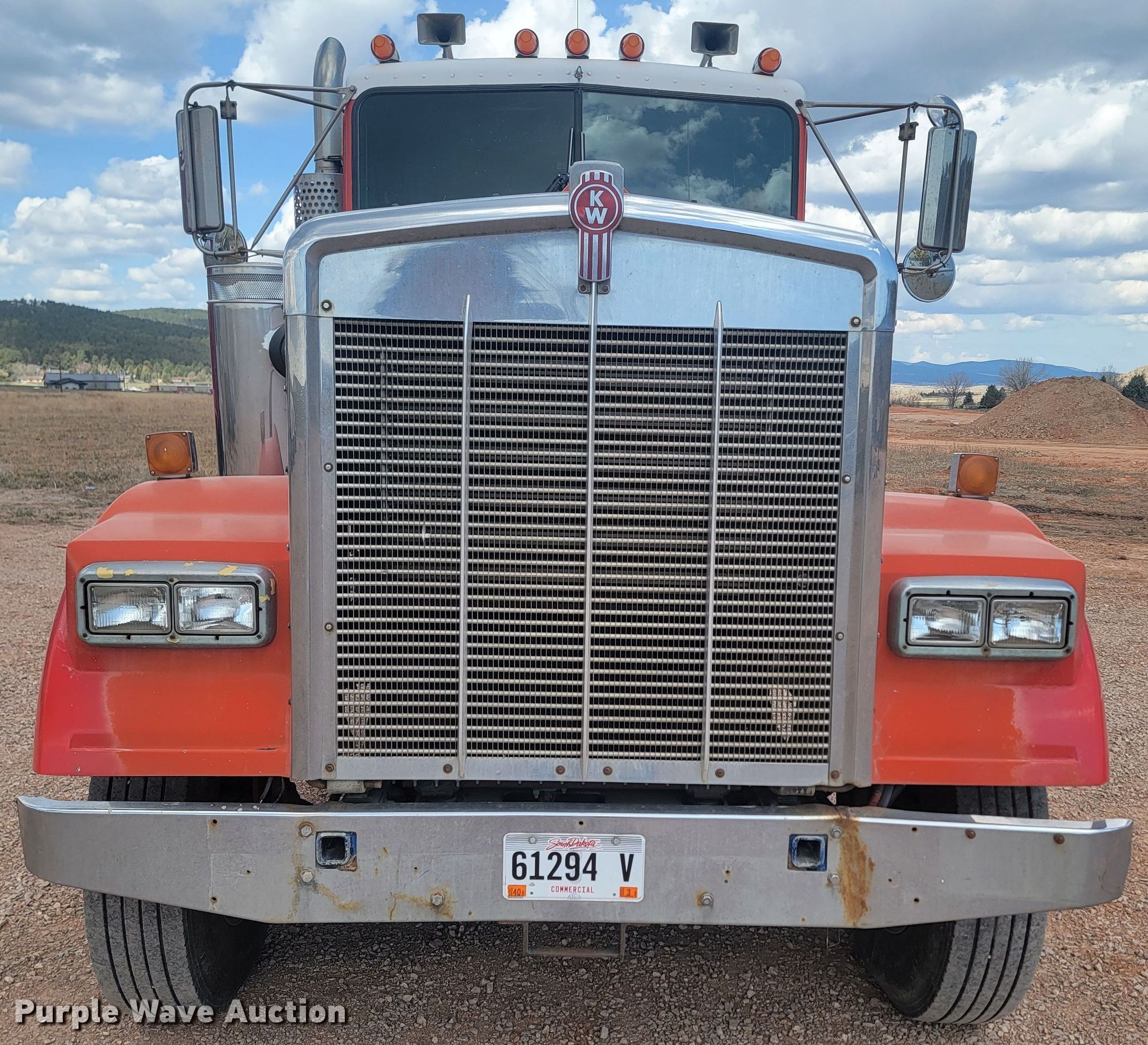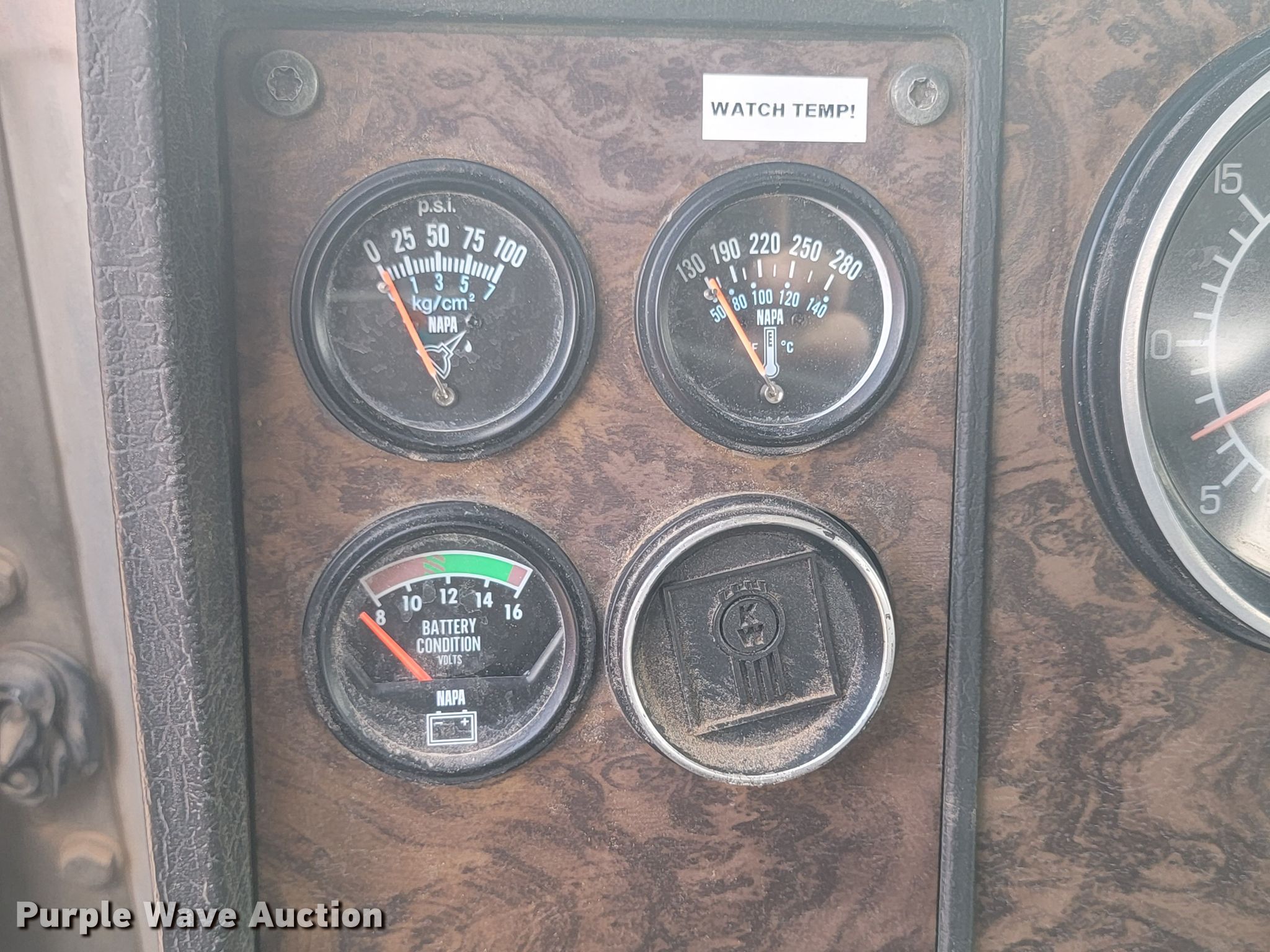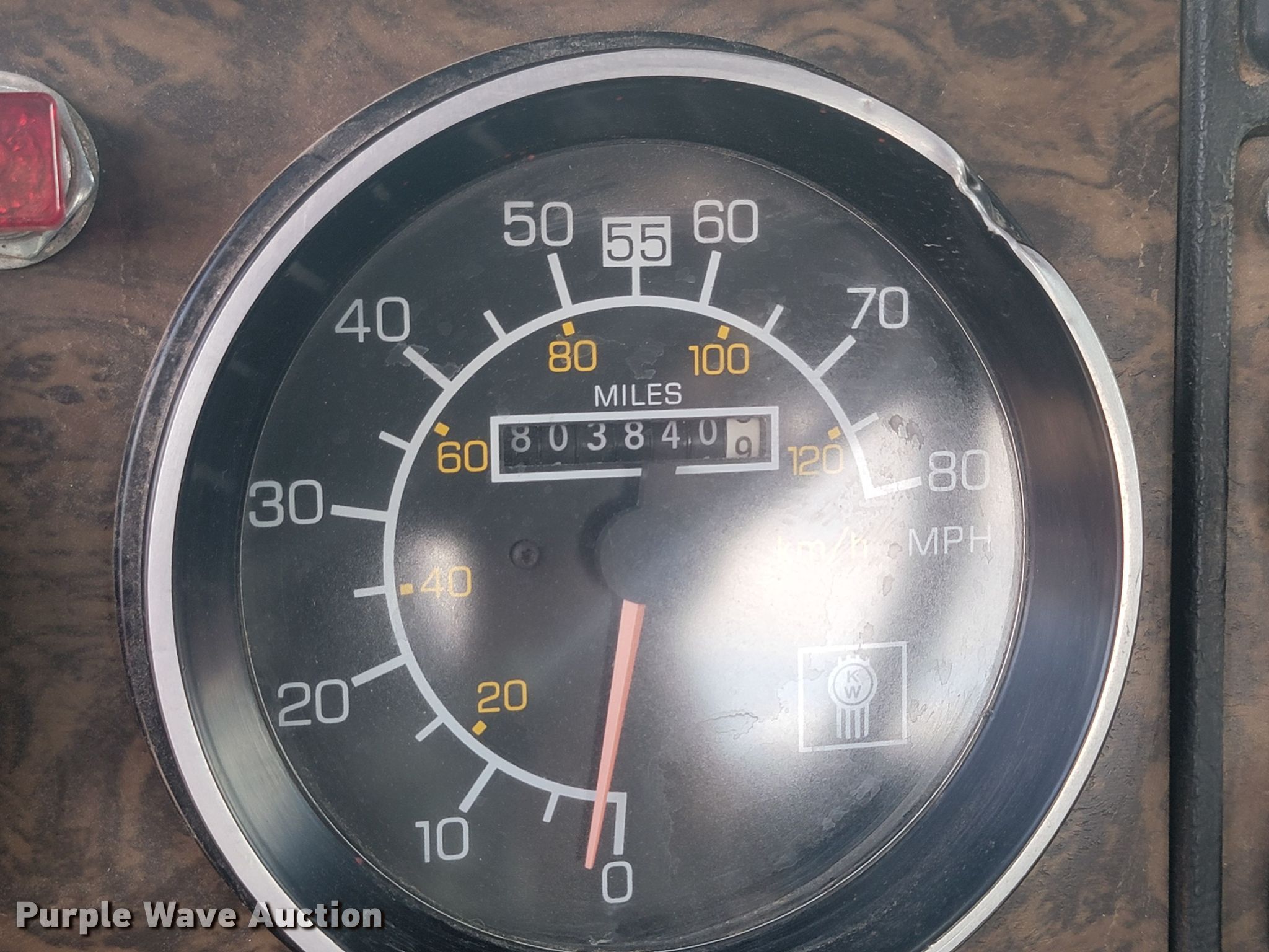 1990 Kenworth W900 semi truck. Miles: 803,841 on odometer Actual miles unknown, VIN: 1XKWD29X8LS554619. Engine Cummins NTC, Displacement: 14.0L, Cylinders: 6, Fuel type: Diesel, Engine brake. Transmission Manual. Chassis Axles: Tandem, Differential lock: Inter-axle, Suspension: Air Dump valves, Brakes: Air, PTO, Wet kit, GVWR: 50,000 lbs FAWR: 12,000 lbs, IAWR: 19,000 lbs, RAWR: 19,000 lbs. Interior AC, Heat, Cruise control. Features Deck plate: Aluminum, Fifth wheel type: Air operated, Sliding, Fuel tank: Dual. Tires Size: 11R24.5. Notes Odometer may have been replaced. South Dakota title. Mileage has not been verified. Odometer discrepancy will be marked on the title. Title distribution may be delayed up to 14 days from verification of funds. Iron Outfitter Waste Services Inc.. 7481 Stagestop Road. Black Hawk, SD 57718