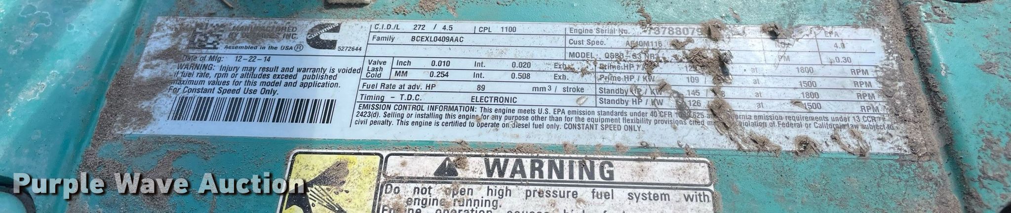 Purple Wave is selling a used Generator Set in Oklahoma. This item is a Cummins DSFAD-1422756 generator with the following: Hours: 18,143 on meter, Serial: A150783323