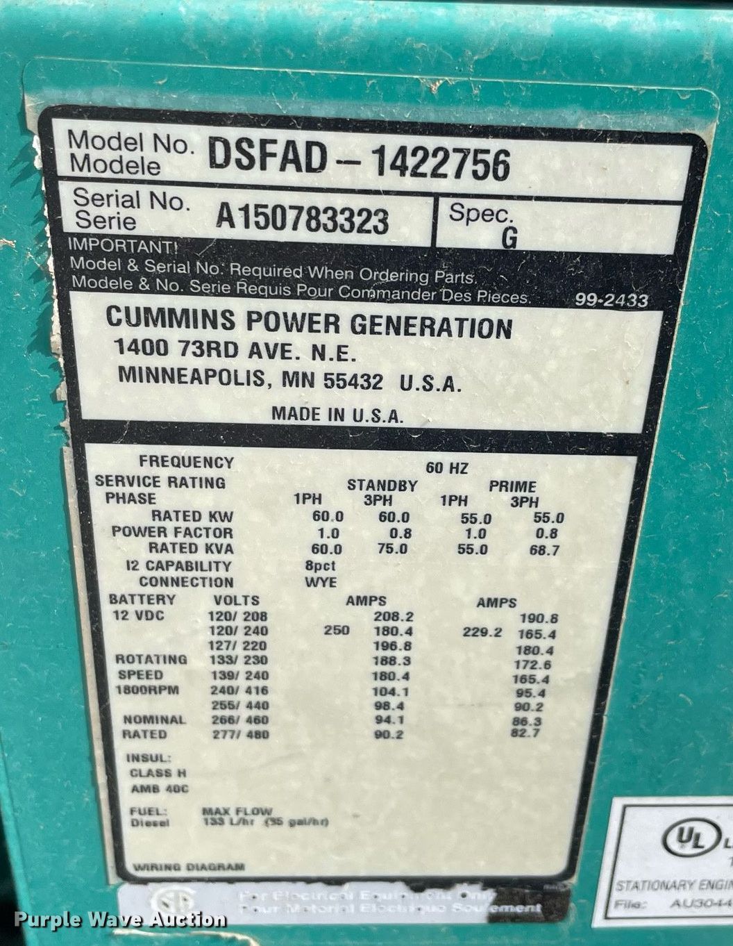 Cummins DSFAD-1422756 generator | SOLD! May 25 Construction Equipment Auction