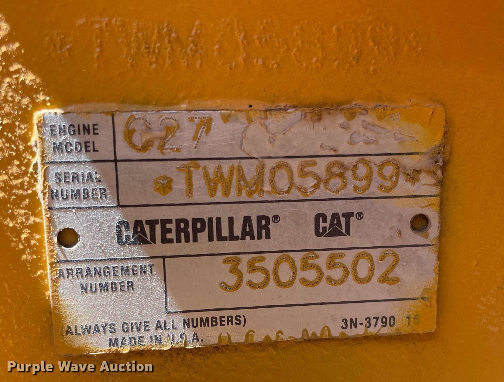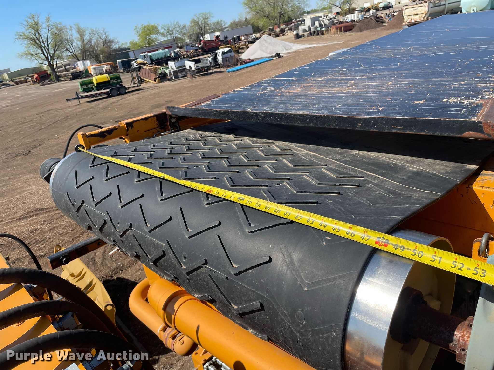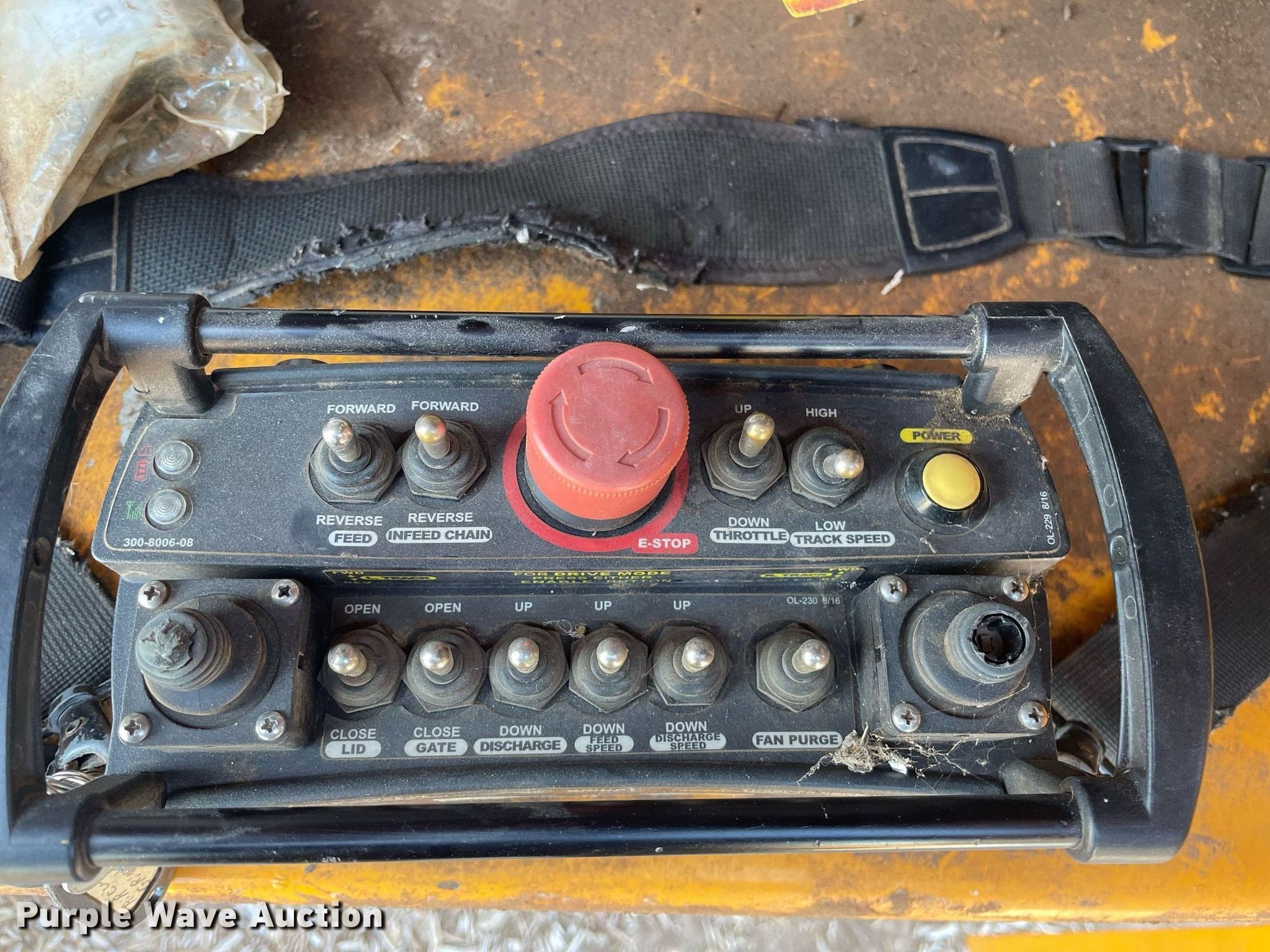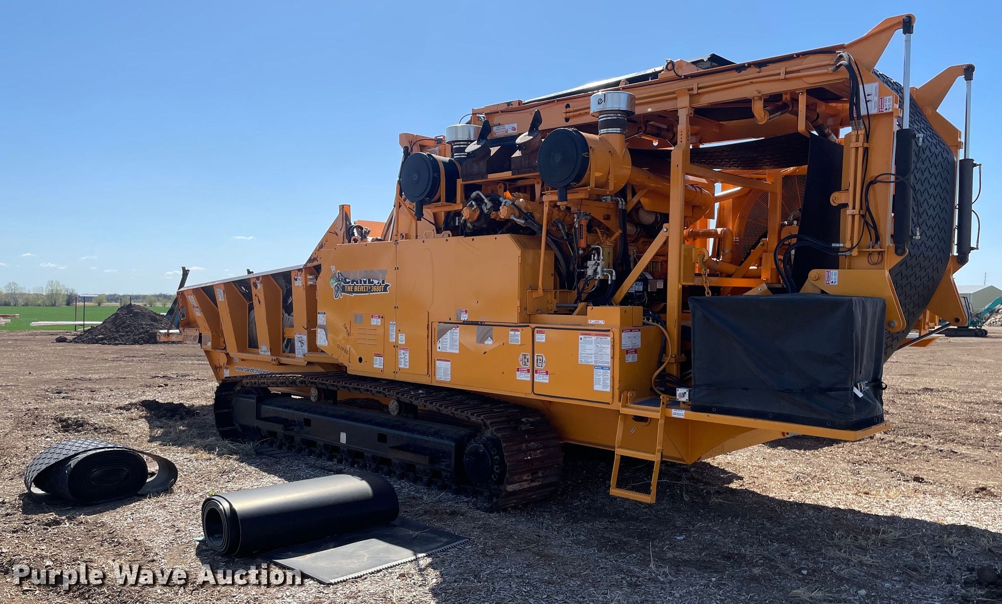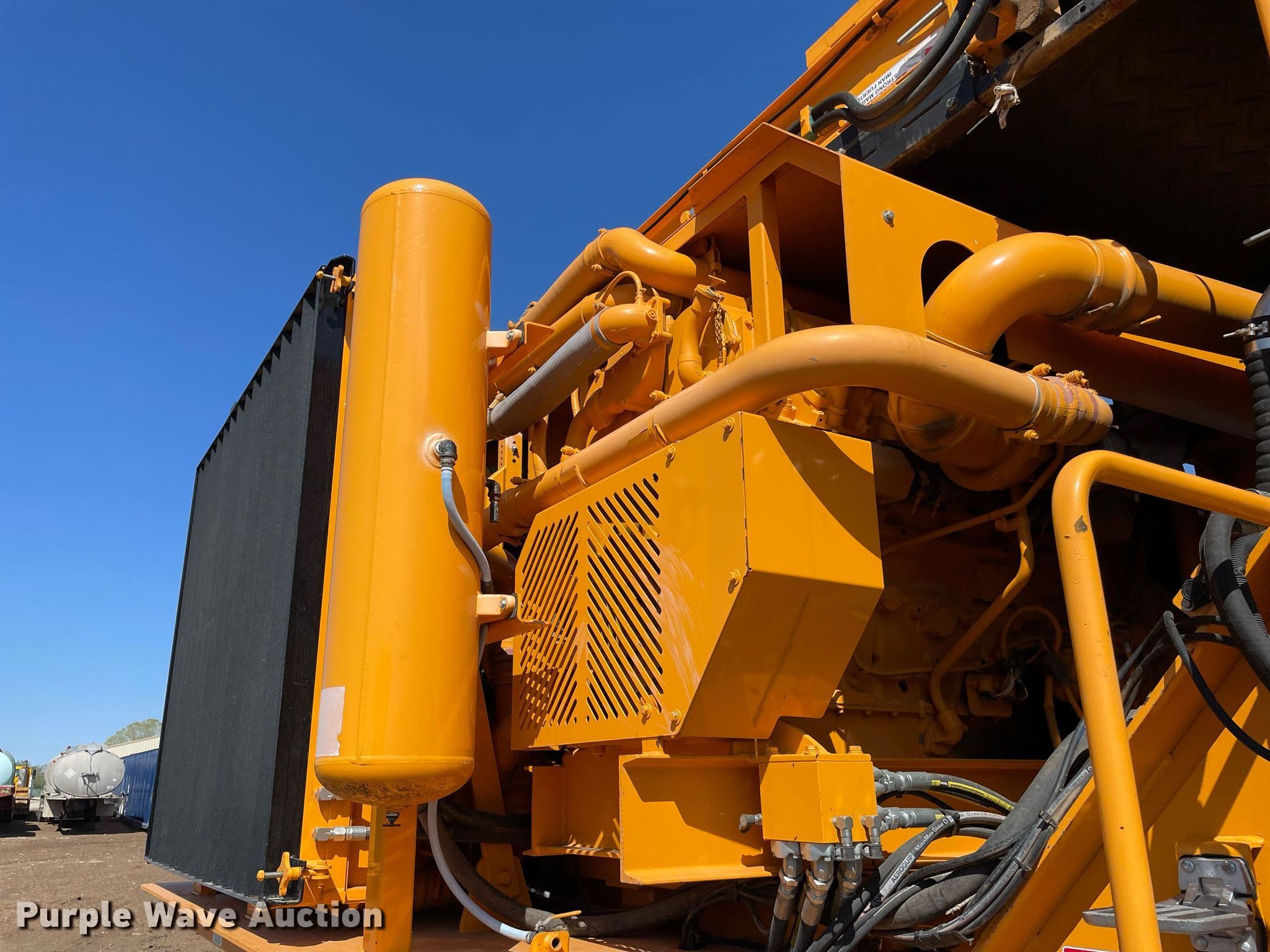 2017 Bandit Industries 3680TK The Beast horizontal grinder. Hours: 1,912 on meter, Serial: 505268. Engine Caterpillar C-27, Serial: TWM05899, Displacement: 27L, Cylinders: 12, Fuel type: Diesel. Features Throat opening: 60" x 35", Cutter mill 60"L x 24" diameter, Teeth: 60, Auto feed, Infeed conveyor 13'L x 60"W, Discharge conveyor Approx. 22'L x 48"W, Air compressor Saylor-Beall 705, Honda GX340 gas engine Displacement: 389 cc, Wireless remote. Tracks Width: 28", Steel. Purchaser responsible for all aspects of disassembly and removal. Quality Equipment Company. Goddard, KS 67052