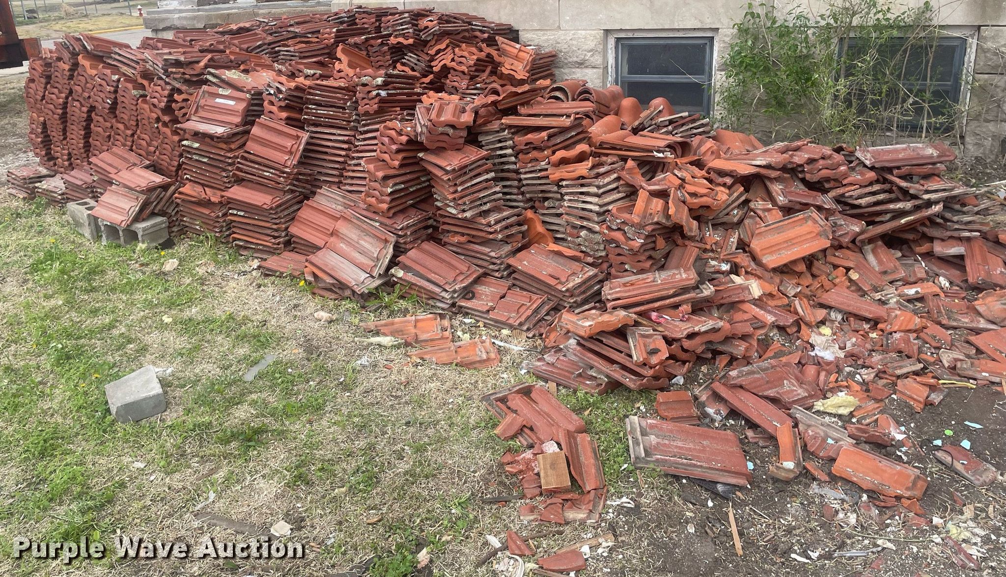 Purple Wave is selling a used Building Materials in Kansas. This item is a Approximately 3,800 square feet of Ludowici roof tile with the following: Field tile, Ridge, Hip caps, Some cut, Some damaged