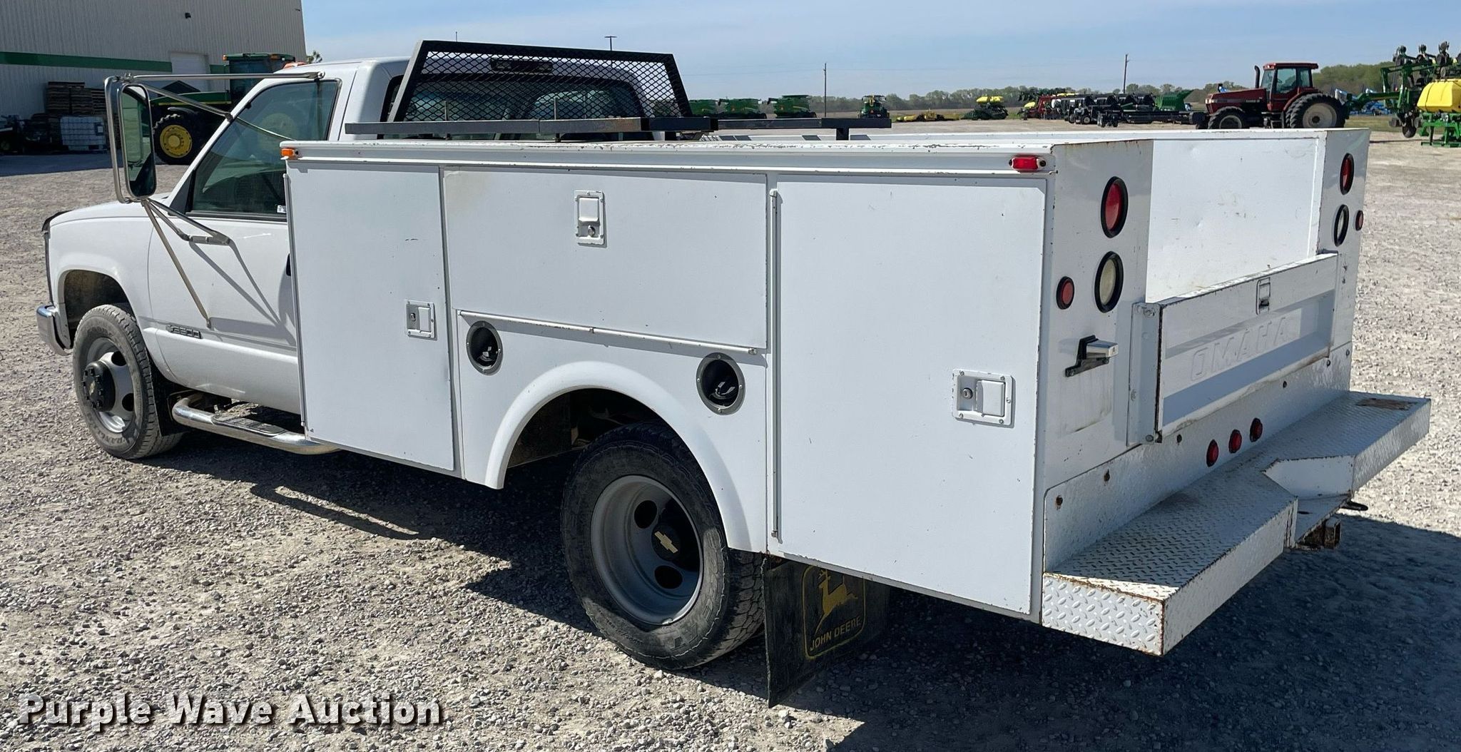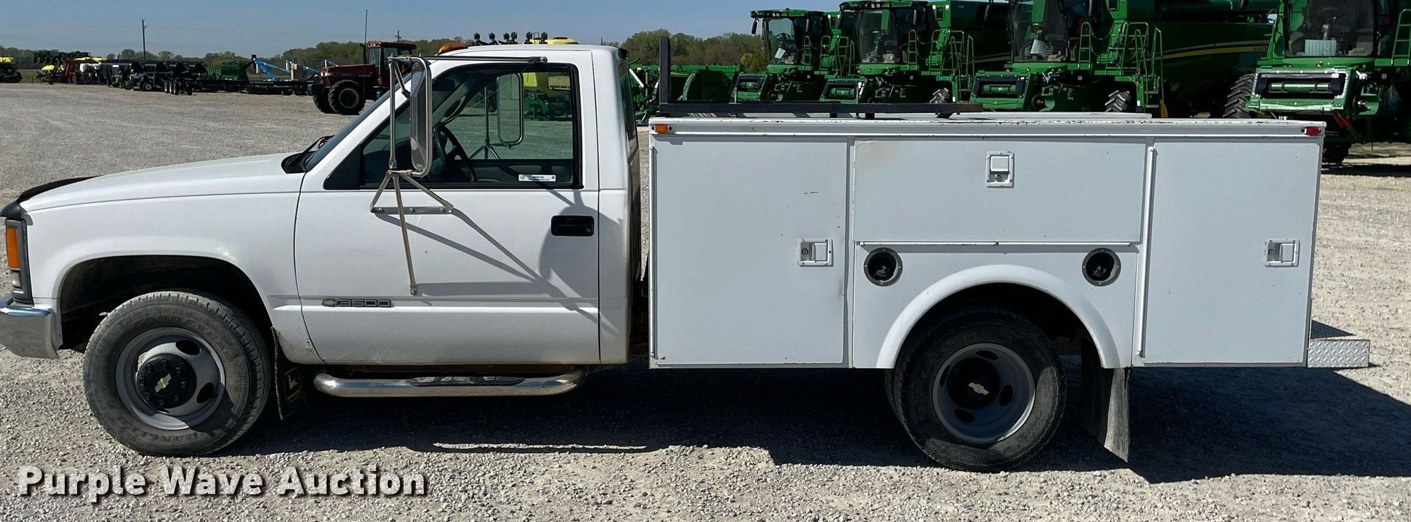 This 2000 Chevrolet C3500 utility bed pickup truck will sell to the highest bidder regardless of price.