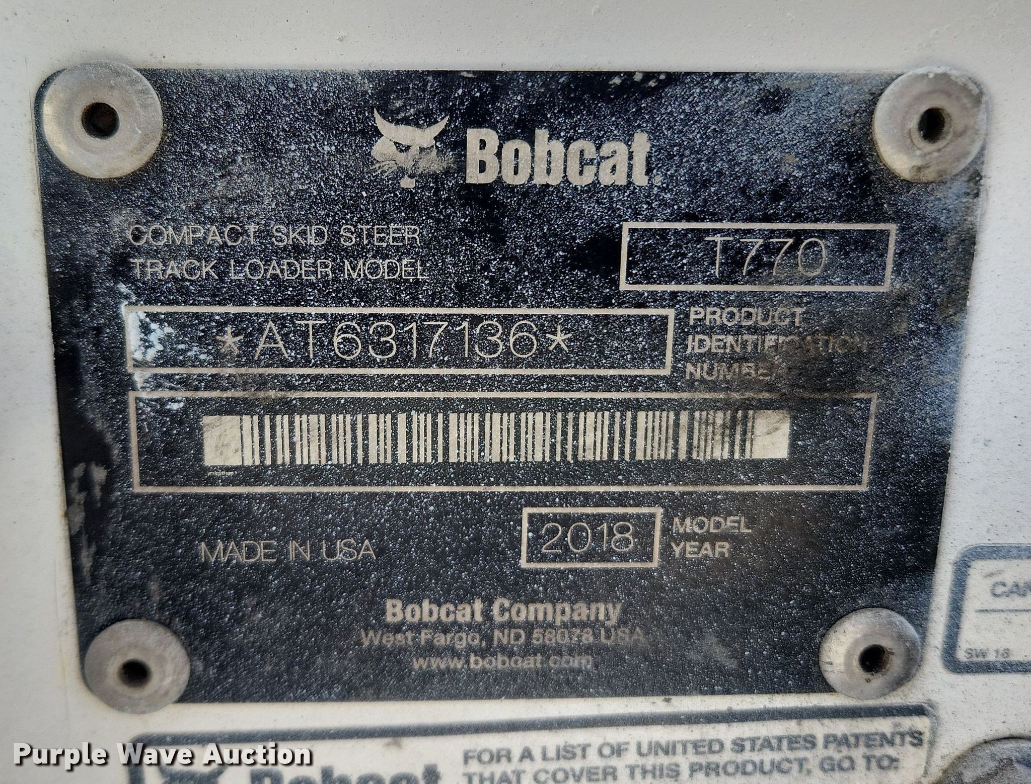 Purple Wave is selling a used Tracked Skid Steer Loader in Missouri. This item is a 2018 Bobcat T770 tracked skid steer loader with the following: Hours: 2,731 on meter, Serial: AT6317136