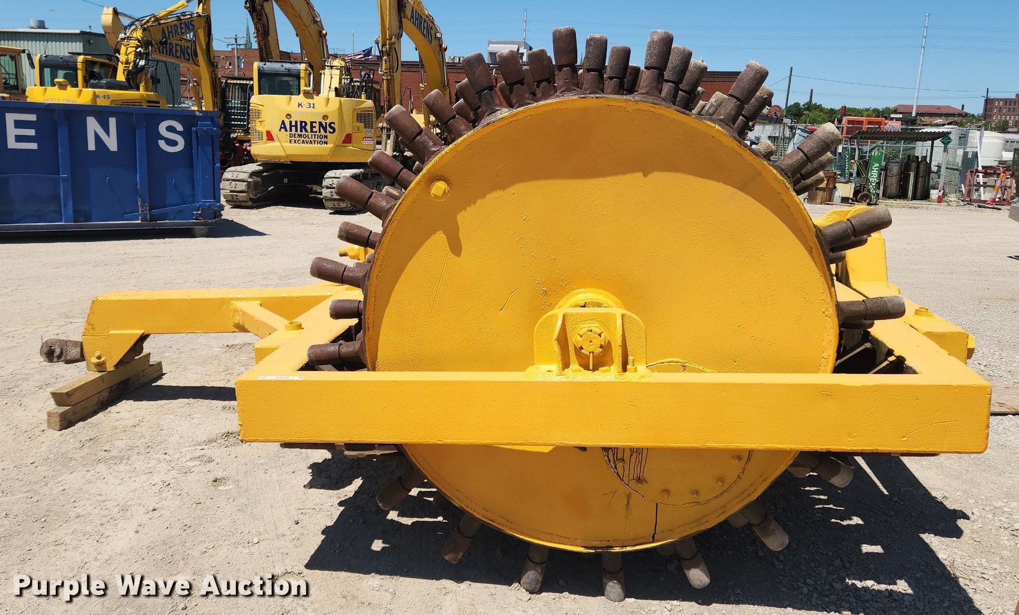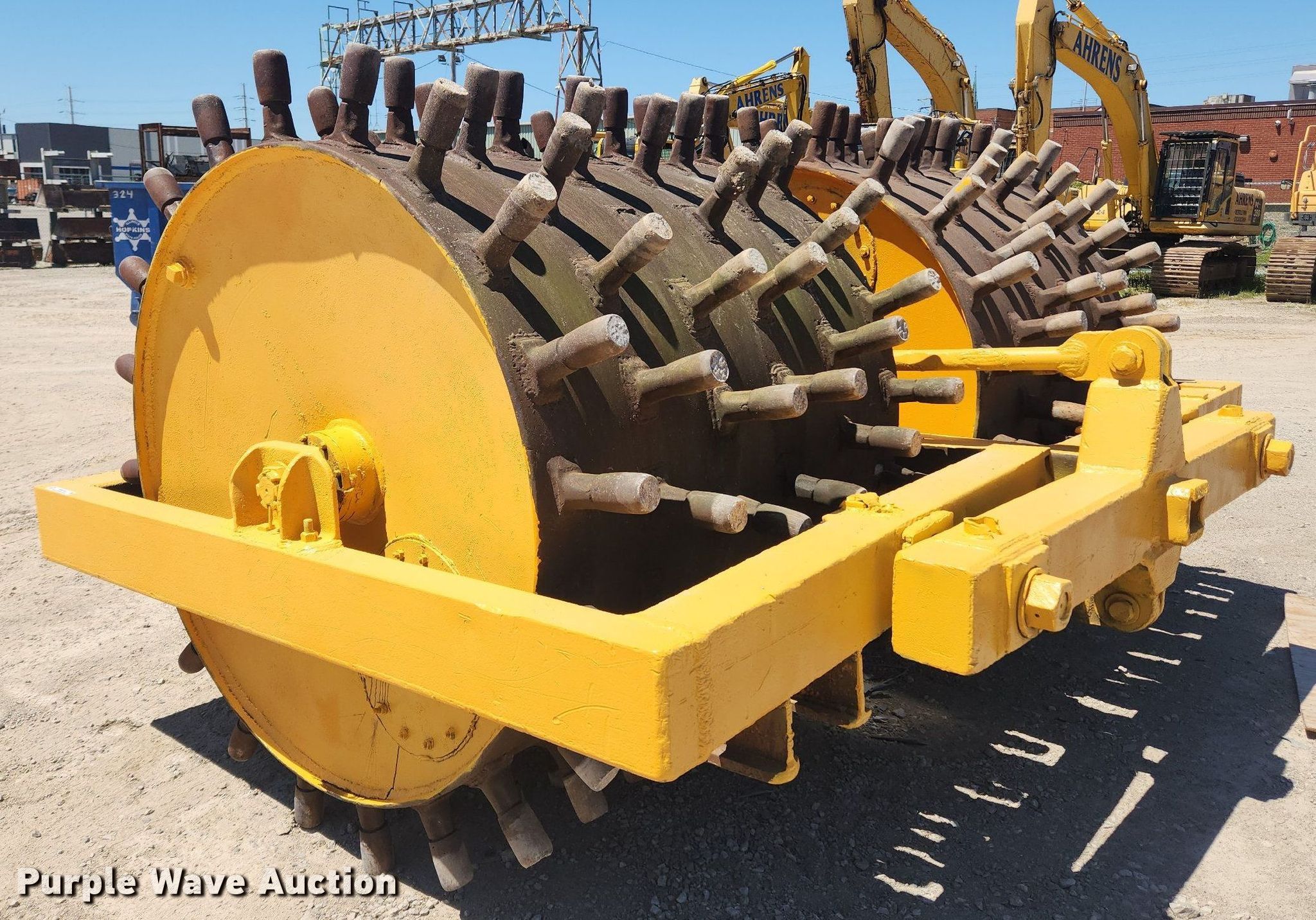 Sheepsfoot roller. 16' 9" L x 11' 11" W overall, 5' x 5' drums. Features Drum: Sheepsfoot, Front drum, Rear drum, Drum scrapers: Front, Rear. Ahrens Contracting. St. Louis, MO 63146