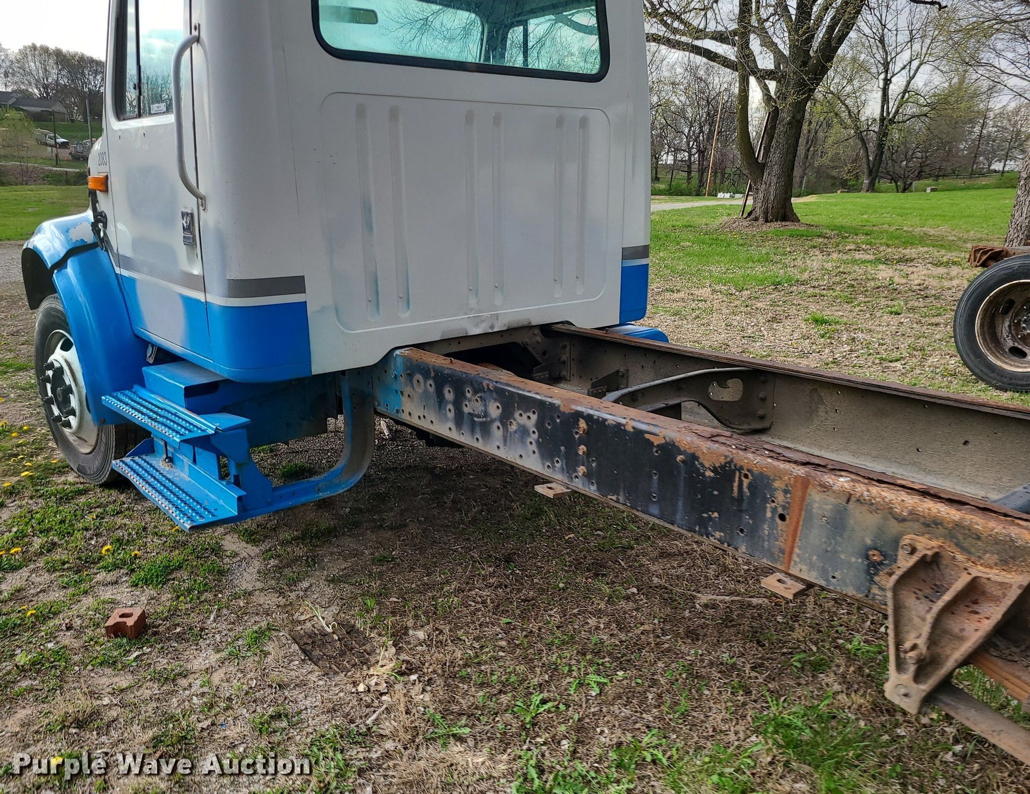 1999 International 4700 truck cab and chassis. Miles: 315,631 on odometer, VIN: 1HTSCAAM7XH630295. Engine International DT466, Displacement: 7.6L, Cylinders: 6, Fuel type: Diesel. Transmission Manual, Speed: 7. Chassis Axles: Single, Suspension: Spring, Brakes: Hydraulic, Truck chassis: 11'. Interior Heat, Cruise control. Tires Size: 255/70R22.5. Notes Windshield chipped or cracked, Unknown operating condition. Missouri title. Sugar Creek, MO 64050