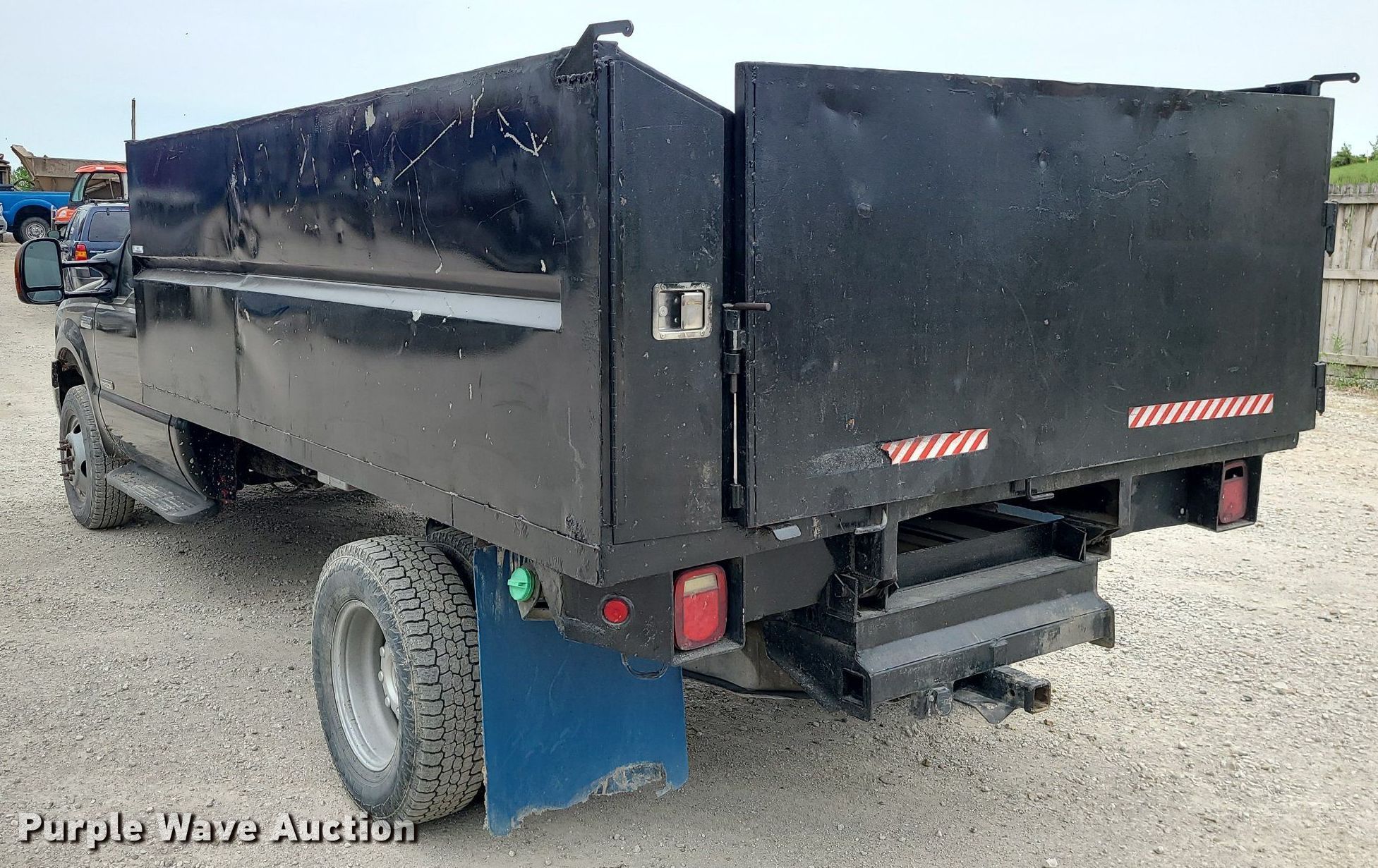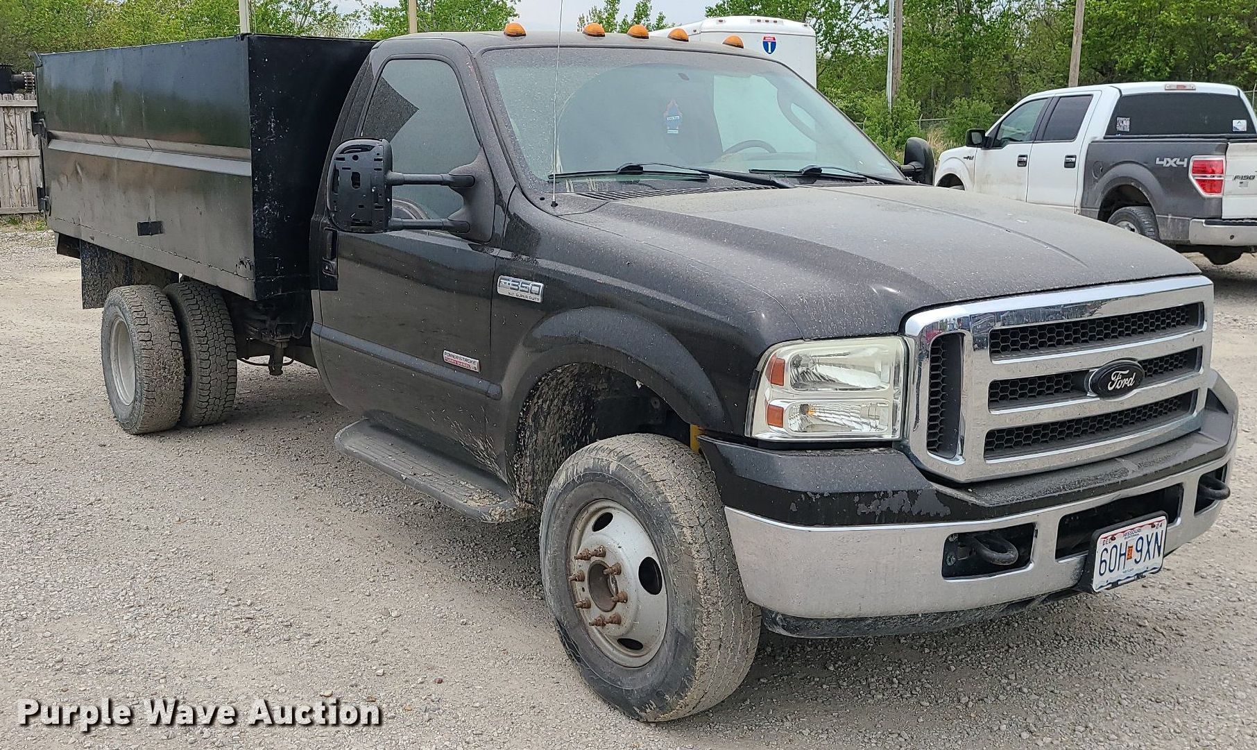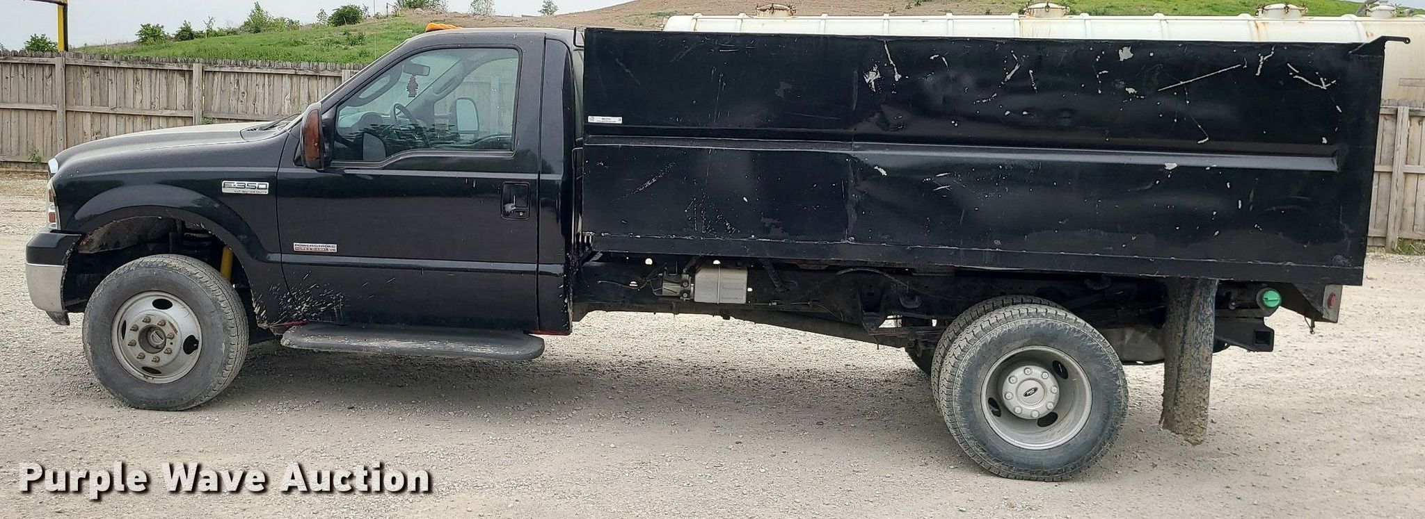 This 2005 Ford F350 Super Duty dump bed pickup truck will sell to the highest bidder regardless of price.