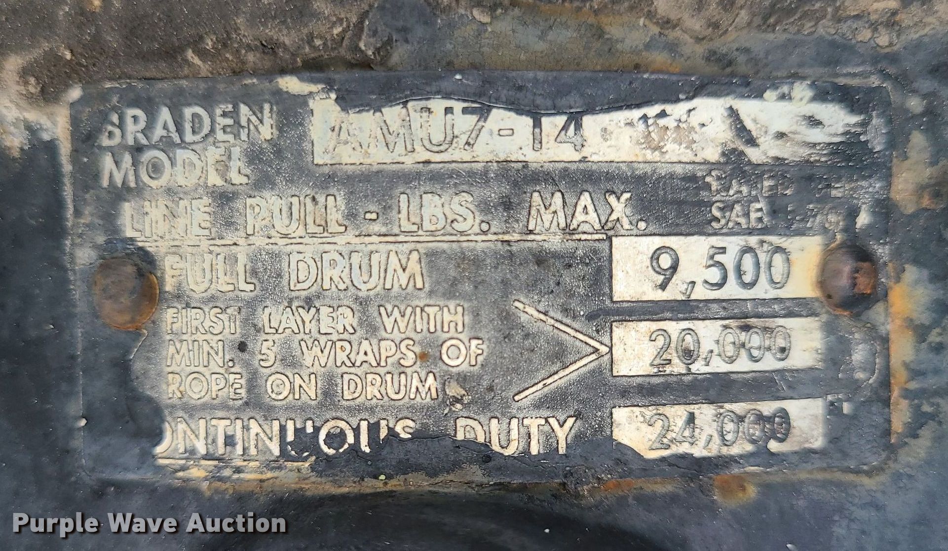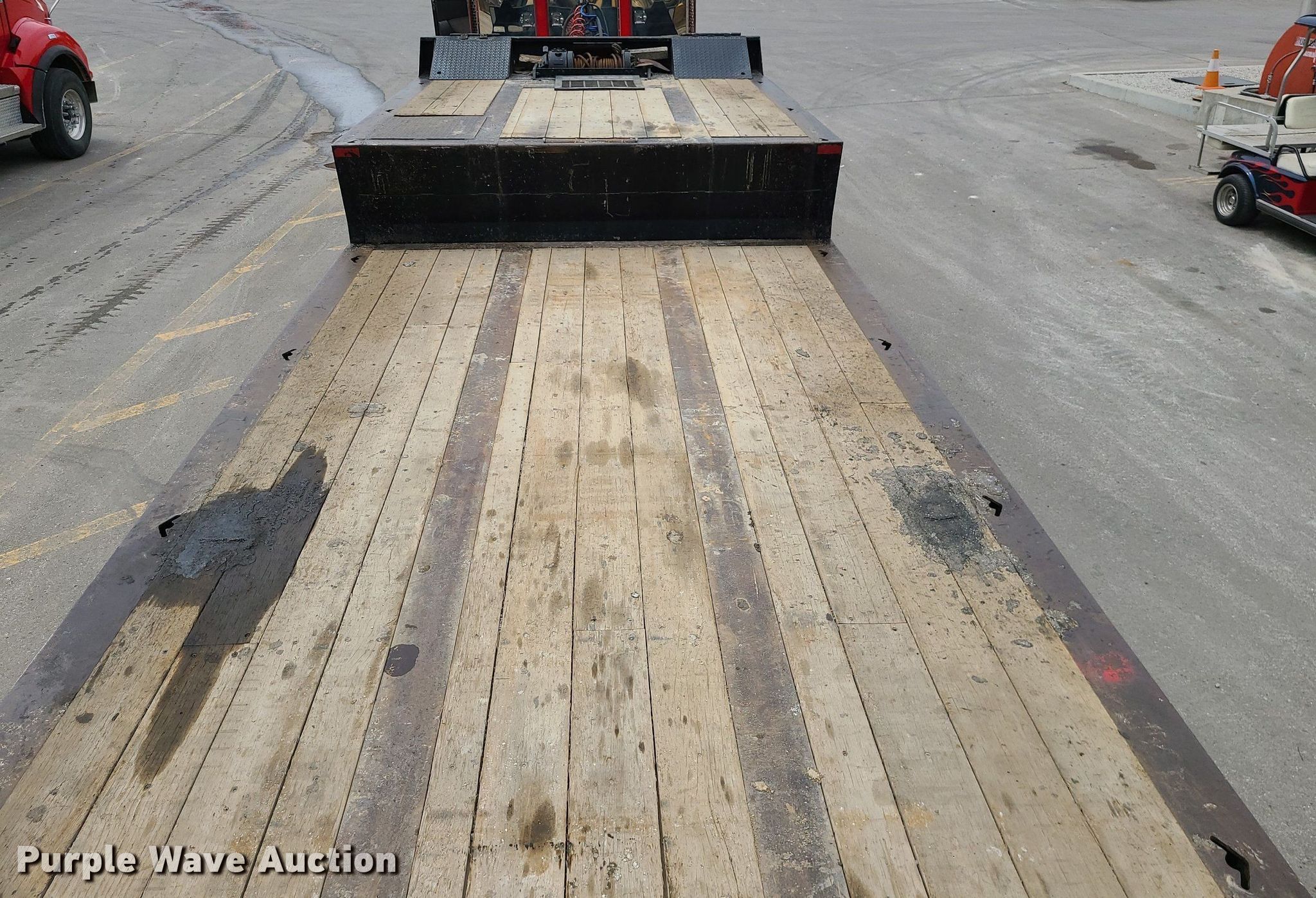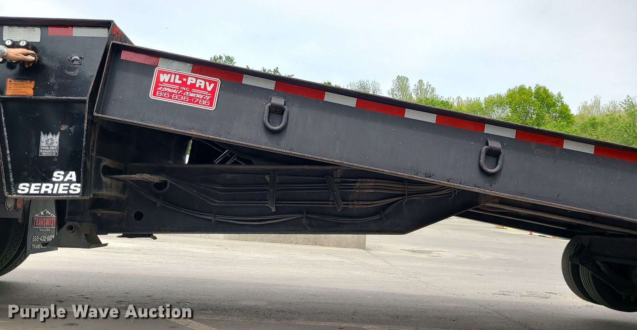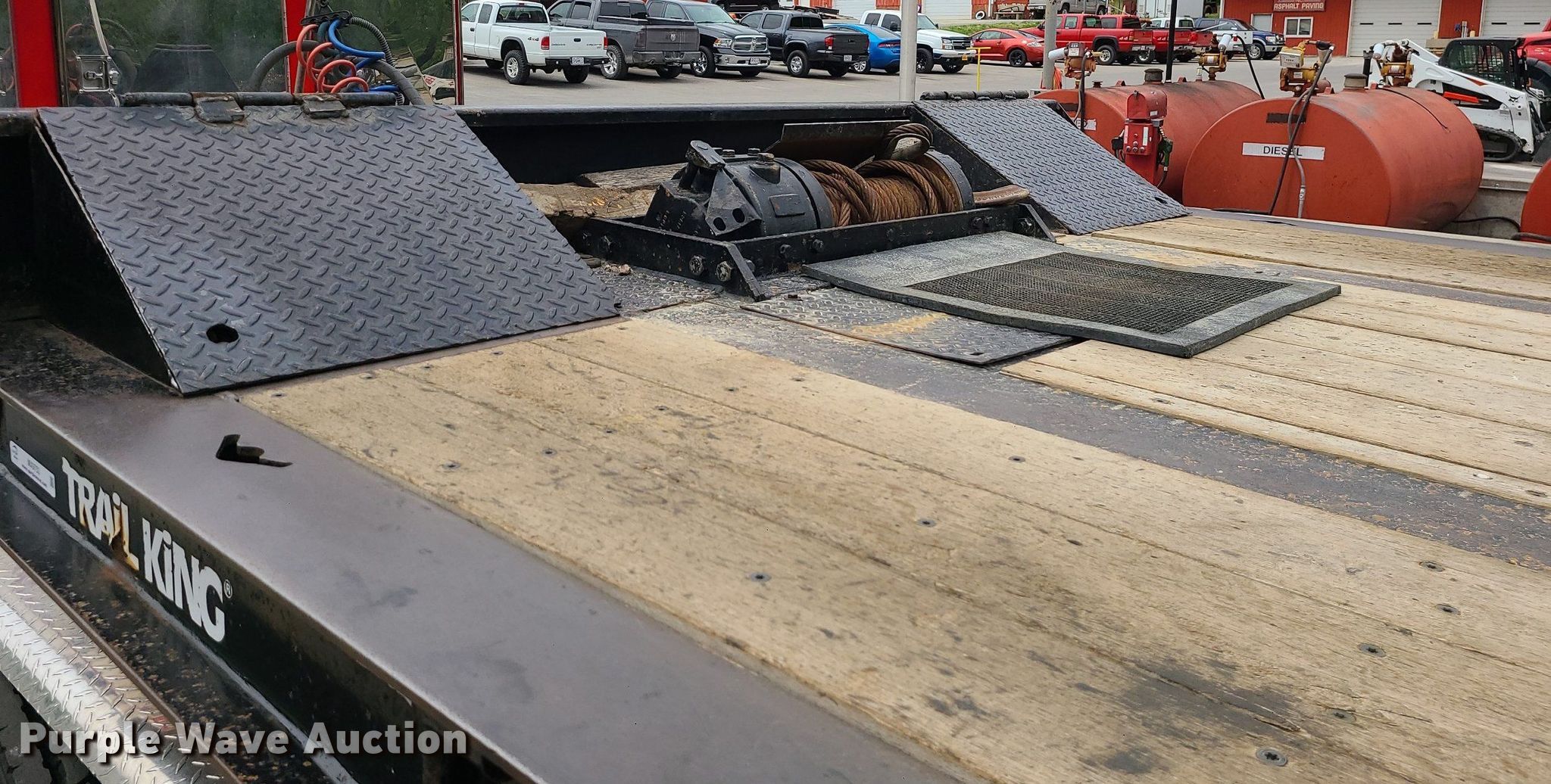 2000 Trail King TKS0SA-482 lowboy equipment trailer. VIN: 1TKA04828YM021631. Dimensions Overall: 48' L x 102" W, Deck: 38' L x 102" W, Top deck length: 10', Hydratail length: 24". Features Deck type: Wood, Winch Braden AMU7-14, Capacity: 24,000 lbs, Hydraulic controls: Manual. Chassis Landing gear: Dual, Suspension: Spring, Brakes: Air, Axles: Tandem, Sliding, GVWR: 87,500 lbs. Tires Size: 215/75R17.5. Missouri title. Title distribution may be delayed up to 14 days from verification of funds. Wil-Pav Inc. 12900 E Kentucky Rd. Sugar Creek, MO 64050