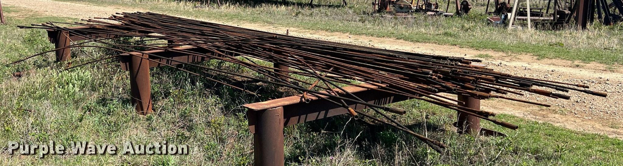 Purple Wave is selling a used Pipe in Oklahoma. This item is a Approximately 100 sucker rods with the following: 25'L x 5/8" diameter, 25'L x 3/4" diameter