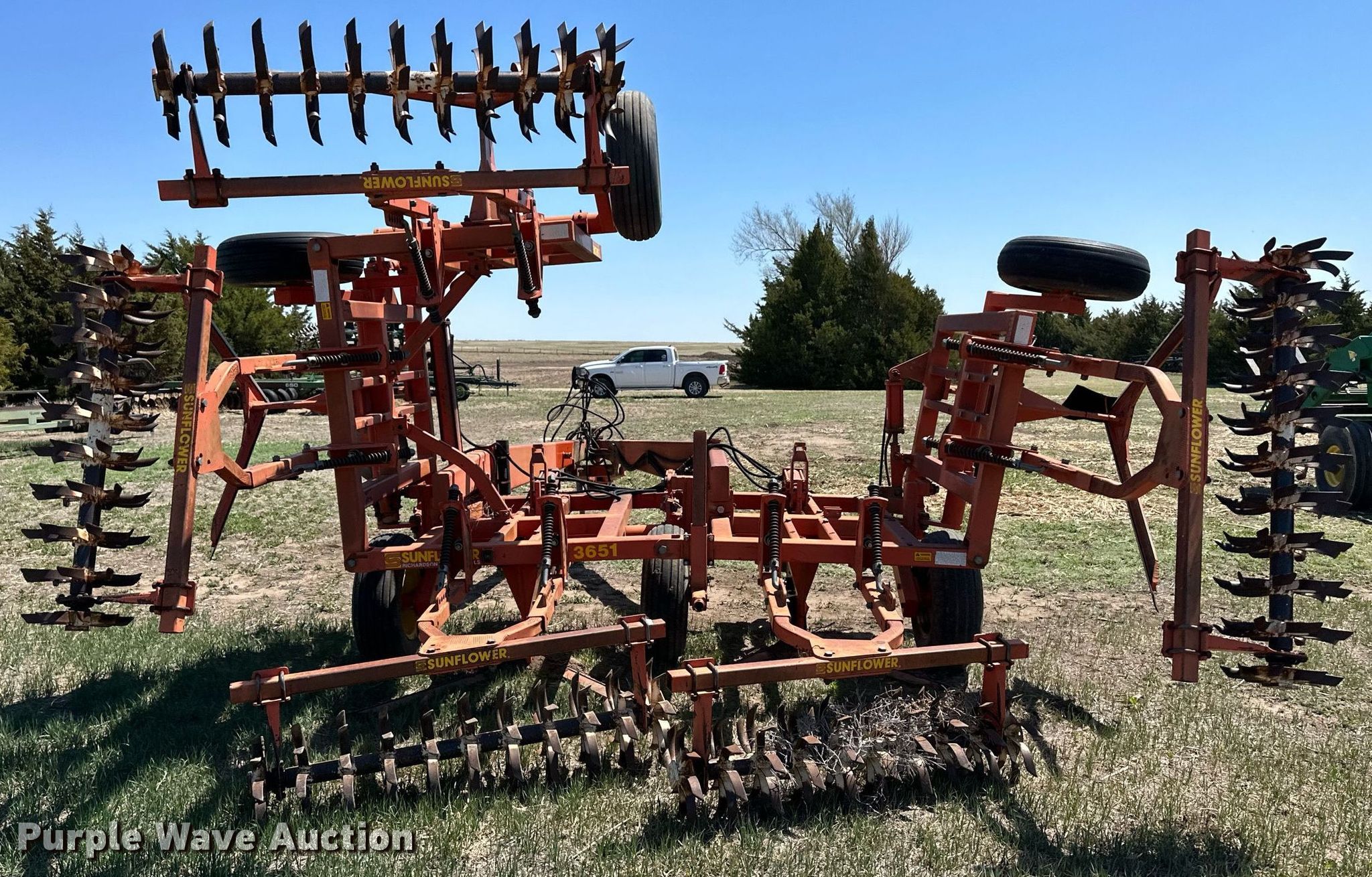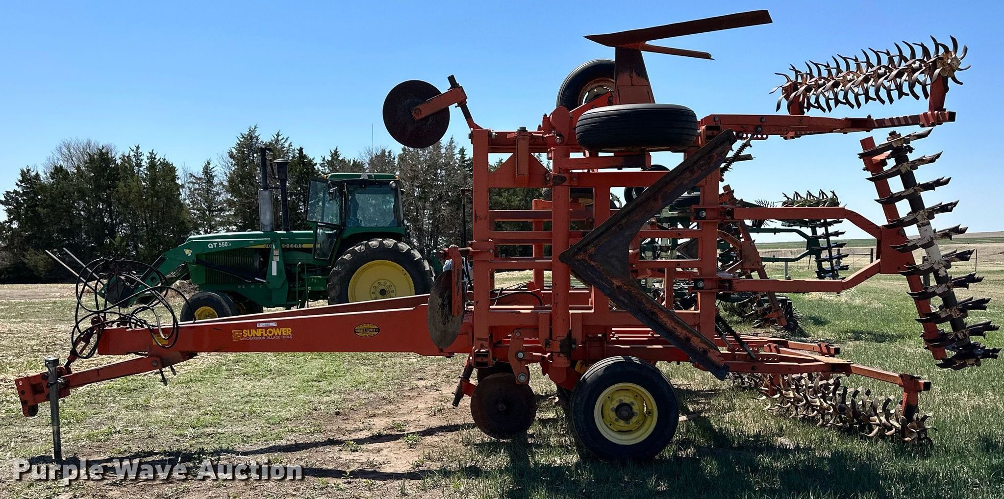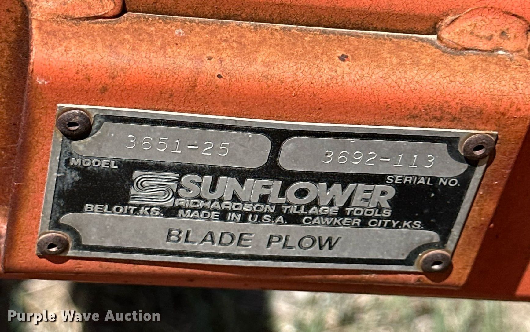 Purple Wave is selling a used Field Cultivator or Sweep Plow in Kansas. This item is a Sunflower sweep plow with the following: Overall width: 25', Serial: 3692-113