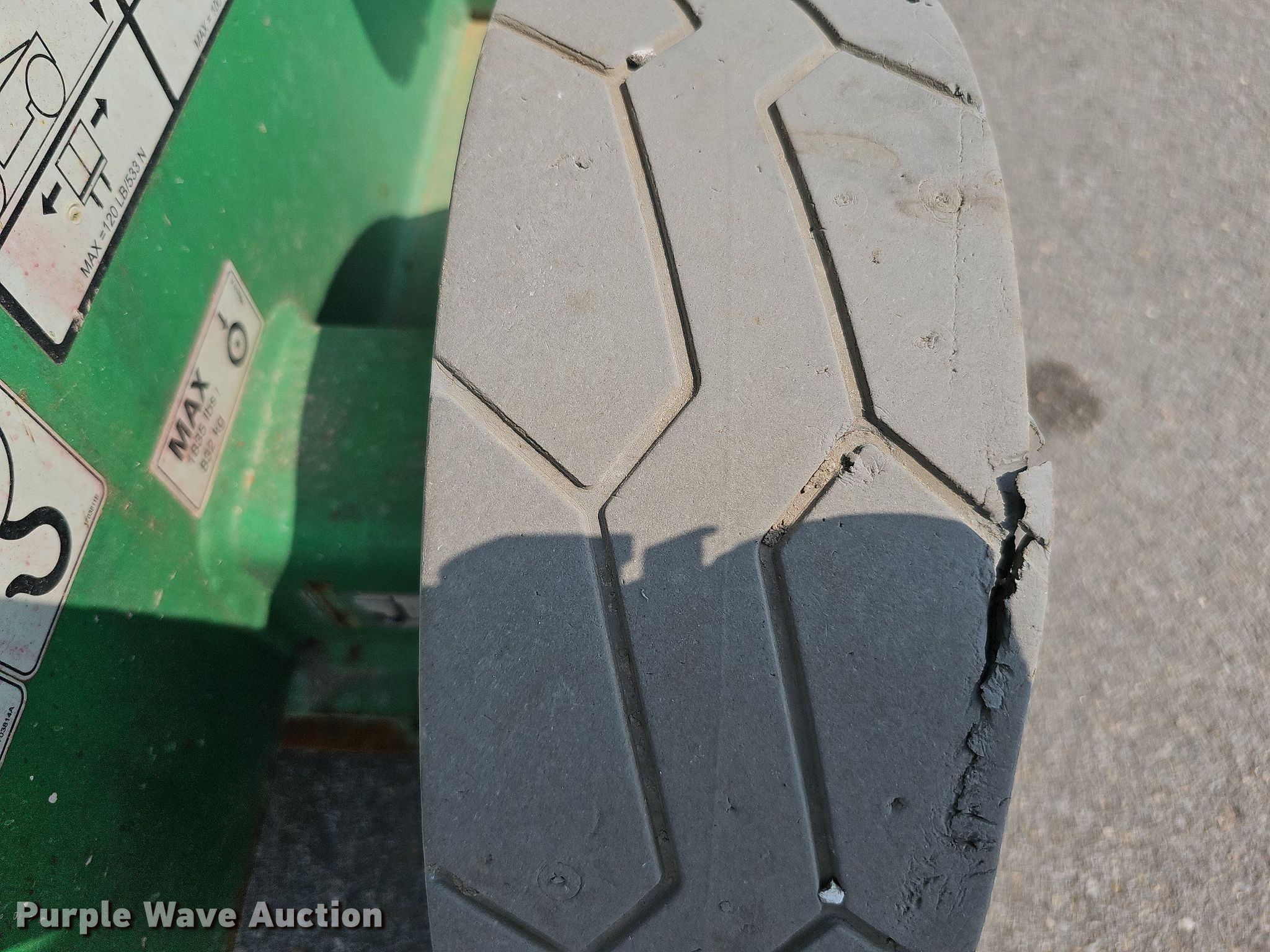 2018 JLG 2632ES scissor lift. Hours: 193 on meter, Serial: M200018634. Electric Motor Volts: 24. Features Maximum lift capacity: 500 lbs, Maximum lift height: 25.4', Platform: 122" L x 29" W, Controls: Remote Control, Ground, Platform extensions: Manual, Safety alarm. Tires Tire size: 406x125x5, Solid. Jordan Machinery /S & N Auto Sales. 25050 US Hwy 275. Waterloo, NE 68069