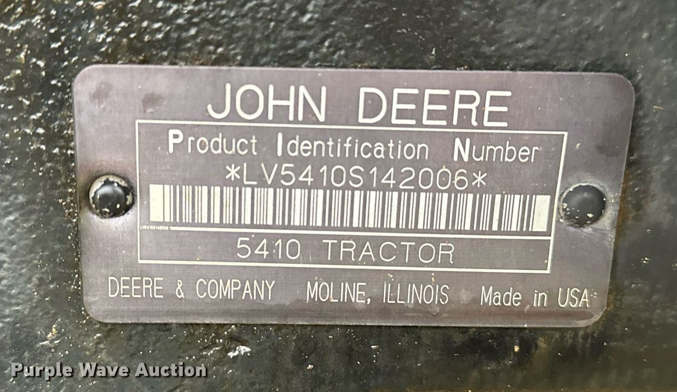 Purple Wave is selling a used Tractor in Oklahoma. This item is a 1998 John Deere 5410 tractor with the following: Hours: 1,206 on meter, Serial: LV5410S142006