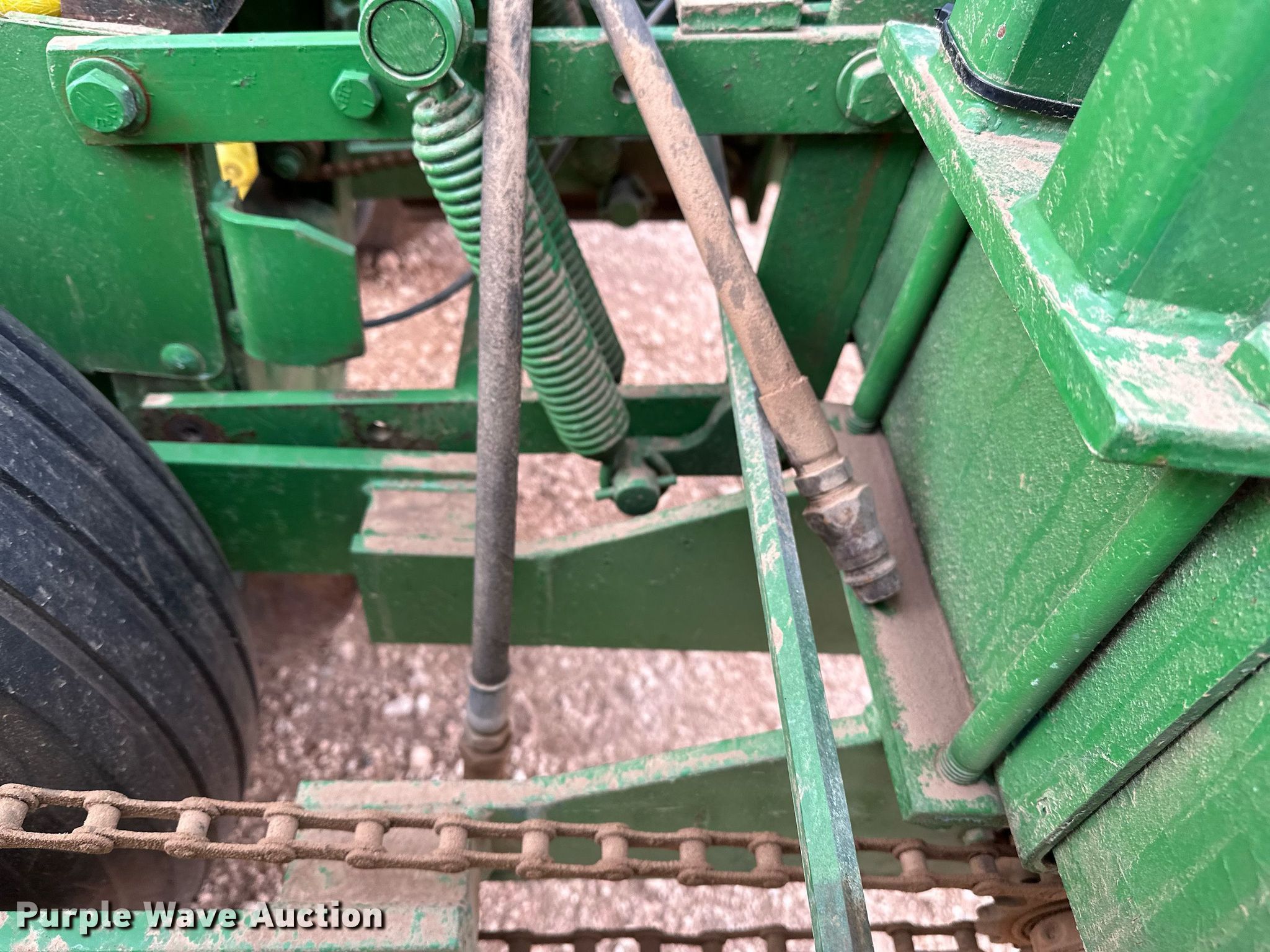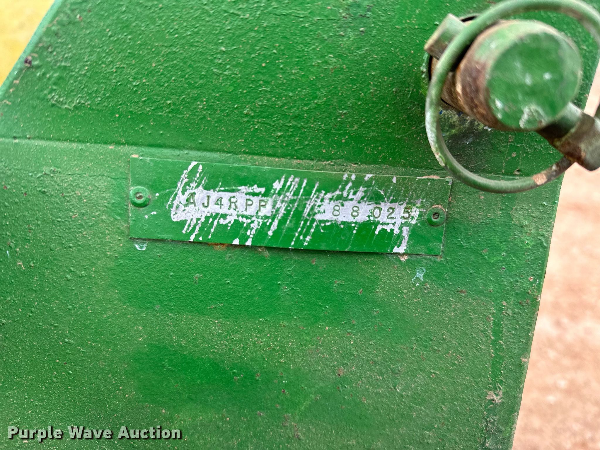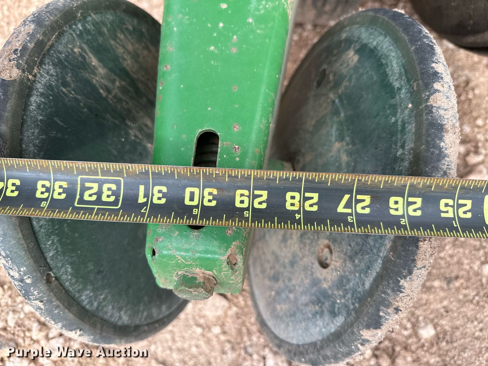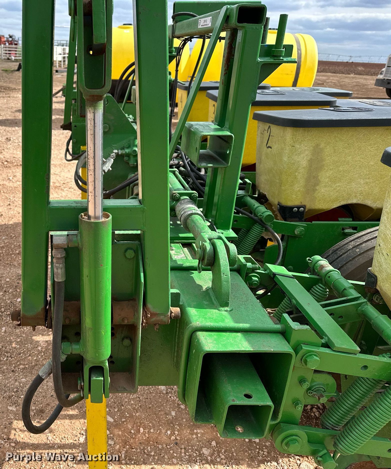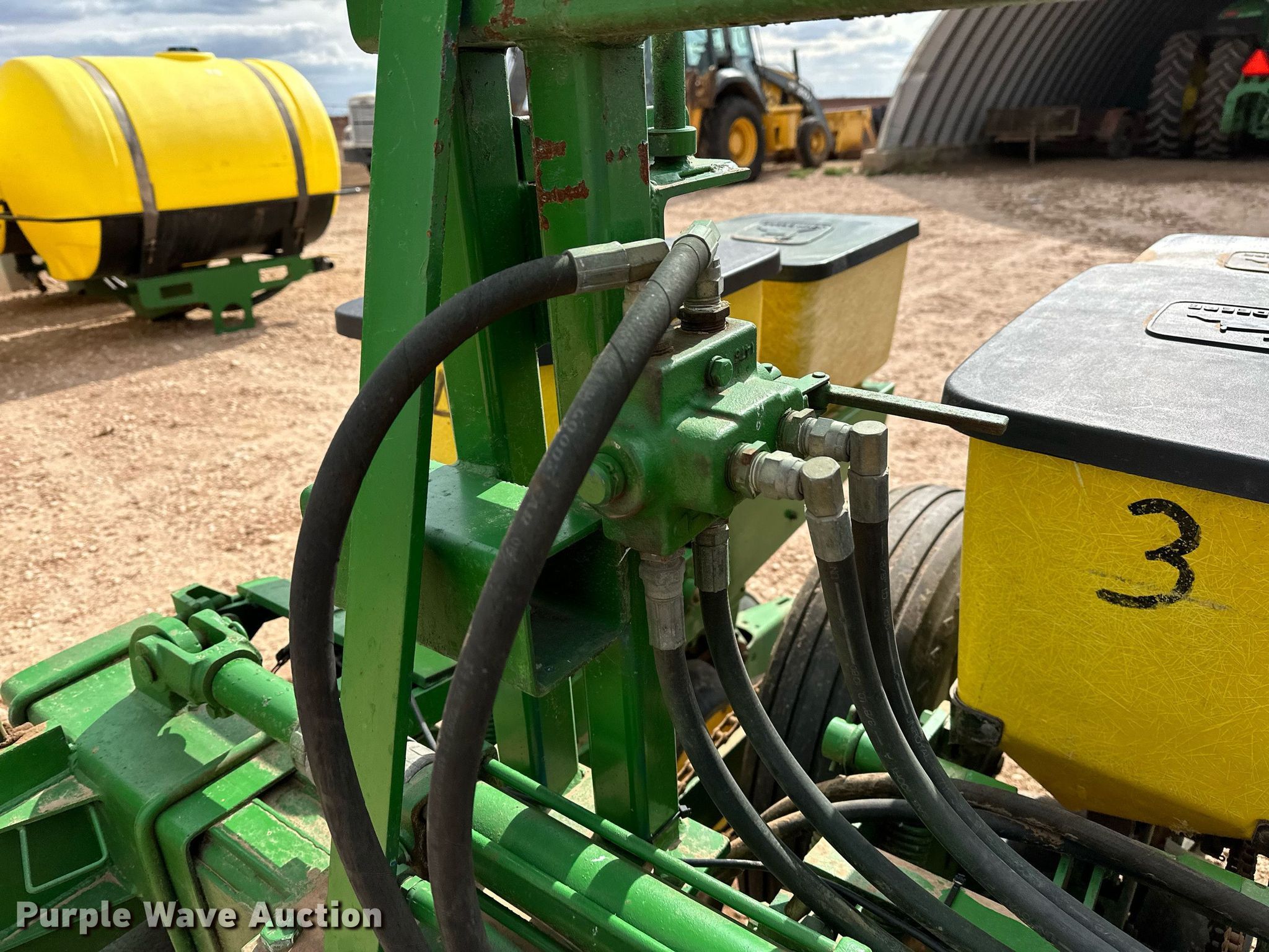 John Deere no-till planter. Width: 8', Row units: 4, Row spacing: 30", Serial: AJ4RPP88025. Features Frame Hitch: Three point, Marker arm, Seed delivery Individual seed hoppers, Row units Meter drive: Ground, Down pressure: Spring, Disk openers: Single , Gauge wheels: Double, Closing system: Double Type: Rubber, Fertilizer/ insecticide Fertilizer, Application method: Coulter, Insecticide boxes. Tires Transport tire size: 7.6-15 Quantity: 2. Notes Hole in seed hopper 2. 40720 County Road 28. Wildorado, TX 79098