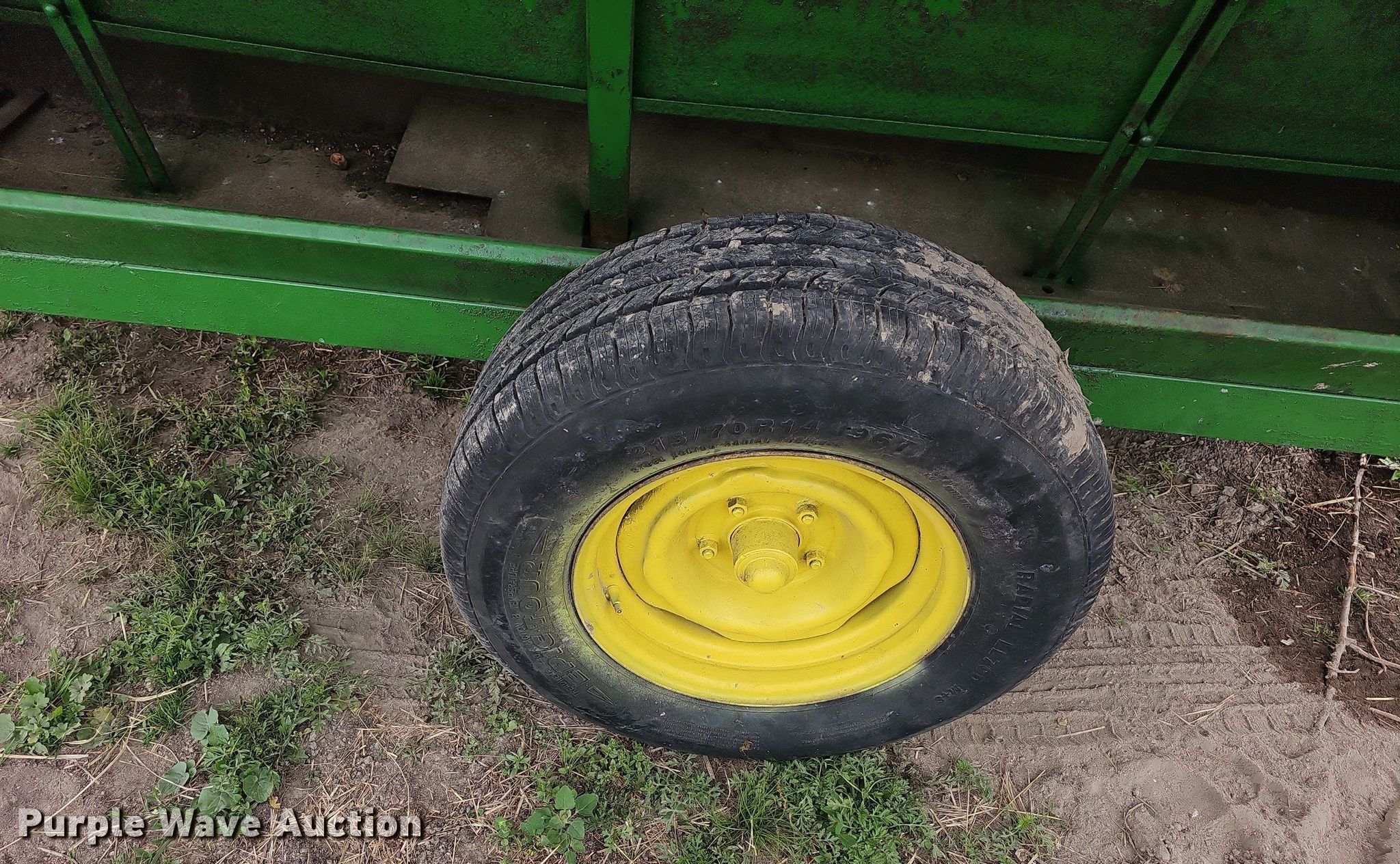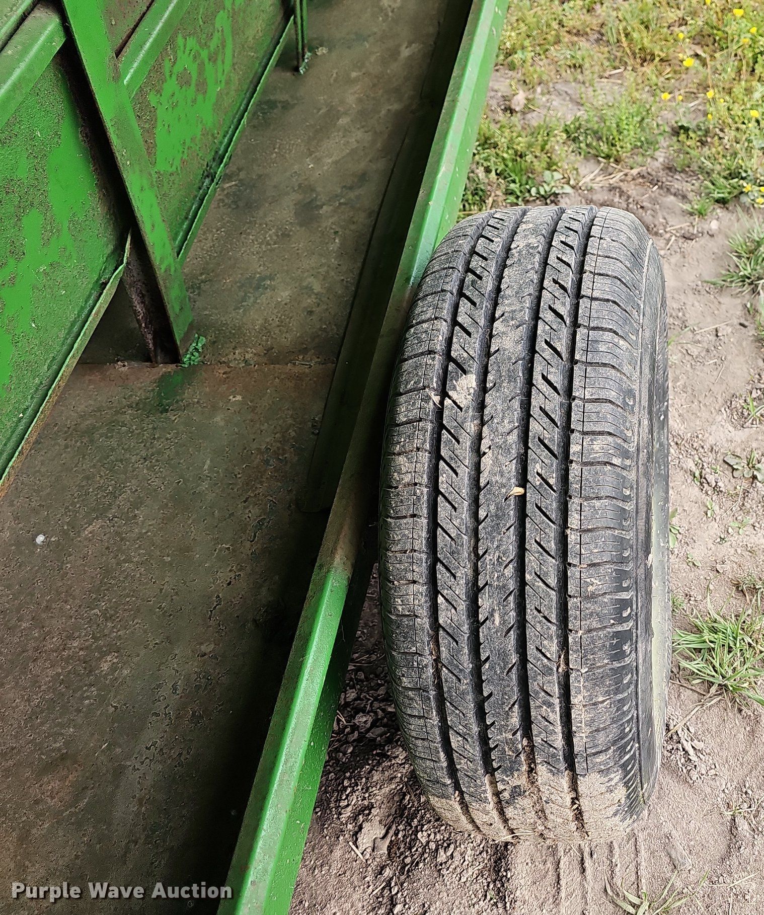 Richard Cox Manufacturing creep feeder. Serial: 433X1502. Features Overall: 8'L x 96"W, Feeder: 8'L x 48"W, Top fill. Chassis Landing gear: Single. Tires Size: 215/70R14. Rivard Ranch. 30526 Smokey Road. Richland, MO 65556