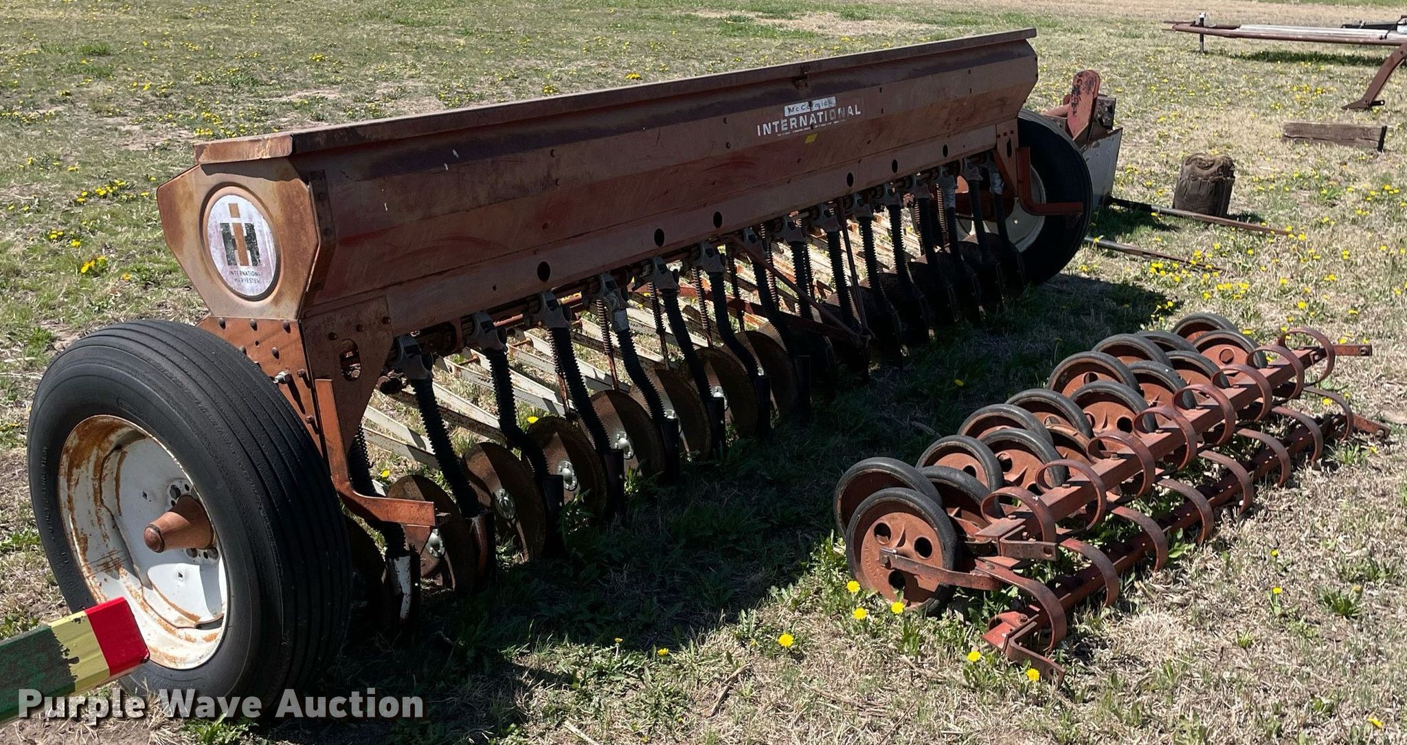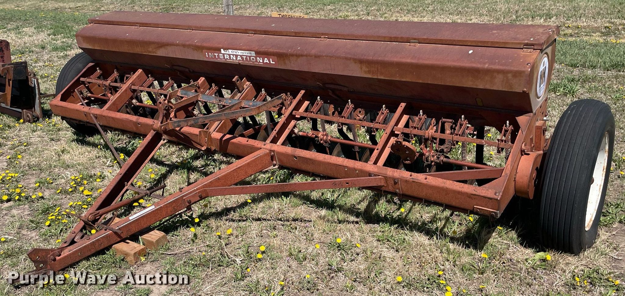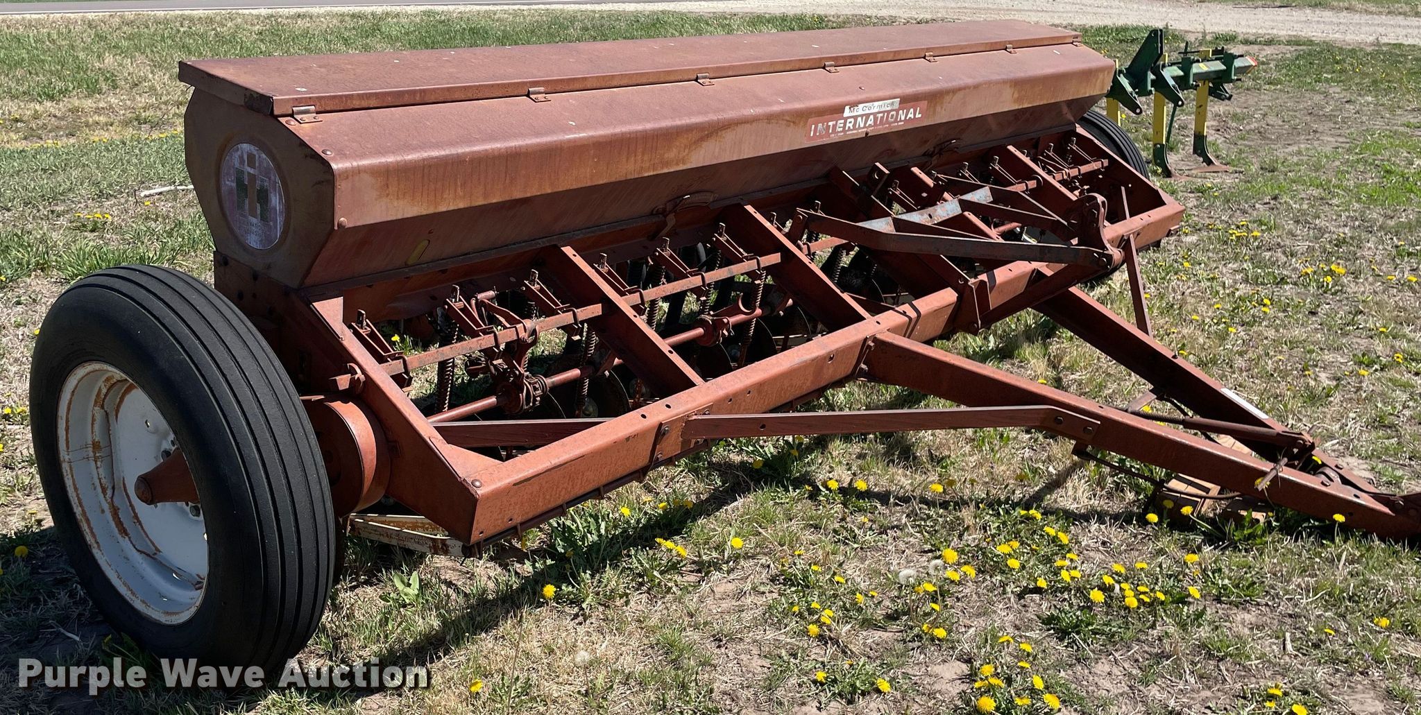 Purple Wave is selling a used Grain Drill or Seeder in Kansas. This item is a International Harvester grain drill with the following: Width: 13', Row units: 16, Row spacing: 10"