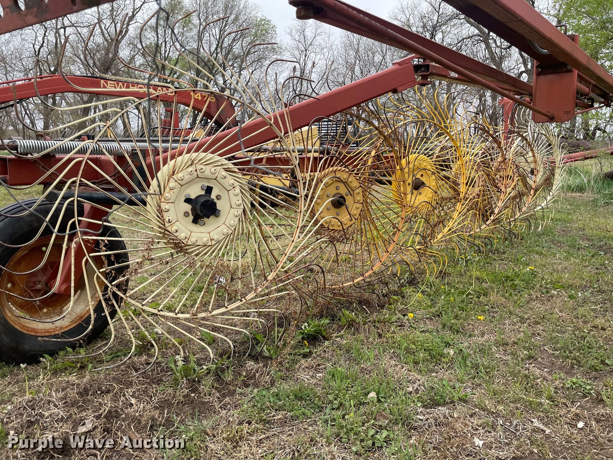 Purple Wave is selling a used Hay Rake in Kansas. This item is a Hesston 3983 hay rake with the following: Serial: 00201