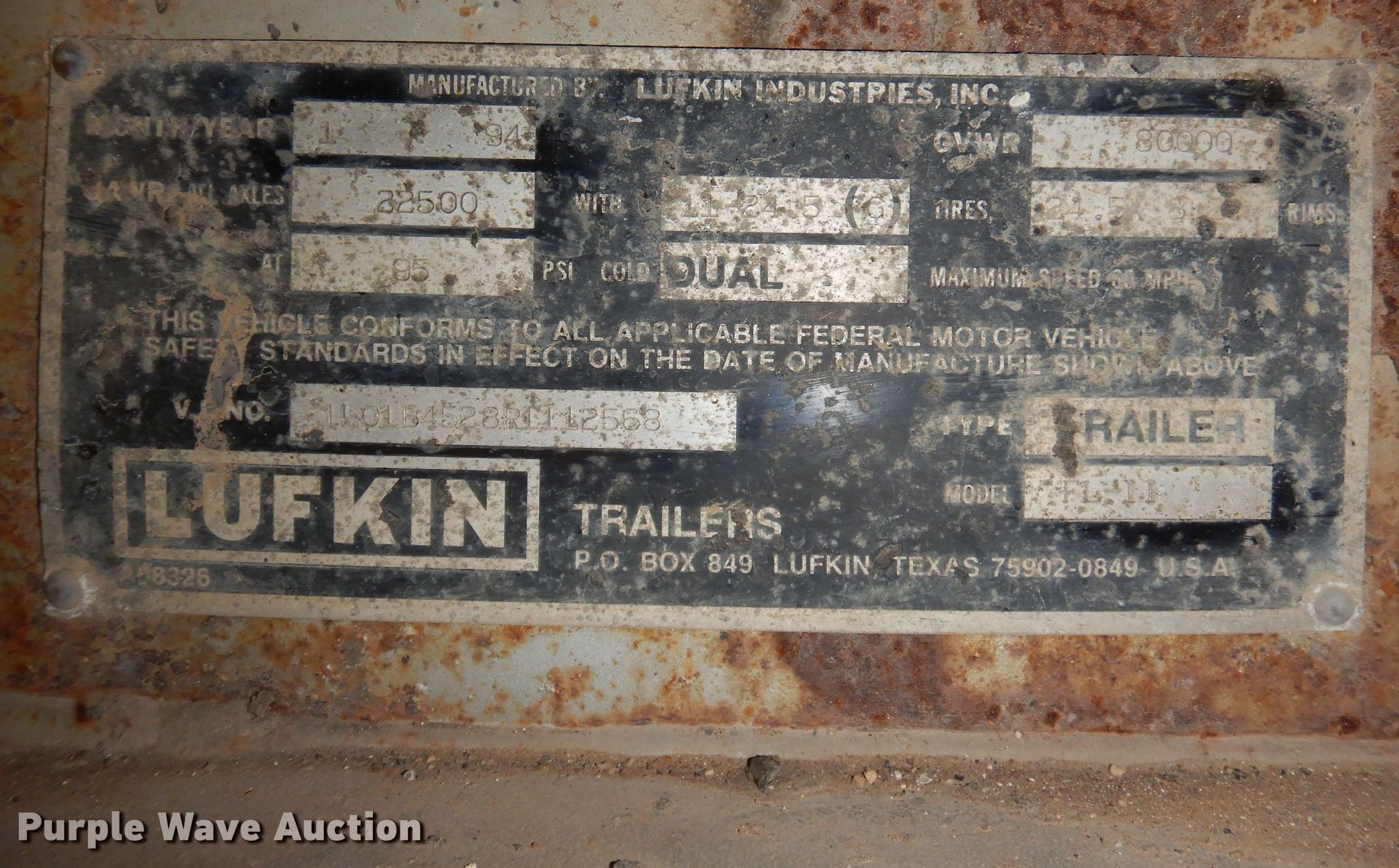 Purple Wave is selling a used Flat or Drop Deck Trailer in Texas. This item is a 1994 Lufkin FL-II flatbed trailer with the following: VIN: 1L01B4528R1112568