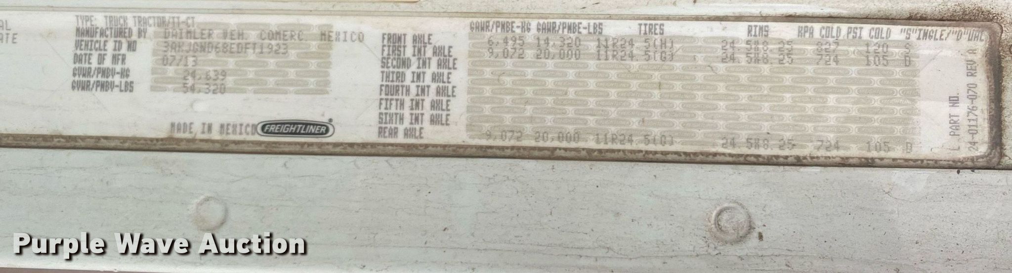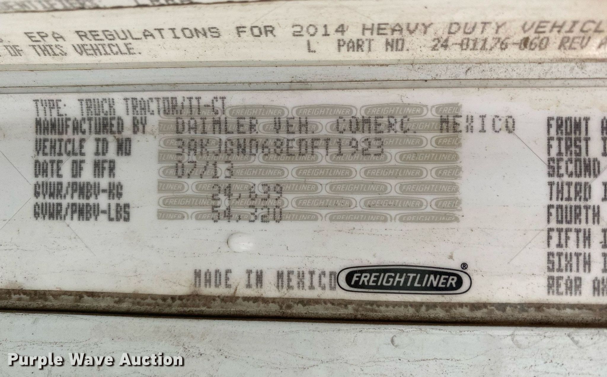Purple Wave is selling a used Truck Tractor in Oklahoma. This item is a 2014 Freightliner Coronado SD semi truck with the following: Miles: 477,742 on odometer, VIN: 3AKJGND68EDFT1923, Unit #: 923
