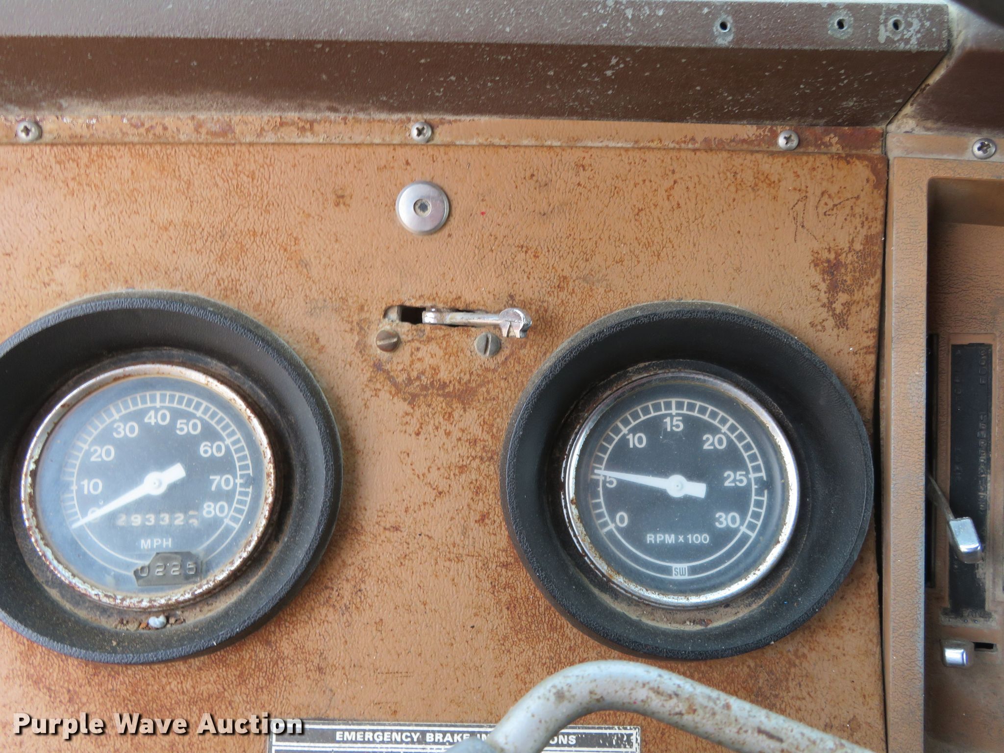 1977 Ford 900 dump truck. Miles: 29,332 on odometer, Miles: Unknown, VIN: U91TVY89511. Engine Detroit Diesel 8V71, Displacement: 9.3L, Cylinders: 8, Fuel type: Diesel. Transmission Manual, Speed: 13. Chassis Axles: Tandem, Differential lock: Inter-axle, Suspension: Spring over walking beam, Brakes: Air, PTO, GVWR: 44,800 lbs, Wheelbase: 186". Interior Heat. Features Dump bed 14' 11" L x 7' 10" W, Side height: 32", Side board height: 21", Bed type: Steel, Ram: Single , End gate: Manual. Tires Size: 10.00R20. Missouri title. Title distribution may be delayed up to 14 days from verification of funds. Foeste Masonry, Inc. 2525 Mo.177. Cape Girardeau, MO 63701