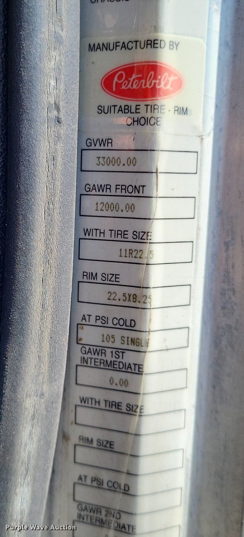 2000 Peterbilt 330 dump truck. Miles: 44,635 on odometer, VIN: 1NPNHD7X9YS520635. Engine Caterpillar 3126, Displacement: 7.2L L6, Cylinders: 6, Fuel type: Diesel. Transmission Eaton Fuller, Manual, Speed: 6. Chassis Axles: Single, Differential lock: Inter-axle, Suspension: Spring, Brakes: Air, PTO, GVWR: 33,000 lbs FAWR: 12,000 lbs, RAWR: 21,000 lbs. Interior AC, Heat, Brake controller. Features Dump bed Beau Roc DCS, 11' 4" L x 97" W, Side height: 30", Side board height: 8", Bed type: Steel, Ram: Single , End gate: Air operated. Tires Size: 11R22.5. Michigan title. Seller is an Illinois licensed motor vehicle dealer. The buyer may be required to pay sales tax and/or registration fees to the dealer prior to taking possession. Title will be assigned and distributed by the dealer. Please contact the seller for distribution questions. Parks Industries. 15460 Crabtree School Road. Marion, IL 62959