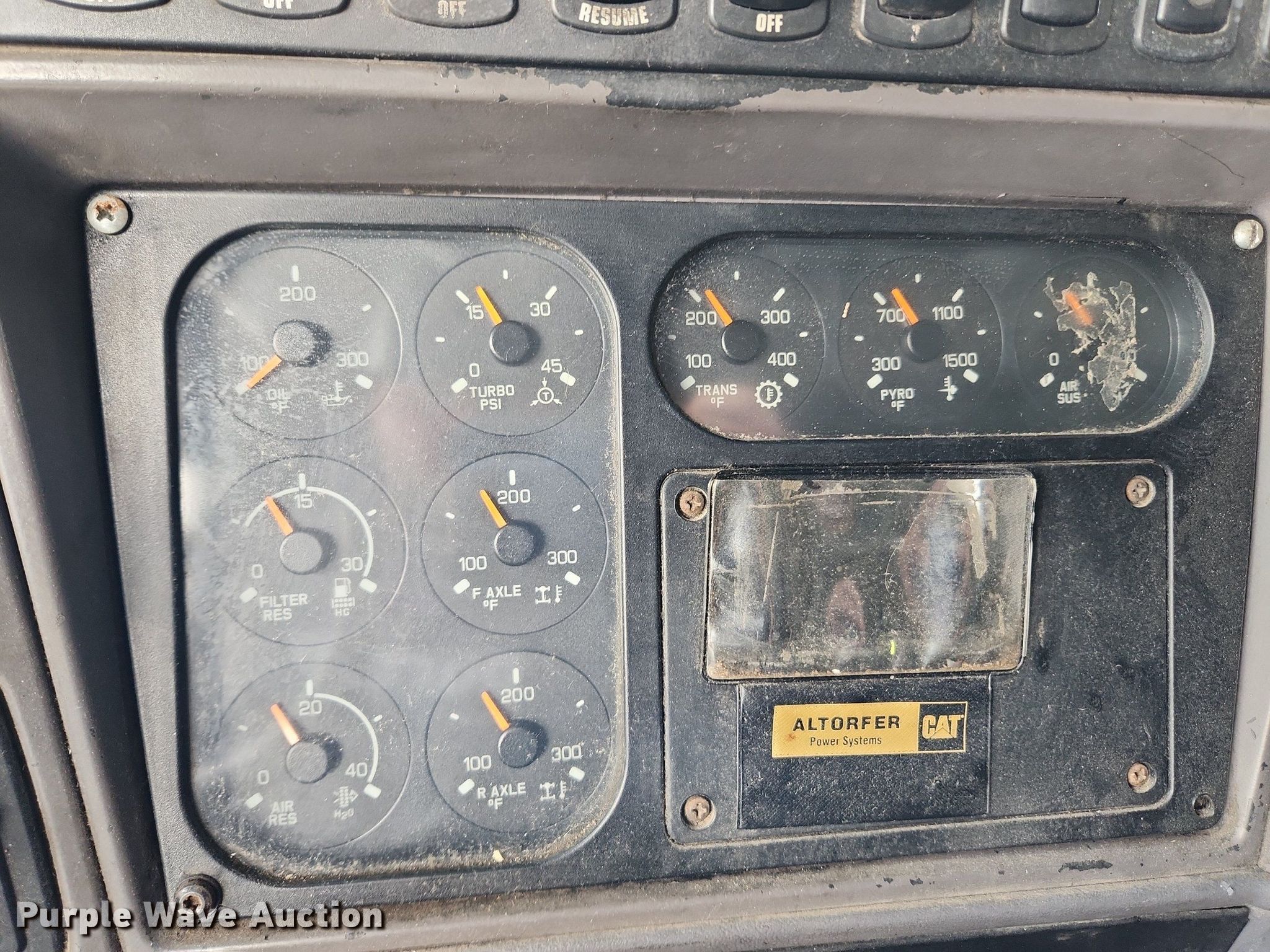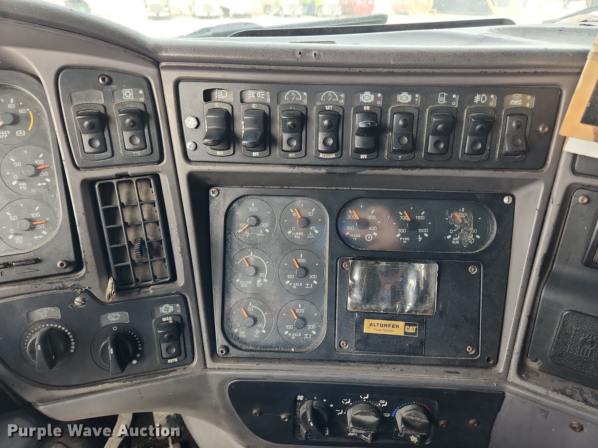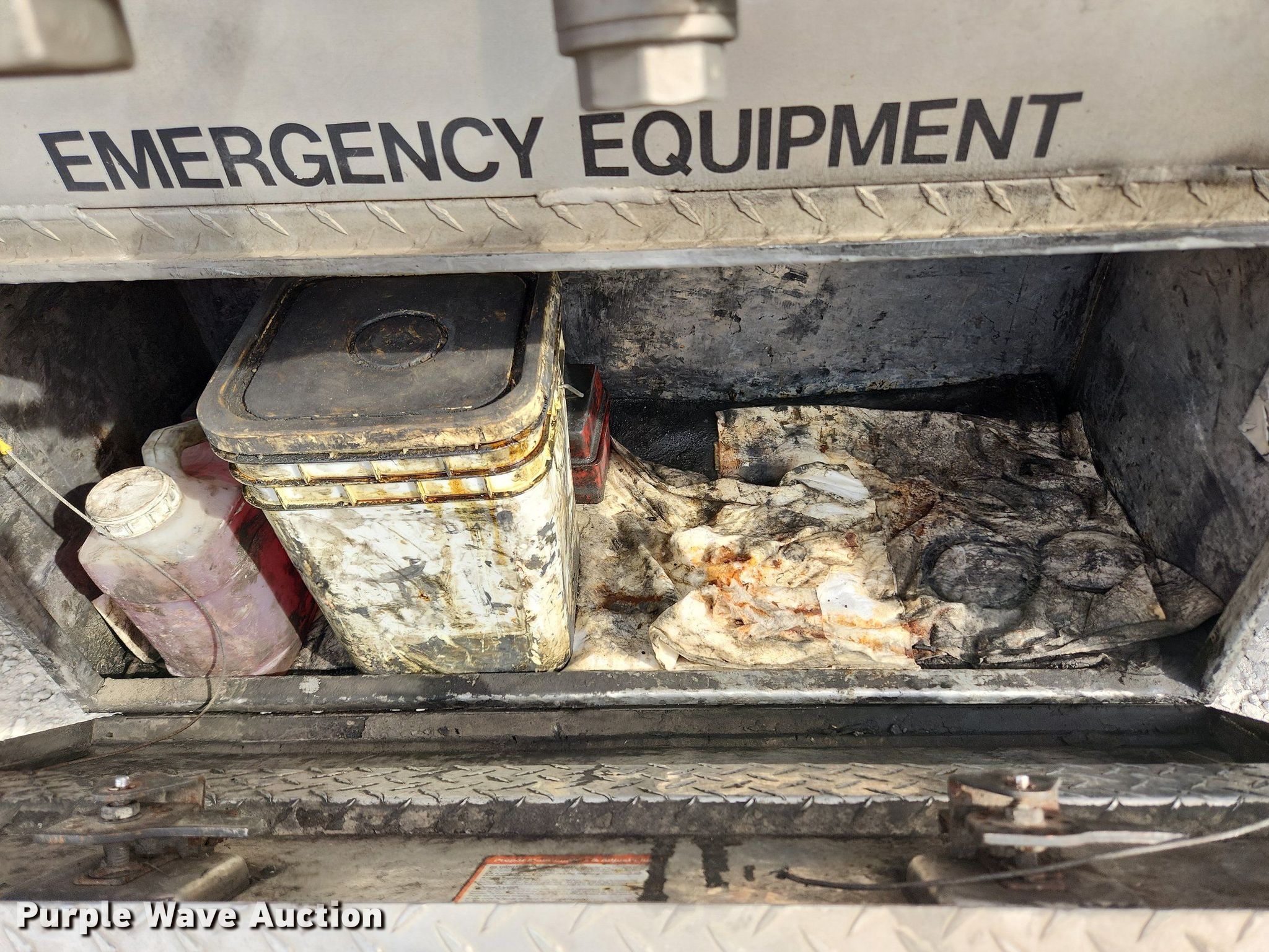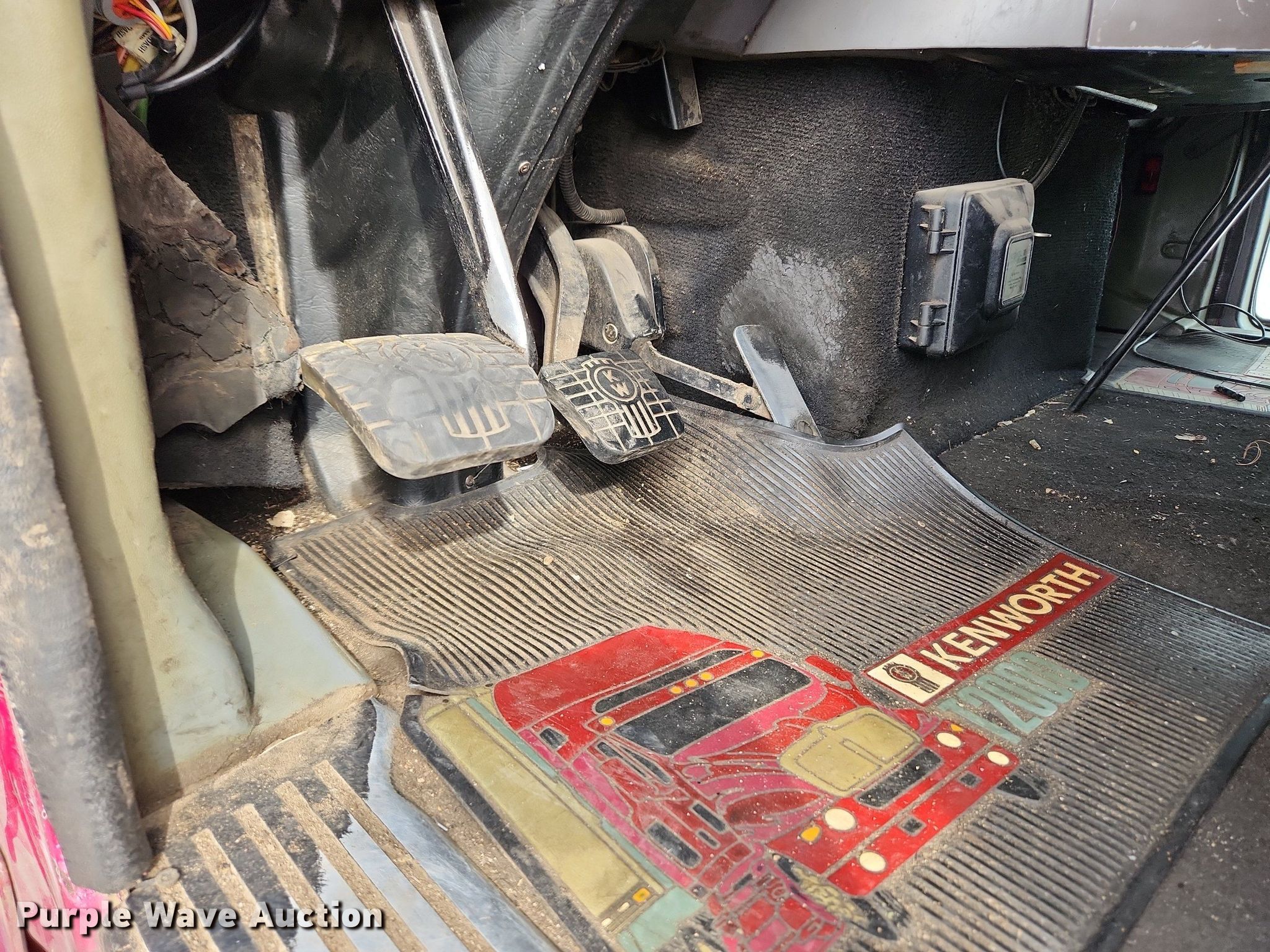 1997 Kenworth T2000 tank truck. Miles: 6,055 on odometer, Hours: 6,954 on meter, VIN: 1XKTDB9X3VJ738586. Engine Caterpillar 3406, Displacement: 14.6L, Cylinders: 6, Fuel type: Diesel. Transmission Eaton Fuller RTLO16713A, Manual, Speed: 13. Chassis Axles: Triple, Pusher axle, Differential lock: Inter-axle, Suspension: Air, Brakes: Air, PTO, GVWR: 48,000 lbs. Interior AC, Heat, Heated mirrors, Power windows, Power locks, Cruise control. Features Bed / tank Capacity: 4,500 gallons, 19' 6" L x 94" W, Side discharge, Rear drain: 3". Tires Front: 12R22.5, Rear: 285/75R24.5, Lift axle: 255/70R22.5. Notes Driver side power control module issues. Illinois title. Title distribution may be delayed up to 14 days from verification of funds. GFL Environmental Inc. St. Louis, MO 63146