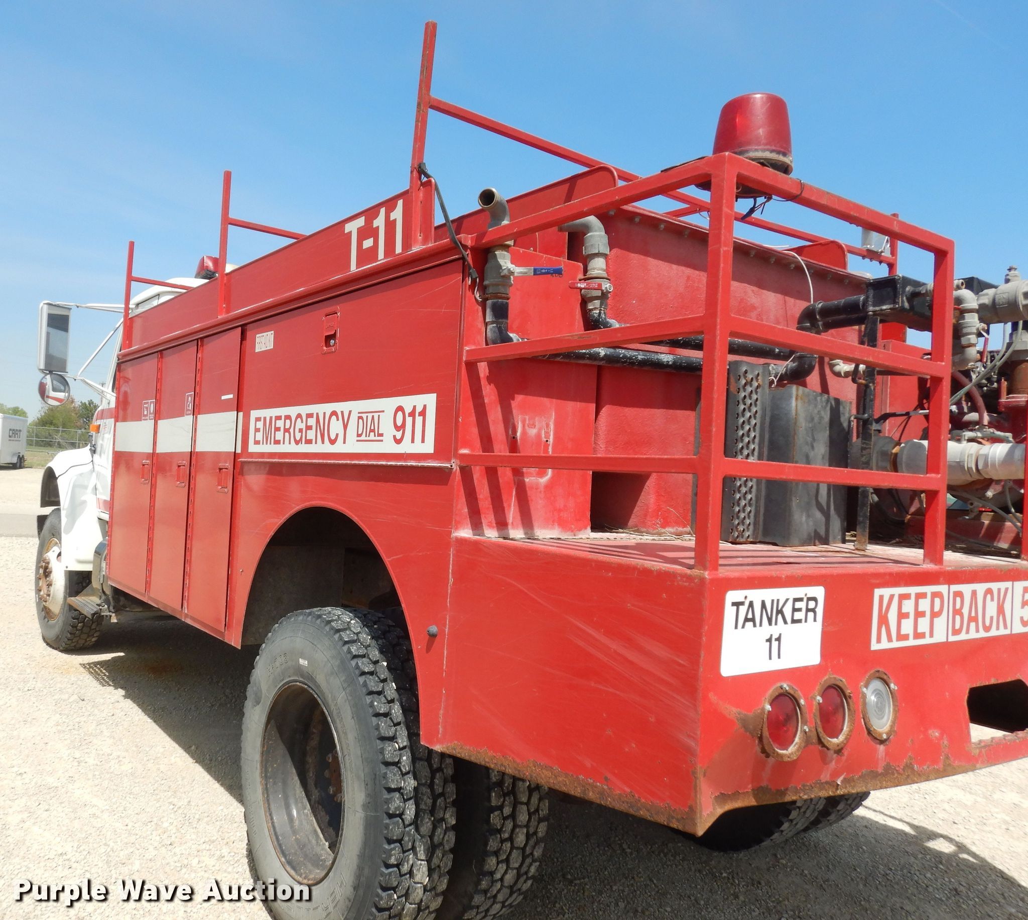 This 1993 International 4900 tanker fire truck will sell to the highest bidder regardless of price.