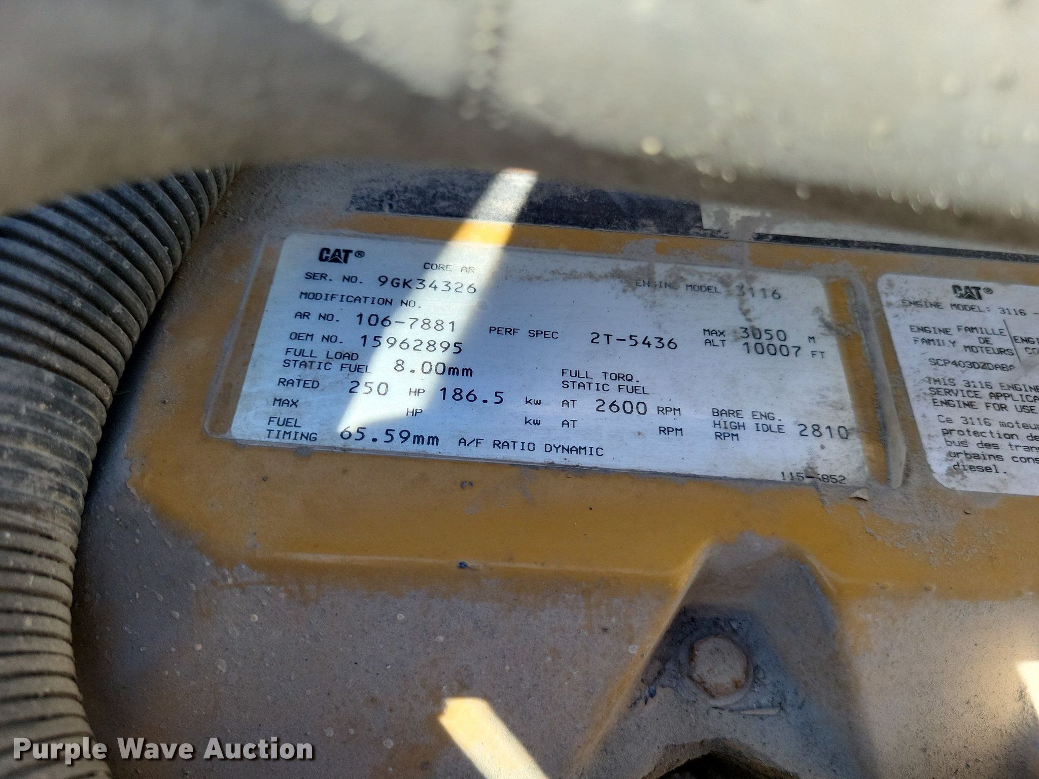1996 Chevrolet Kodiak dump truck. Miles: 301,831 on odometer, VIN: 1GBT7H4J0TJ100547. Engine Caterpillar 3116, Serial: 9GK34326, Displacement: 6.6L, Cylinders: 6, Fuel type: Diesel. Transmission Eaton Fuller 8LL, Manual, Speed: 10. Chassis Axles: Tandem, Differential lock: Inter-axle, Suspension: Spring over walking beam, Brakes: Air, PTO. Interior AC, Heat. Features Dump bed 15' L x 8' W, Side height: 42", Side board height: 8", Bed type: Steel, Ram: Single , End gate: Air operated. Tires Size: 11R22.5. Missouri title. Title distribution may be delayed up to 14 days from verification of funds. Cape Girardeau County, MO. 198 Missouri 34. Jackson, MO 63755
