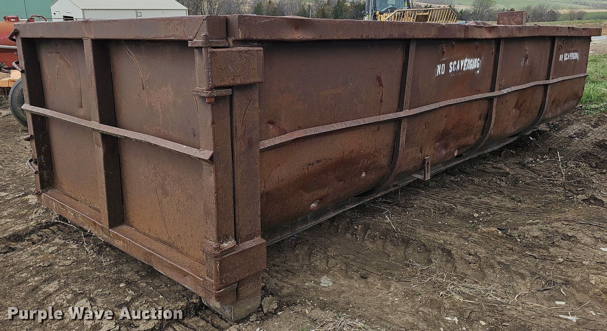Purple Wave is selling a used Refuse or Compaction Equip. in Iowa. This item is a Roll-off container with the following: 21' L x 92" W x 48" H