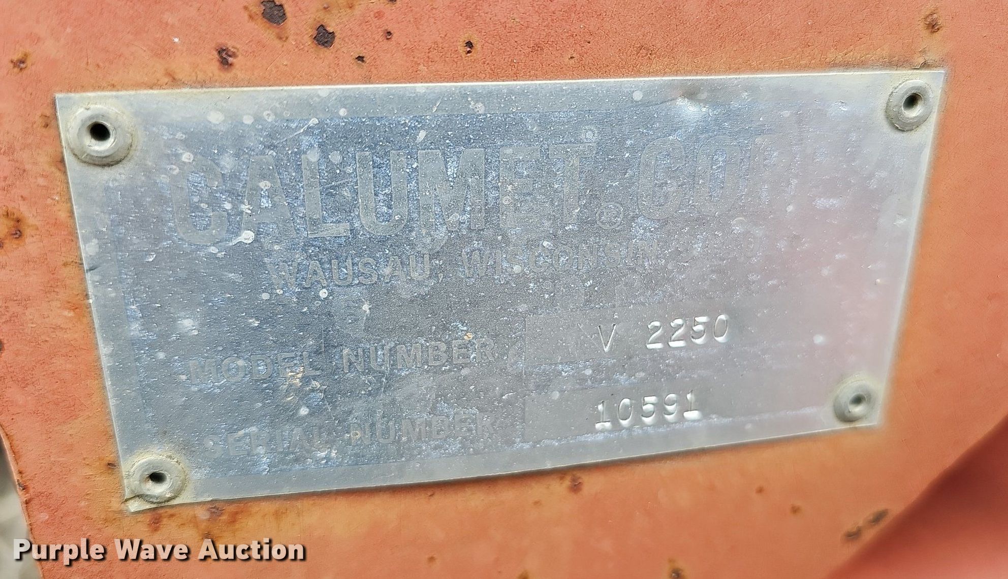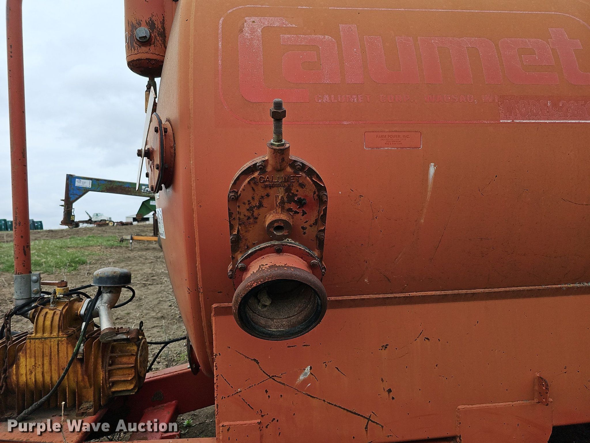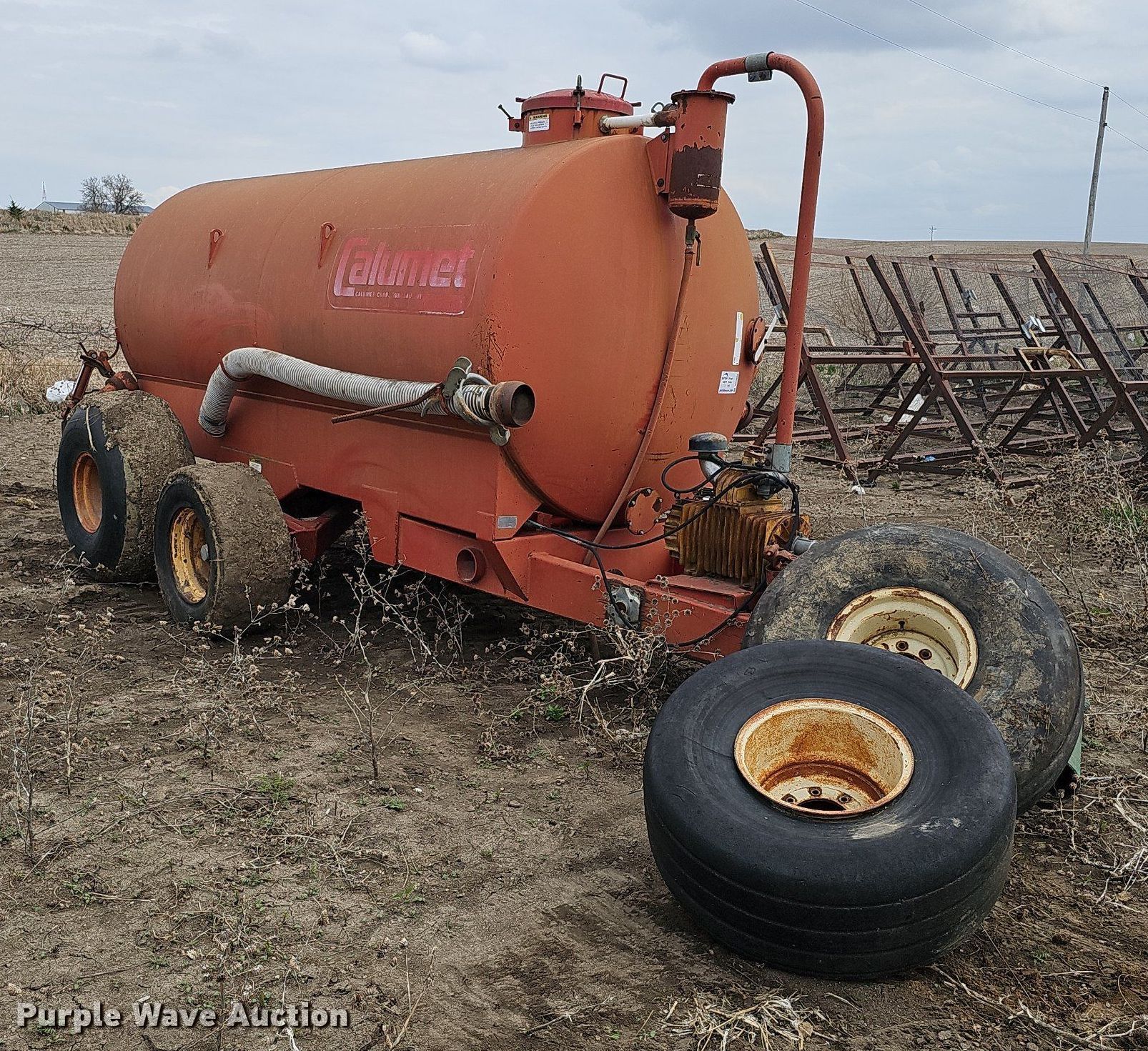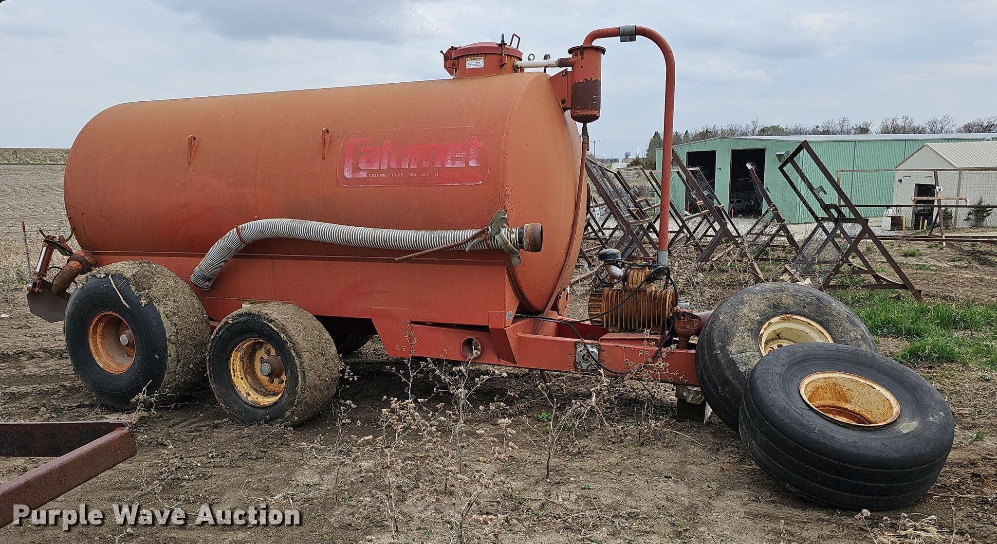 Purple Wave is selling a used Manure Spreader in Iowa. This item is a Calumet Corp V 2250 liquid manure spreader with the following: Serial: 10591