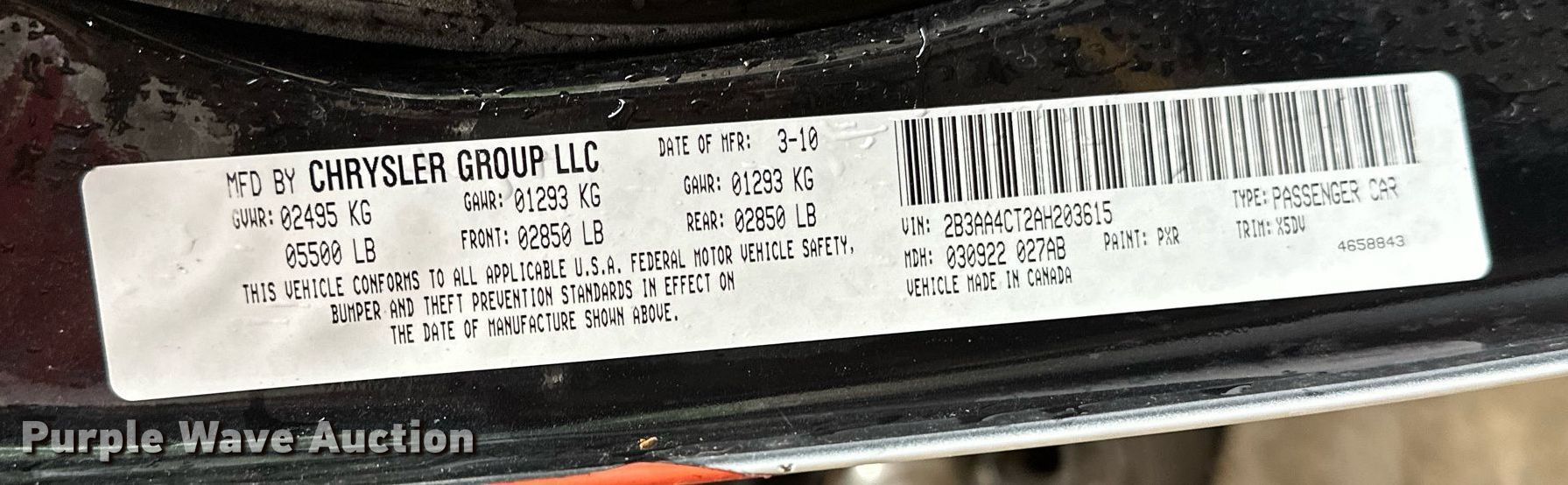 Purple Wave is selling a used Passenger Vehicle in Oklahoma. This item is a 2010 Dodge Charger with the following: Miles: 134,815 on odometer, VIN: 2B3AA4CT2AH203615
