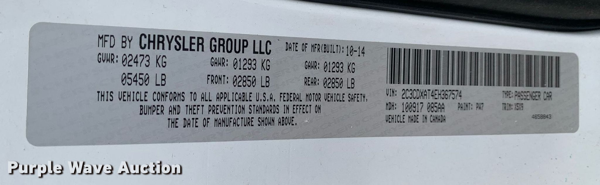 - VIN: 2C3CDXAT4EH367574