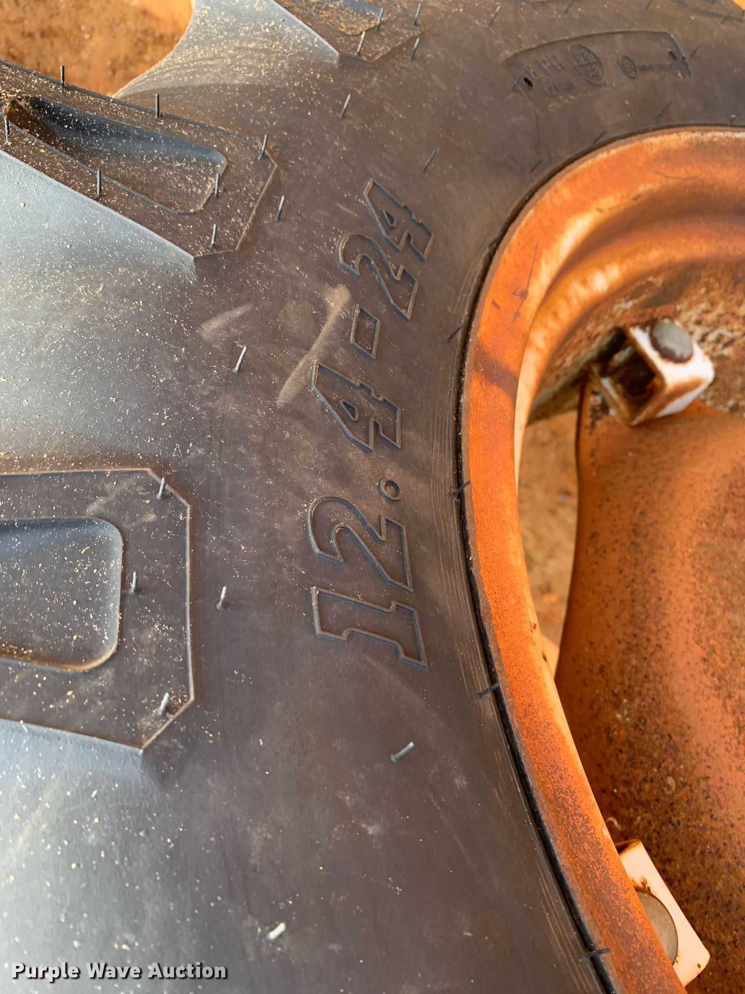 Ford F-1900. Hours: 1,673 on meter, Serial: U-912252. Engine Ford, Serial: LEM853-32540, Cylinders: 3, Fuel type: Diesel. Transmission Manual, 12F - 4R, Differential lock. Features PTO: 540, Three point. Tires Front: 5.00-15, Rear: 12.4-24. City of Henderson, TX. 1203 Highland Drive. Henderson, TX 75652