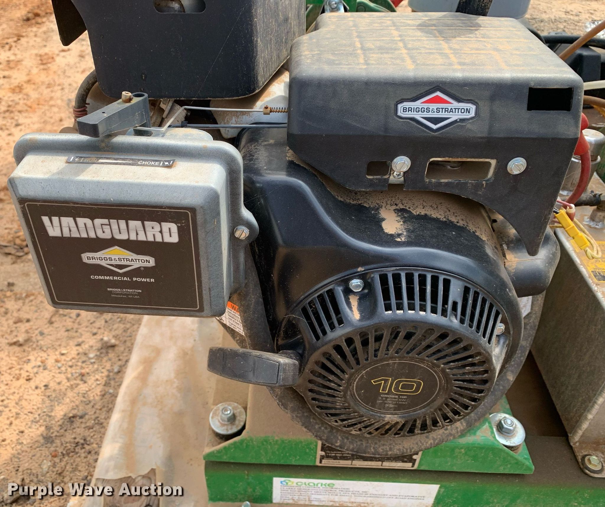 2013 Clarke Cougar mosquito fogger. Serial: 1228. Engine Briggs & Stratton , Displacement: 305 cc, Cylinders: 1, Fuel type: Gas, HP: 10. Notes Dead battery, Non-operational hour meter, Possible fuel issues, old fuel, Unknown operating condition. City of Henderson, TX. 1203 Highland Drive. Henderson, TX 75652