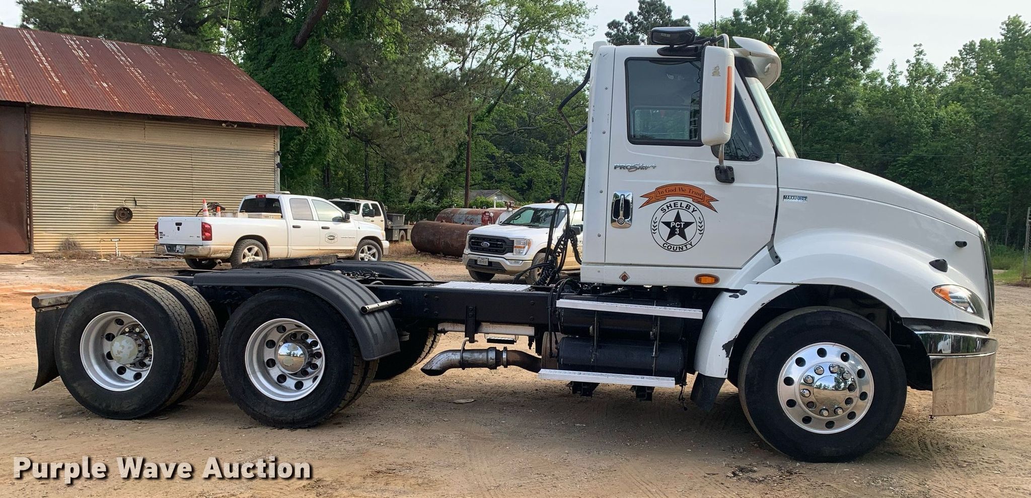 2014 International ProStar 113 semi truck. Miles: 316,792 on odometer, Hours: 12,817 on meter, VIN: 3HSDHSJR3EN758889. Engine Displacement: 13.0L, Cylinders: 6, Fuel type: Diesel. Transmission Eaton Fuller, Manual, Speed: 10. Chassis Axles: Tandem, Differential lock: Inter-axle, Suspension: Air, Brakes: Air, GVWR: 52,350 lbs FAWR: 12,350 lbs, IAWR: 20,000 lbs, RAWR: 20,000 lbs. Interior AC, Heat, Power windows, Power locks, Cruise control, Air ride cab. Features Deck plate: Aluminum, Fifth wheel type: Air operated, Fuel tank: Single. Tires Size: 11R22.5. Notes Emblems and government equipment will be removed prior to auction, Dash warning indicator: Check engine, ABS, Traction control, Windshield chipped or cracked, Possible engine issues, metal shavings in oil. Texas title. Title distribution may be delayed up to 14 days from verification of funds. Shelby County TX Precinct 3. 172 Childress Street. Joaquin, TX 75954