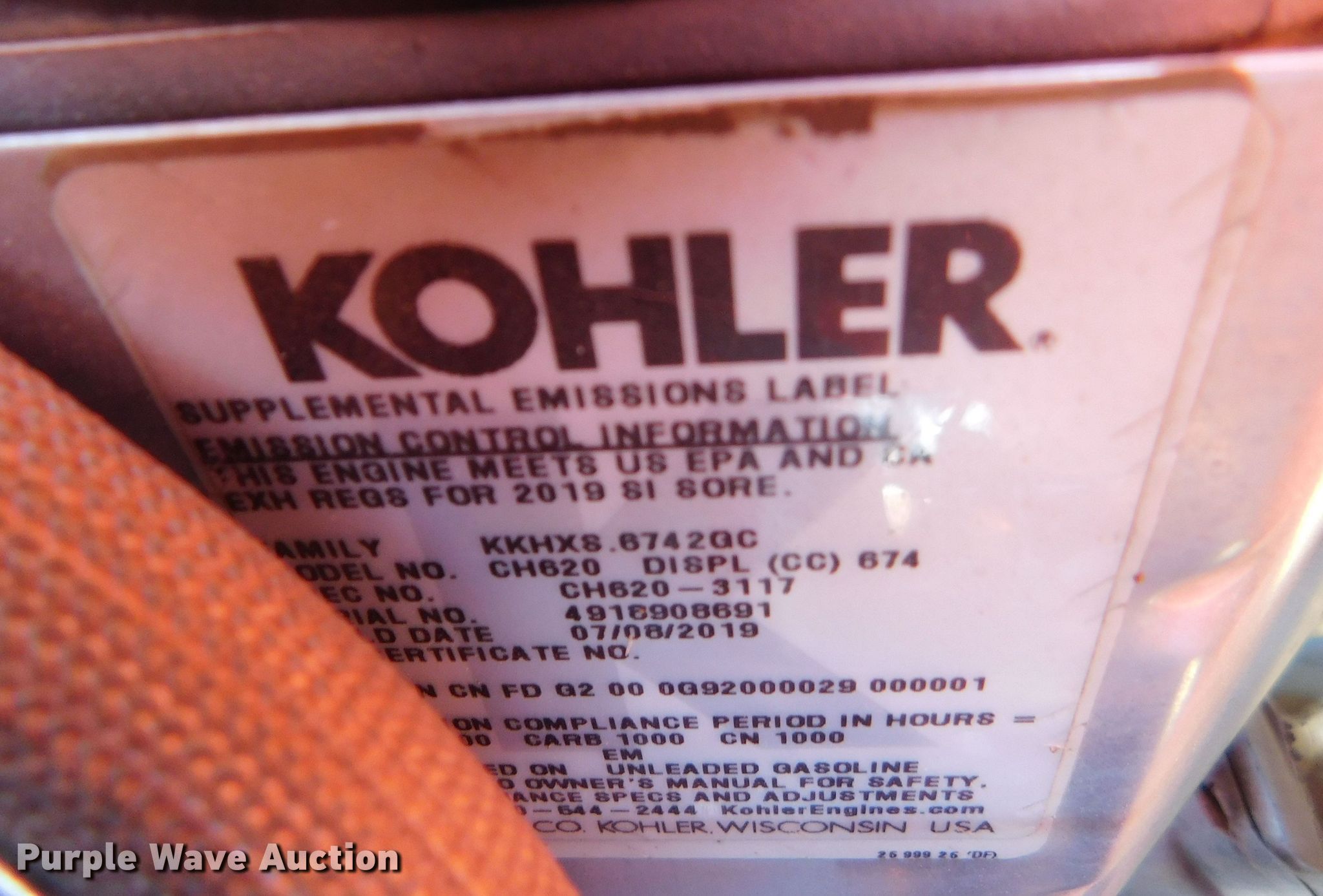 Deines Marty J 1800 ZTR lawn mower. Hours: 85 on meter, Cutting width: 48", Serial: AS1011. Engine Kohler CH620, Displacement: 674 cc, Cylinders: 2, Fuel type: Gas. Transmission Hydrostatic. Features Mower deck Deines 48 SLD, Serial: AS1414. Tires Front: 20x10.00-8, Rear: 45x6.00-6. Lane County Cemetery District. Dighton, KS 67839