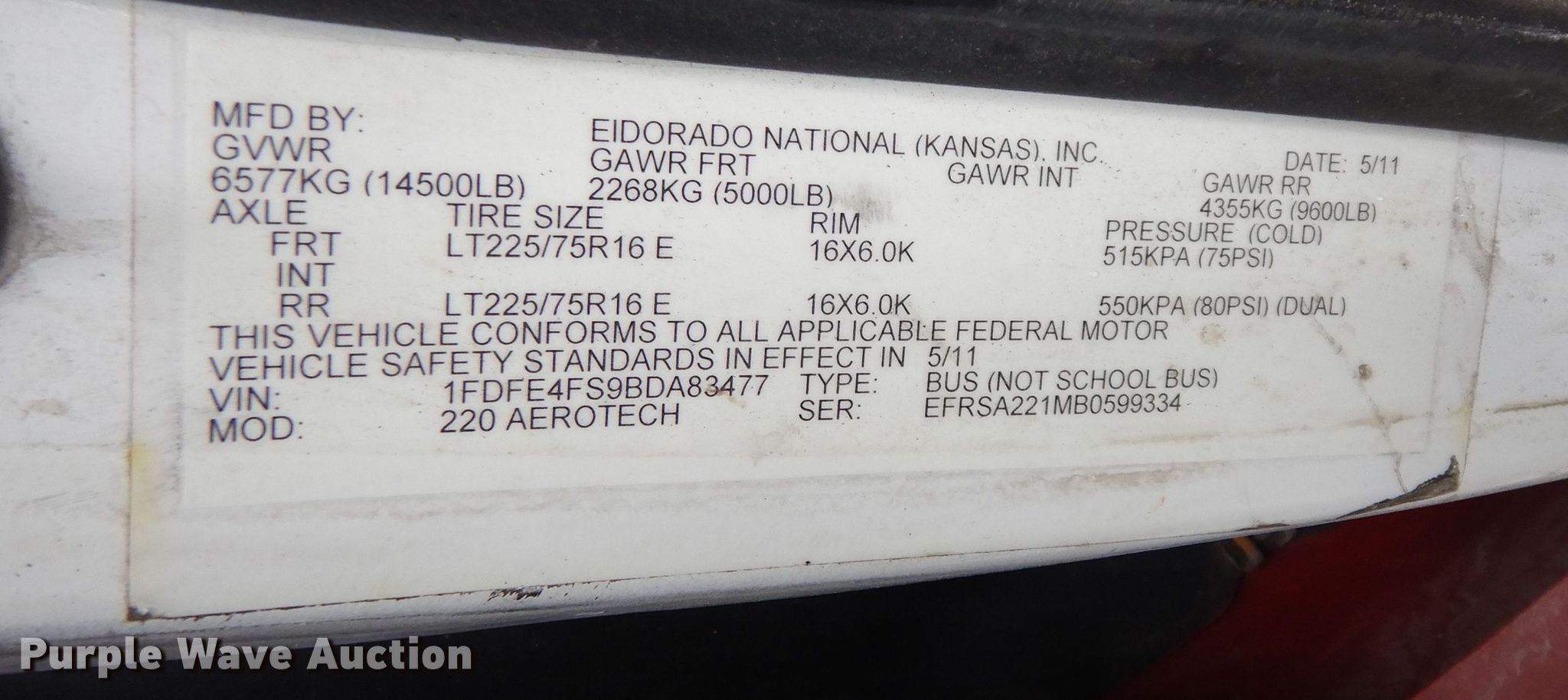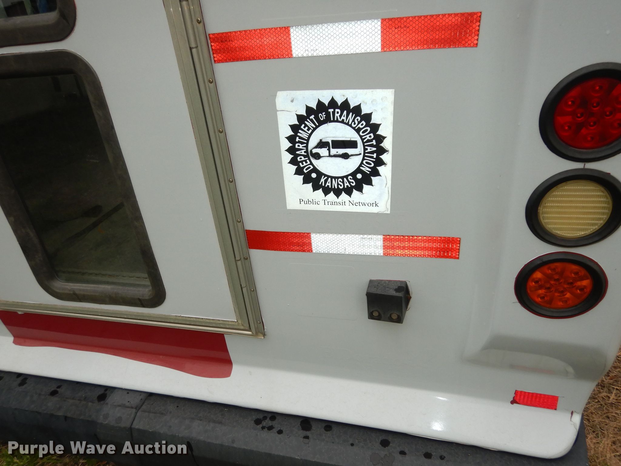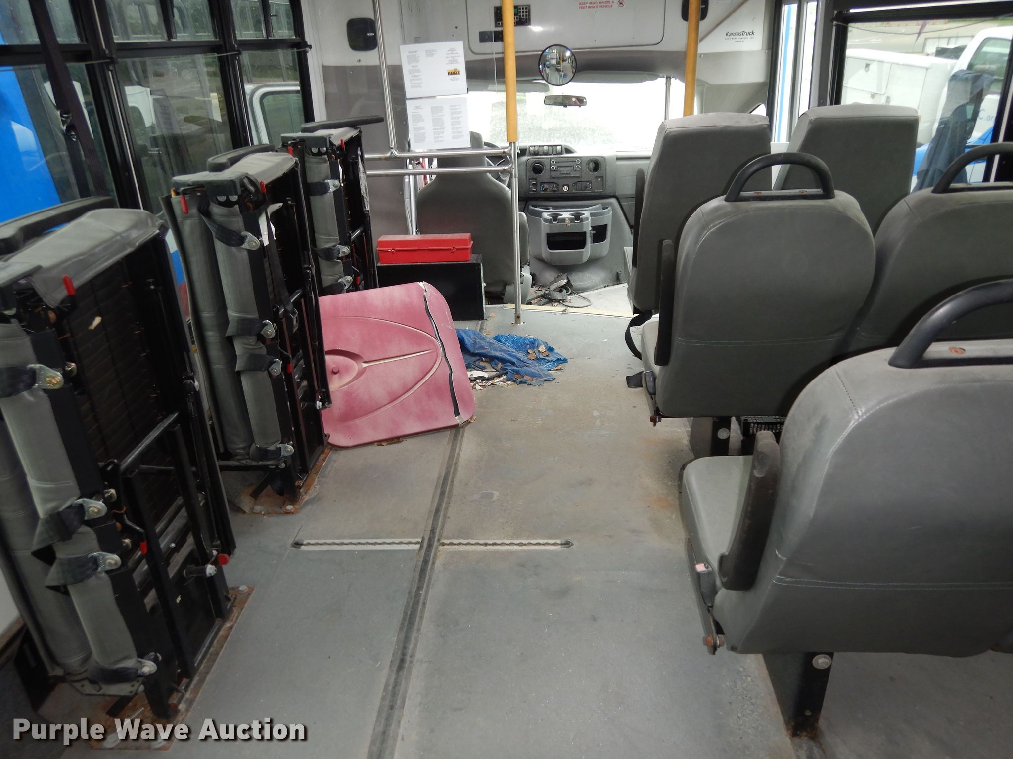 2011 Ford Econoline E450 Super Duty shuttle bus. Miles: 138,343 on odometer, VIN: 1FDFE4FS9BDA83477, Unit #: TRNKDOT153. Engine Displacement: 6.8L, Cylinders: 10, Fuel type: Gas. Transmission Automatic. Chassis Axles: Single, Suspension: Spring, Brakes: Hydraulic, GVWR: 14,500 lbs, Wheelbase: 158". Interior AC, Heat, Cruise control, Electric passenger sliding door, Passengers: 6, Wheelchair lift. Tires Size: 225/75R16, Brand: Bridgestone. Notes Emergency egress hatch missing, Dead battery. Kansas title. Johnson County, KS. 1701 West Old 56 Highway. Olathe, KS 66061